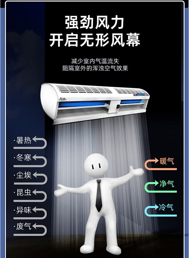 皇禧 (13959)风幕机空气幕风帘机 升级大风1.8米按键双档+遥控插座HFM-1206Q