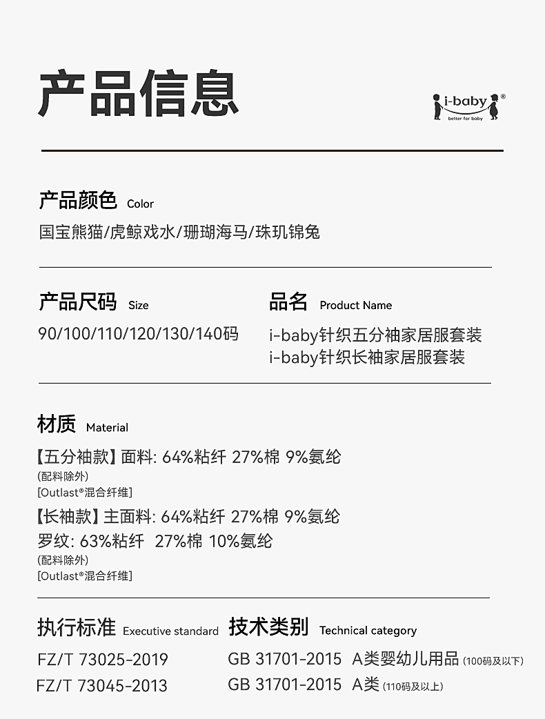 【59元秒杀】i-baby outlast恒温针织长袖/短袖家居服套装 薄款春夏装