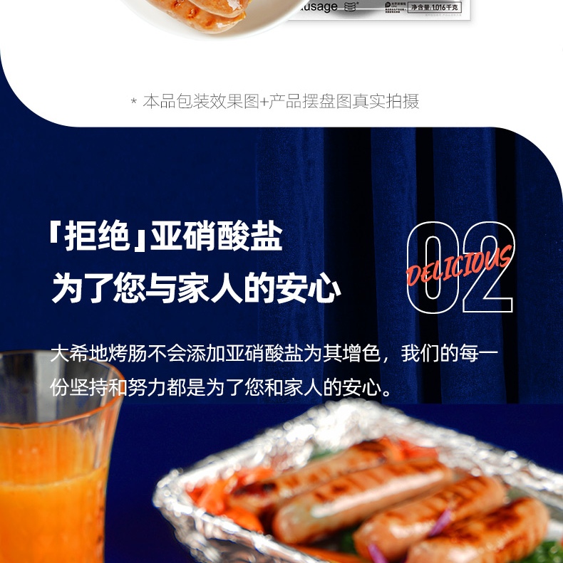 大希地 火山石烤肠 原味肉肠1016g(20根) 商品图4