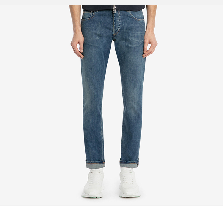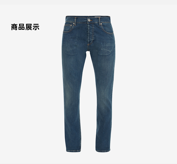 ALEXANDER MCQUEEN 亚历山大.麦昆 男士棉质水洗 McQueen 涂鸦休闲牛仔裤 蓝色 666650 QTY34 4001
