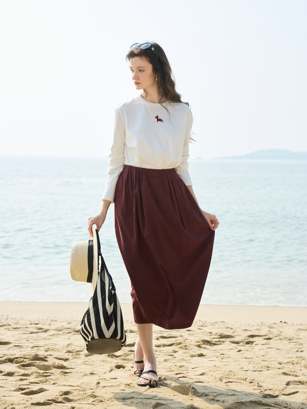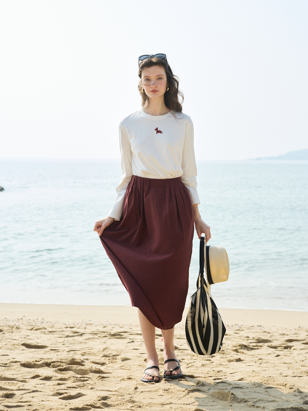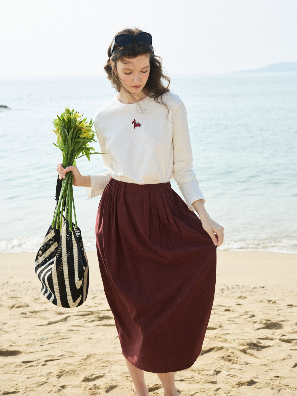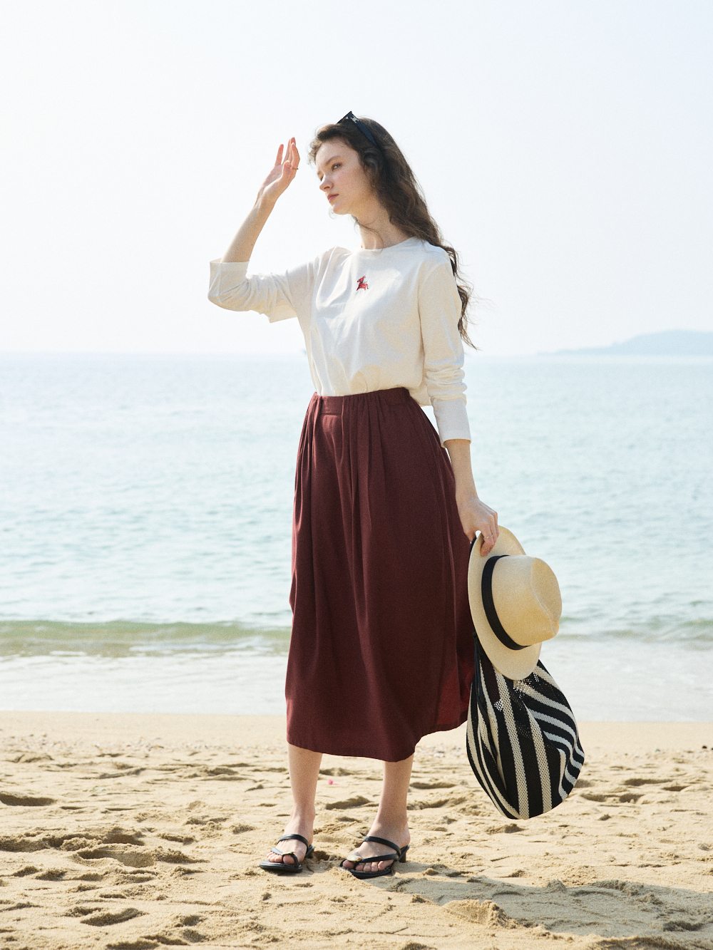 OLrain欧芮儿2026春米白色简约休闲长袖T恤圆领