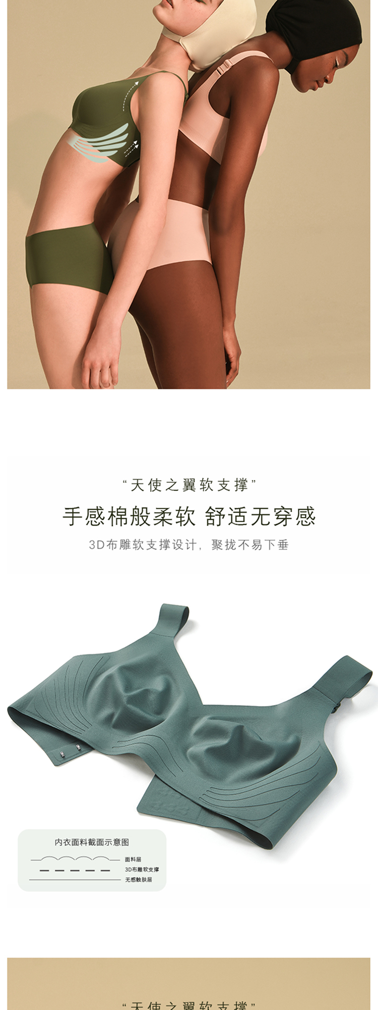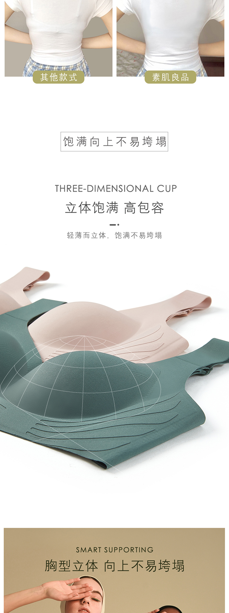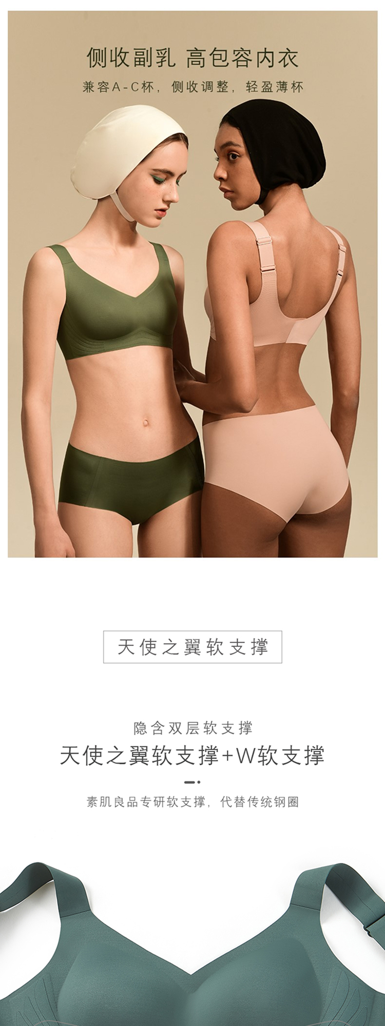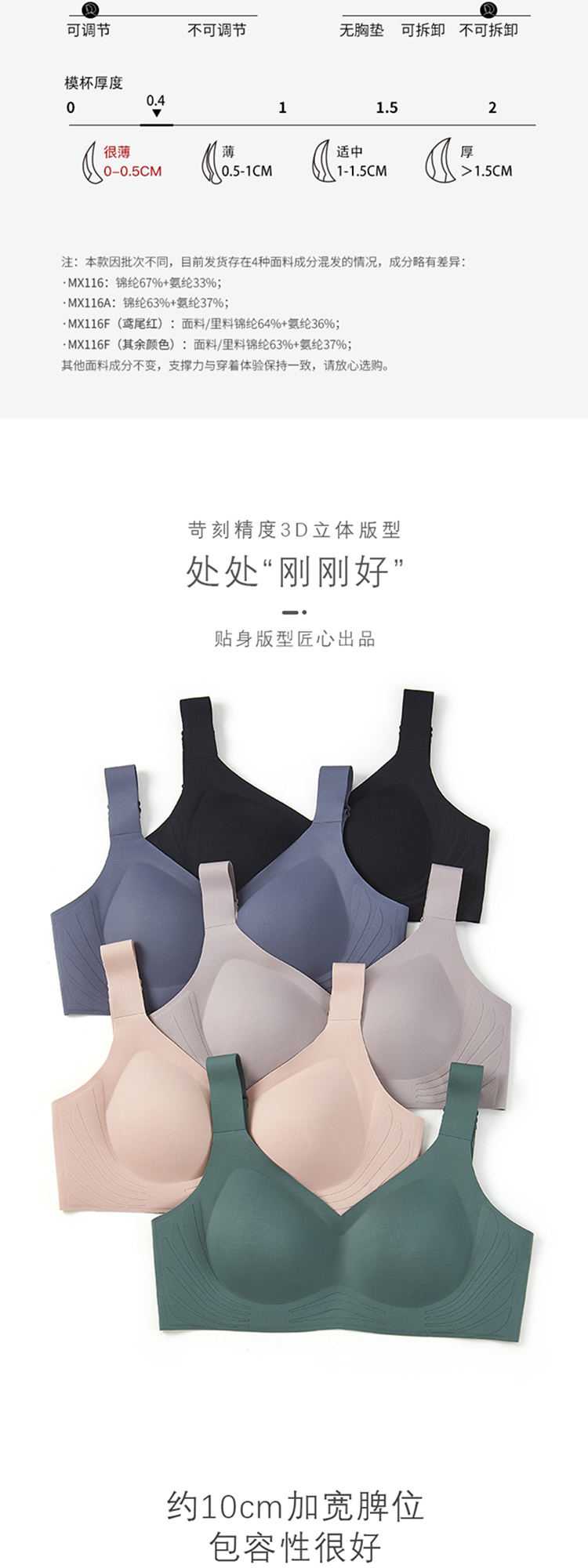 素肌良品【天使之翼】3D布雕软支撑侧收副乳高包容文胸 MX116-FX