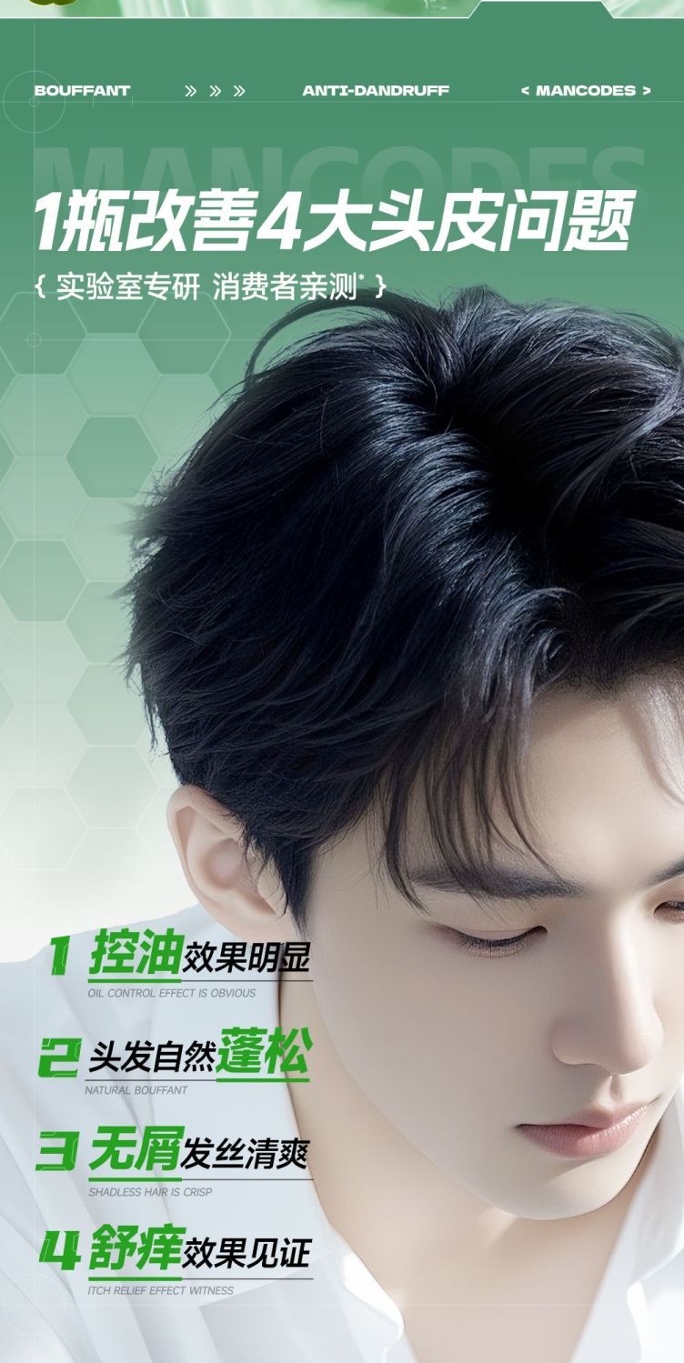 左颜右色 氨基酸洗发水男士专用去屑止痒控油蓬松留香古龙香洗头膏