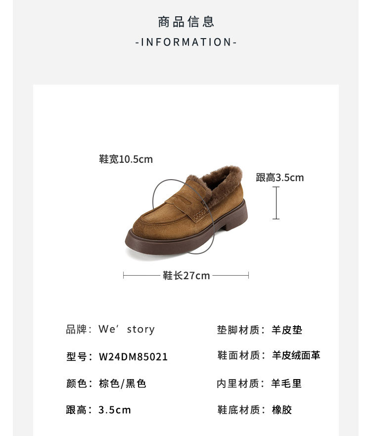 westory2024年秋冬新款休闲风厚底平跟舒适百搭毛毛鞋休闲鞋W24DM8502120Z