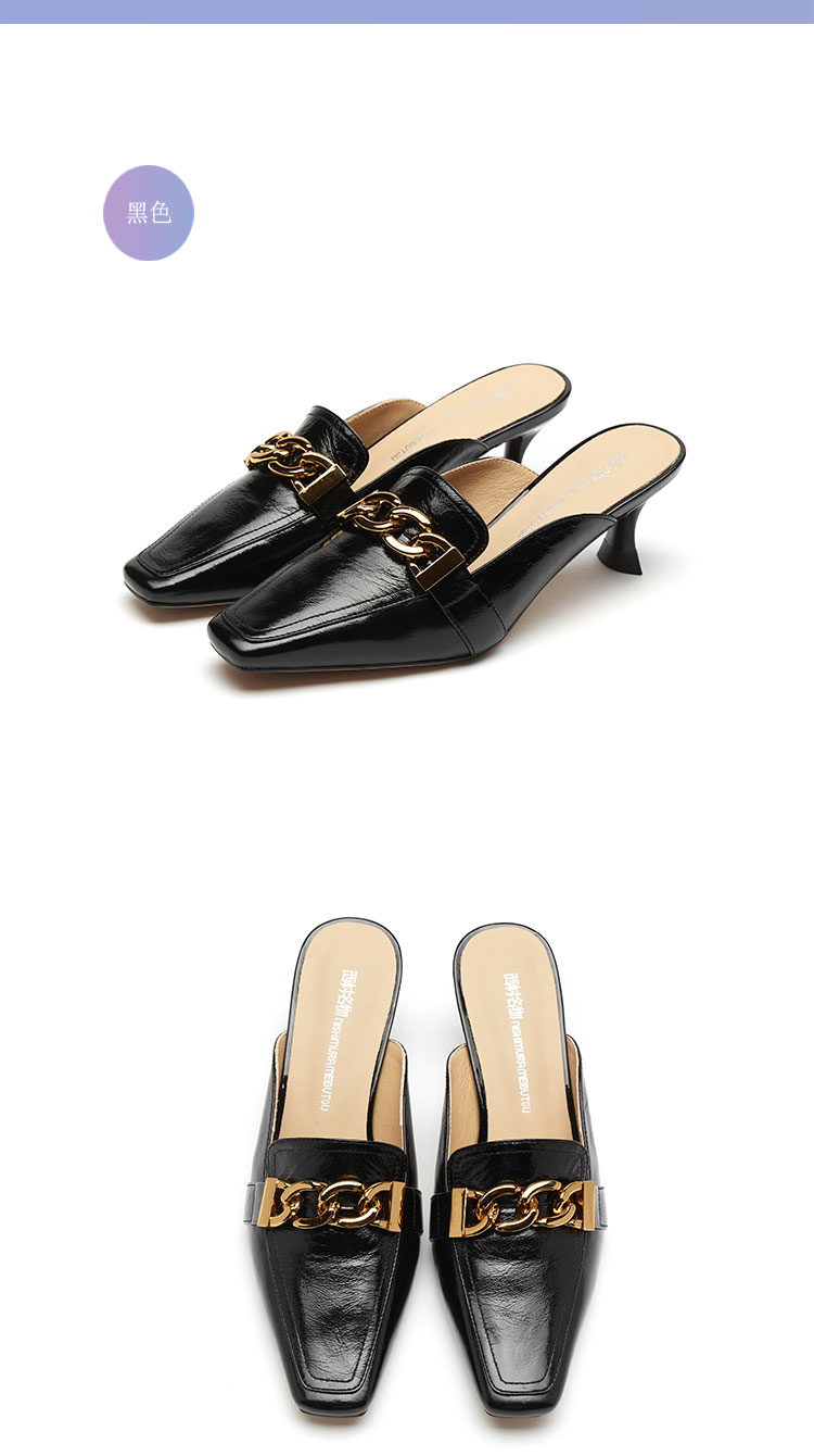 21年新品尖头高跟鞋舒软牛漆皮中跟女单鞋气质细跟小皮鞋T21AH15661