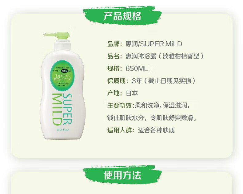 【分仓直发包邮】惠润沐浴露(淡雅柑桔香型)650ml(大瓶装)