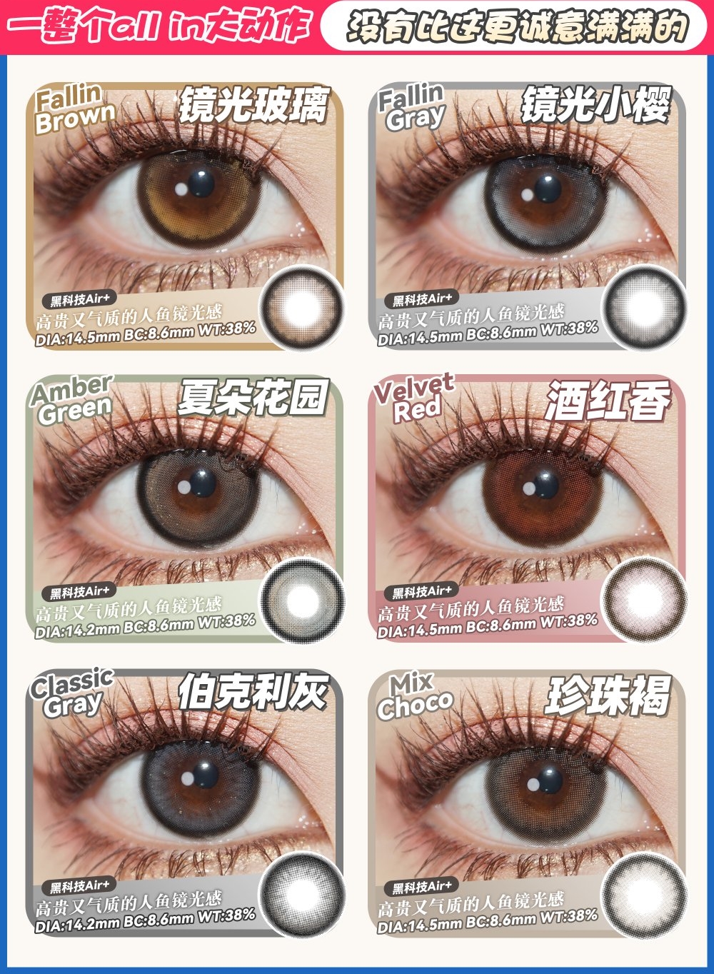 镜片材质: 硅水凝胶年抛