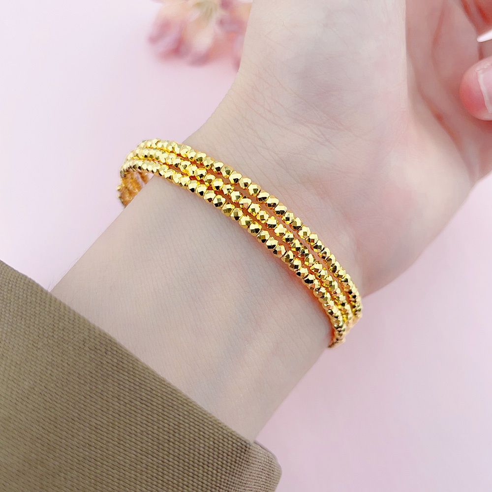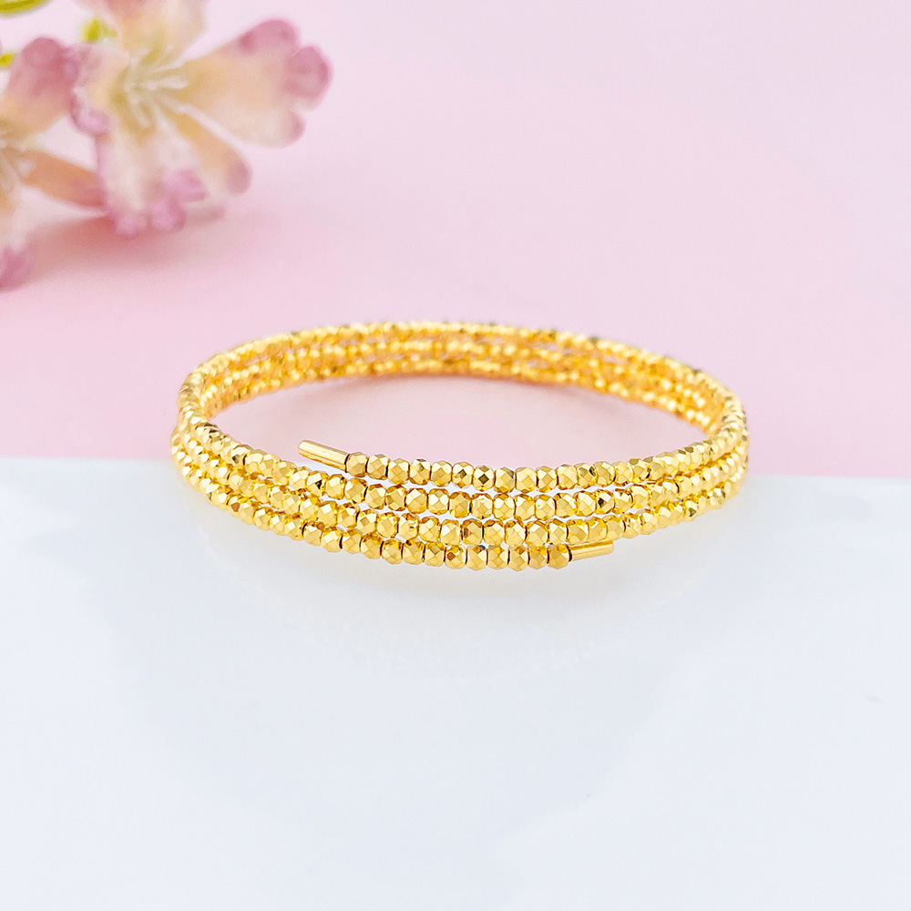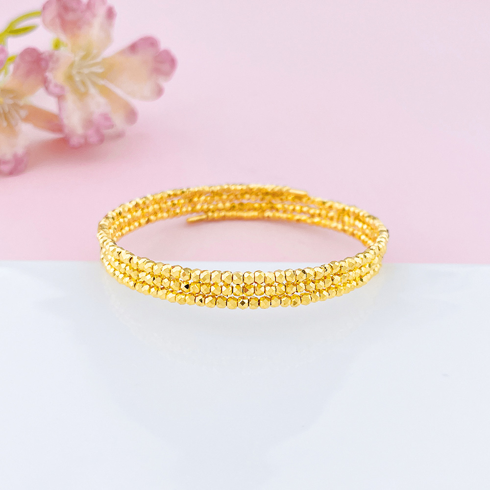 【限时克减150元】足金999 5G黄金三圈蹦迪珠弹力镯空心开口蹦迪珠手镯弹力手镯(总面宽约6.7-7.1mm)(AN5GSZ00001-3)预售产品下单后不退款不退货不换货不补差价)