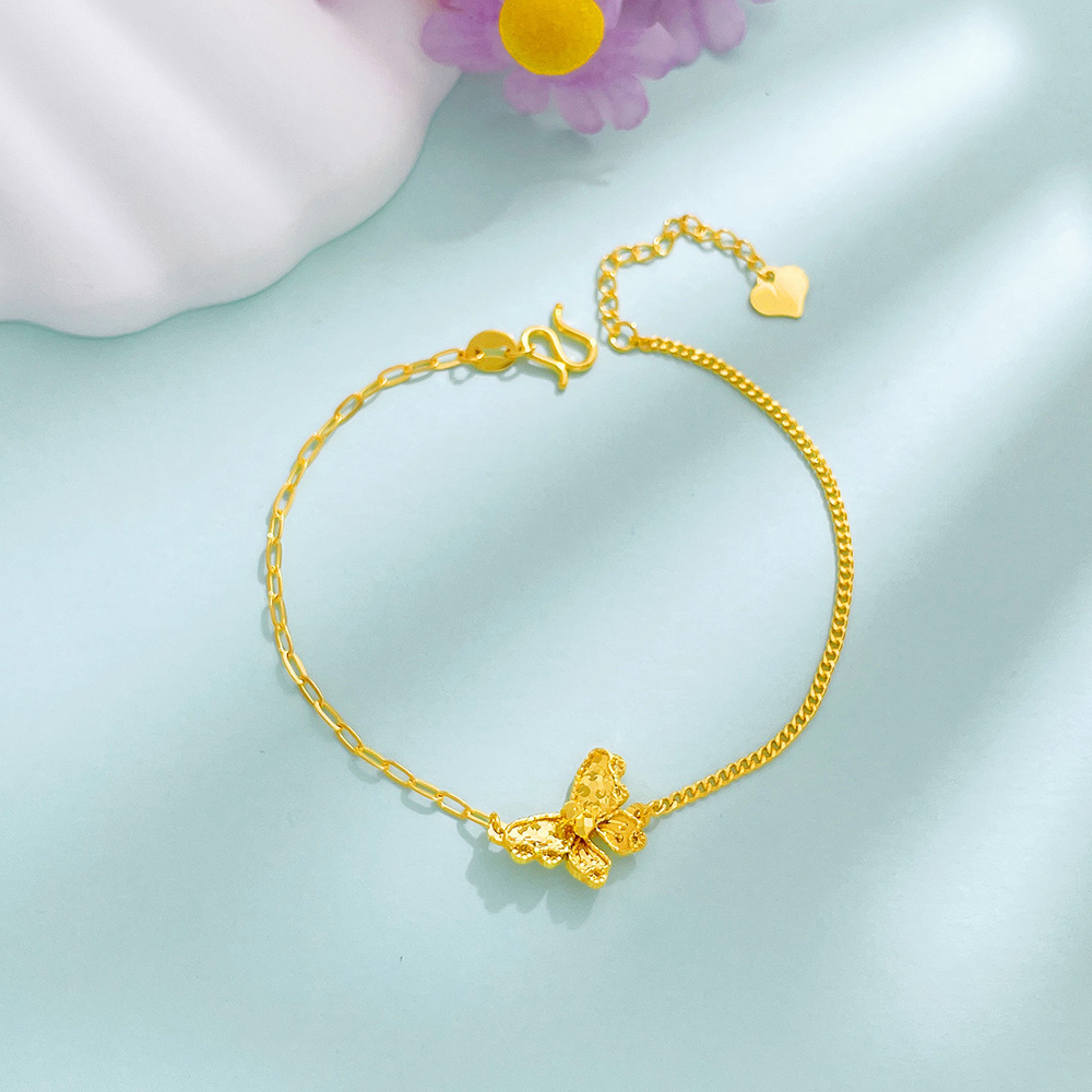 【限时克减150元】足金999 #碎碎冰 5G黄金调节AB链蹦迪珠碎碎冰立体蝴蝶手链(BE5GSL00007)(预售产品下单后不退款不退货不换货不补差价)