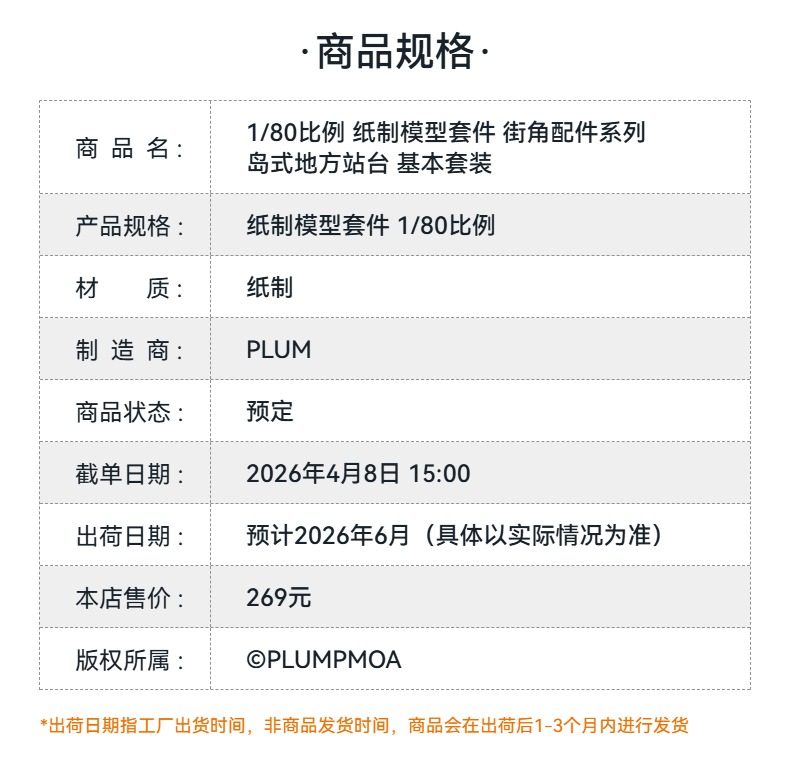 【GSC预售定金】1/80比例 纸制模型套件 街角配件系列 岛式地方站台 基本套装