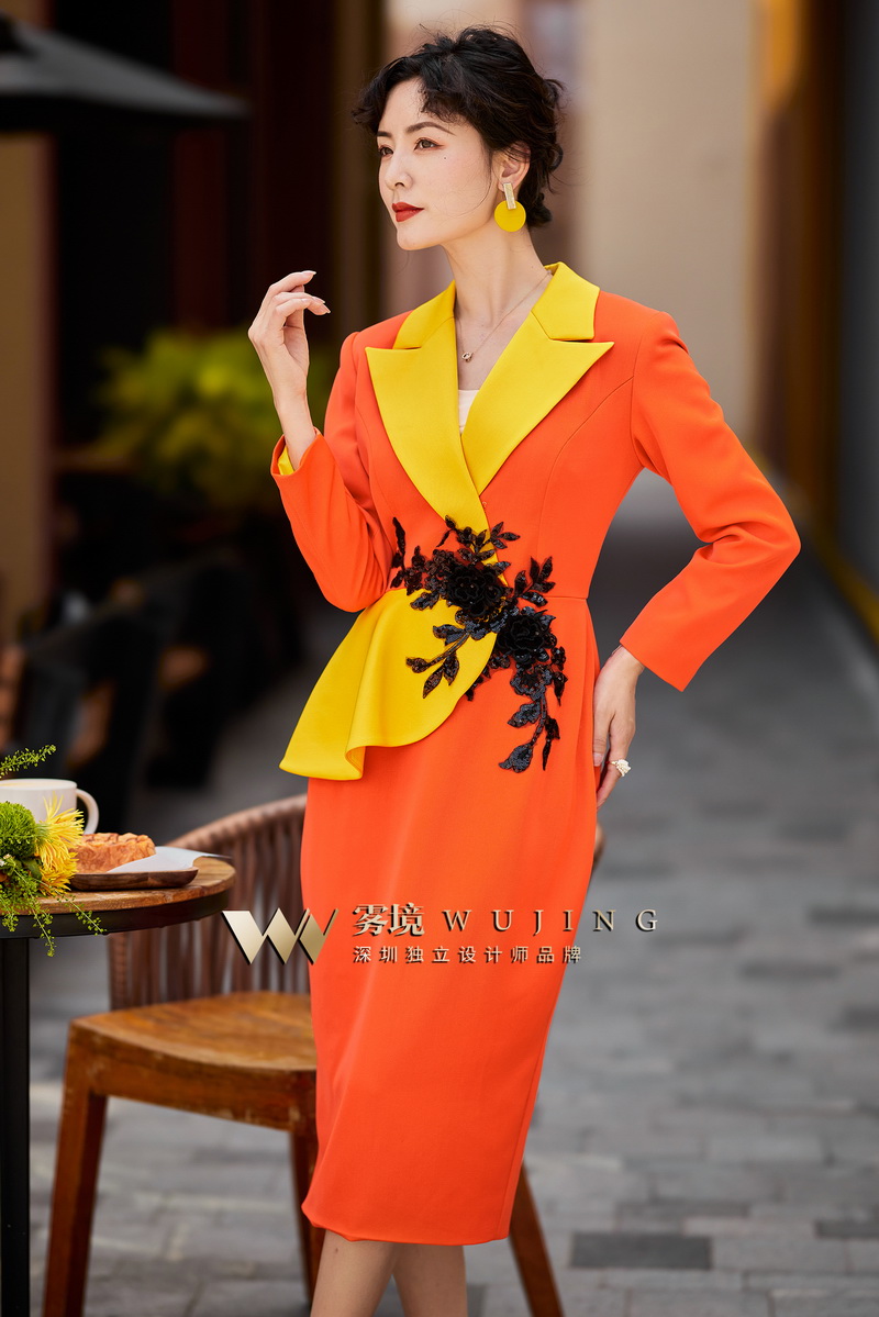 1202061 烟岚云秀 高端TR厚斜纹连衣裙 雾境