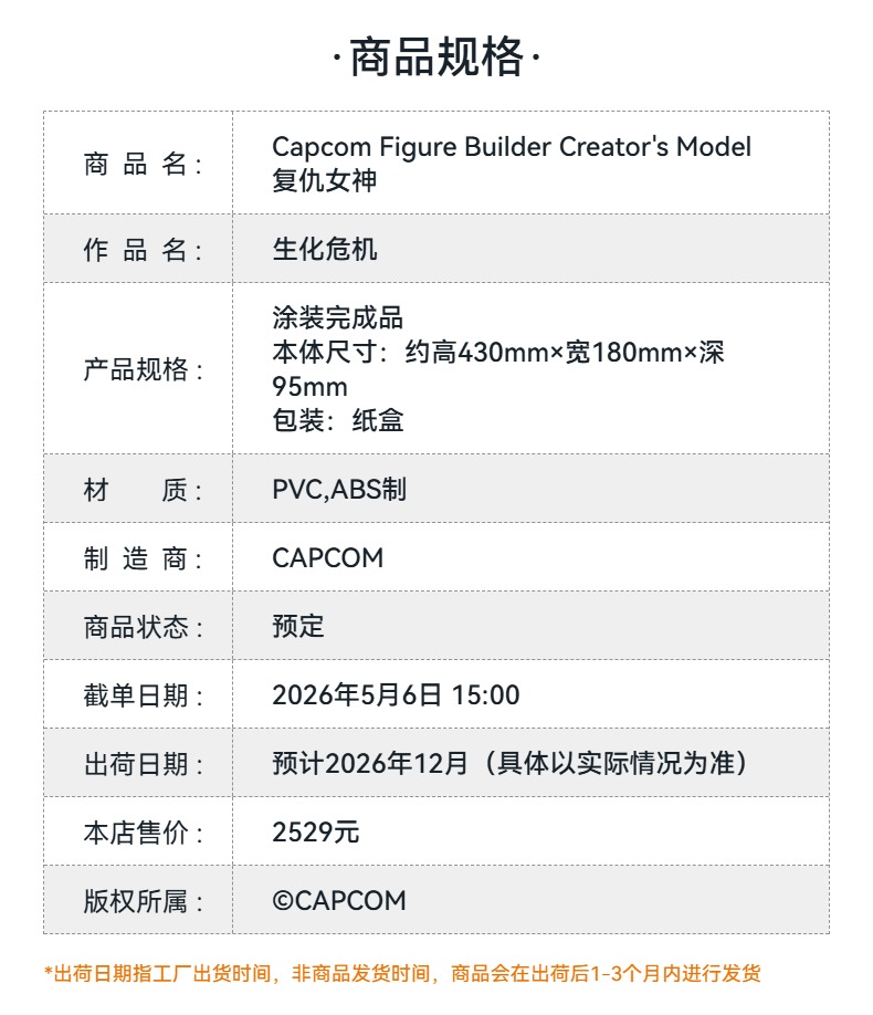 【GSC预售定金】Capcom Figure Builder Creator's Model复仇女神