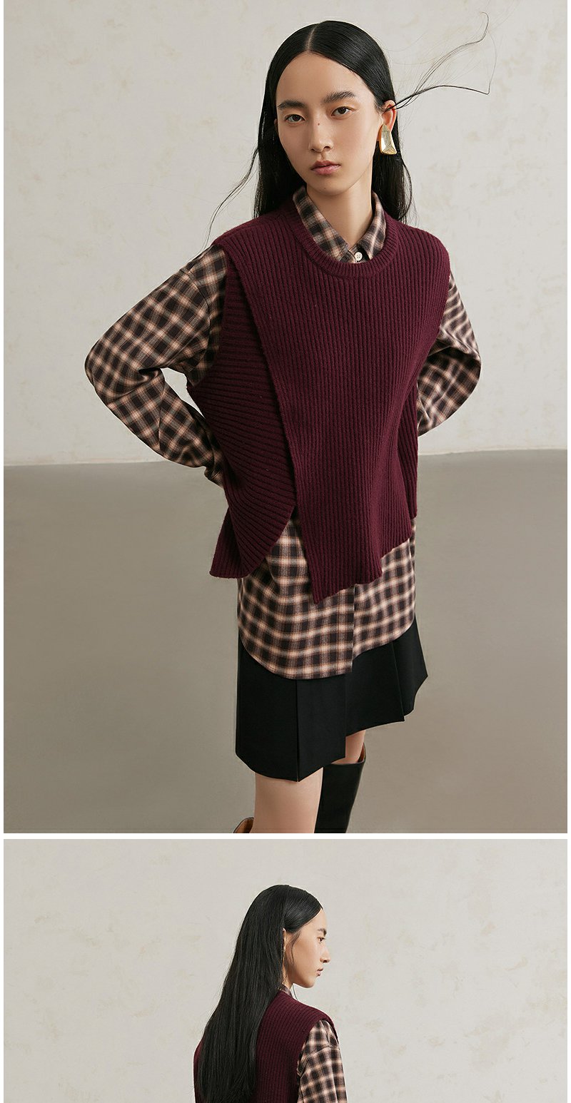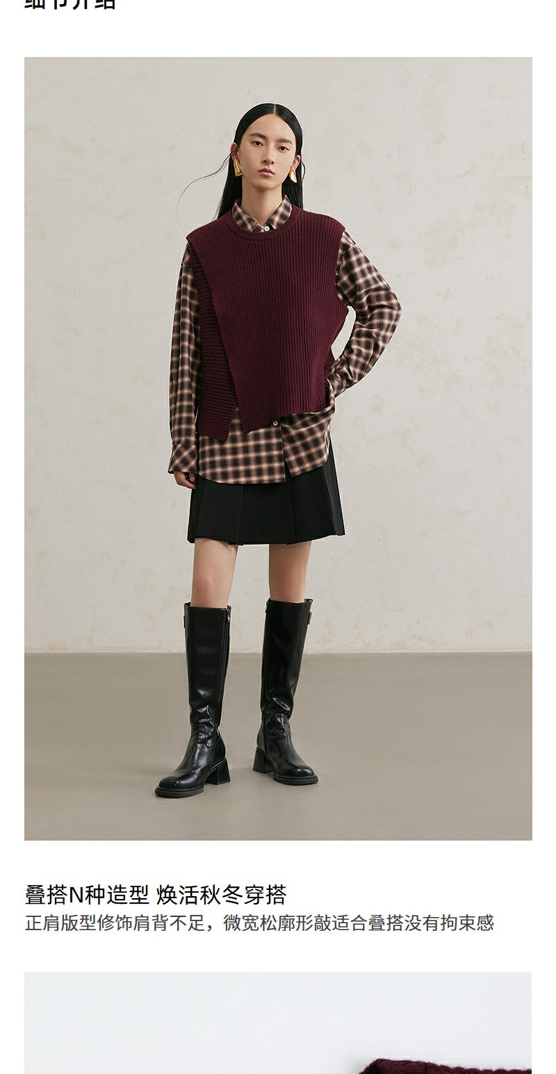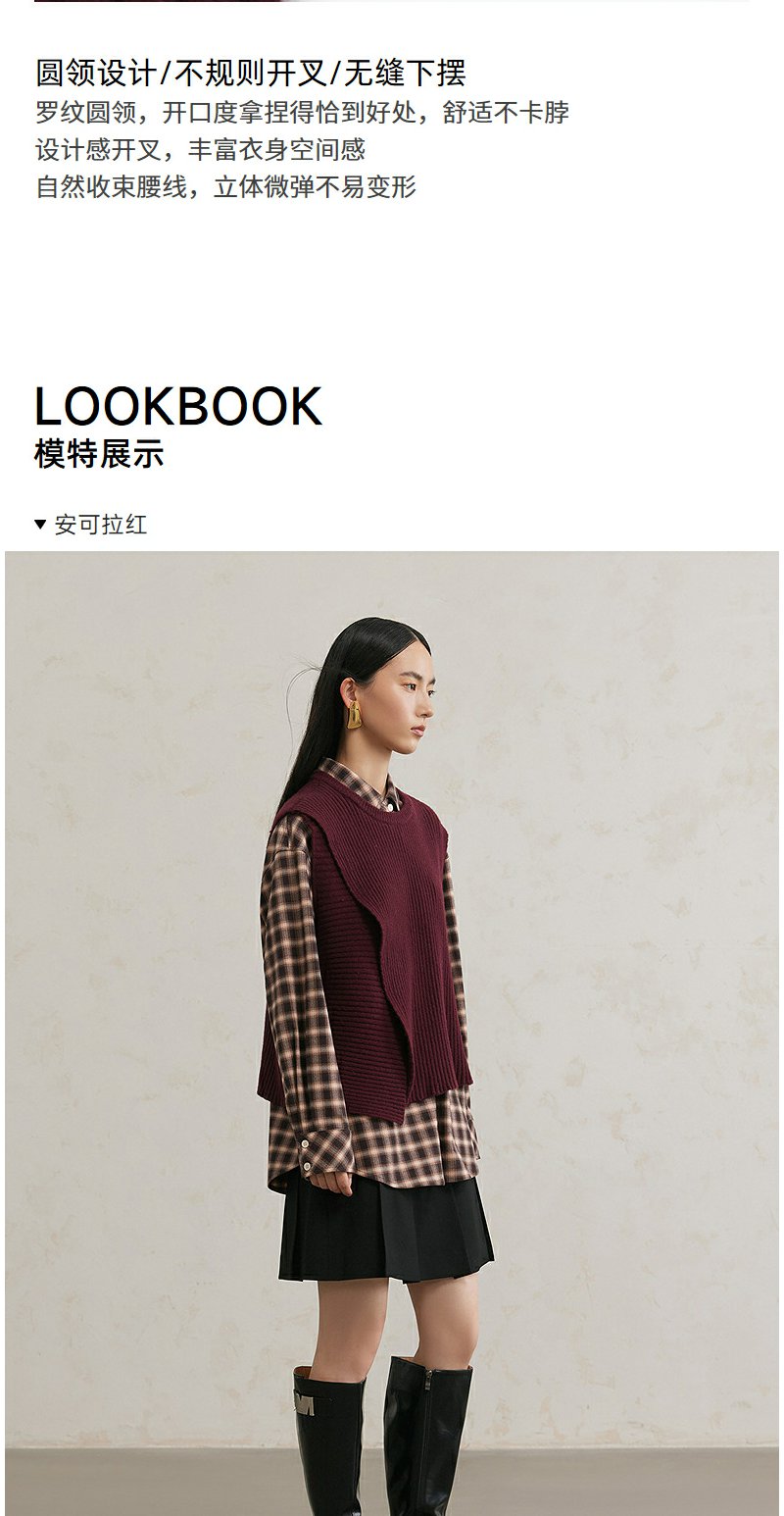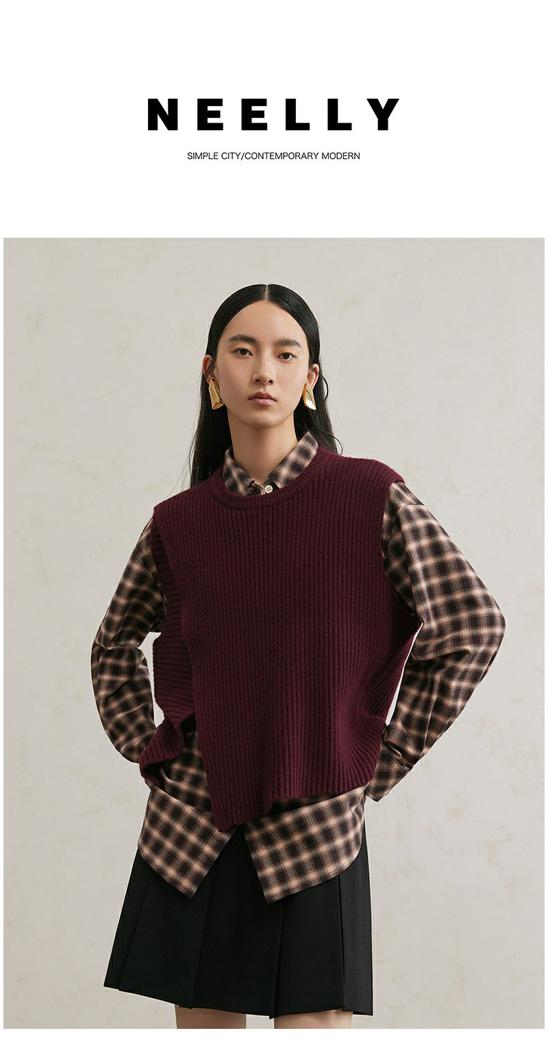 NEELLY纳俪商场同款冬季新款圆领开衩针织背心女简约休闲上衣N25114A04526