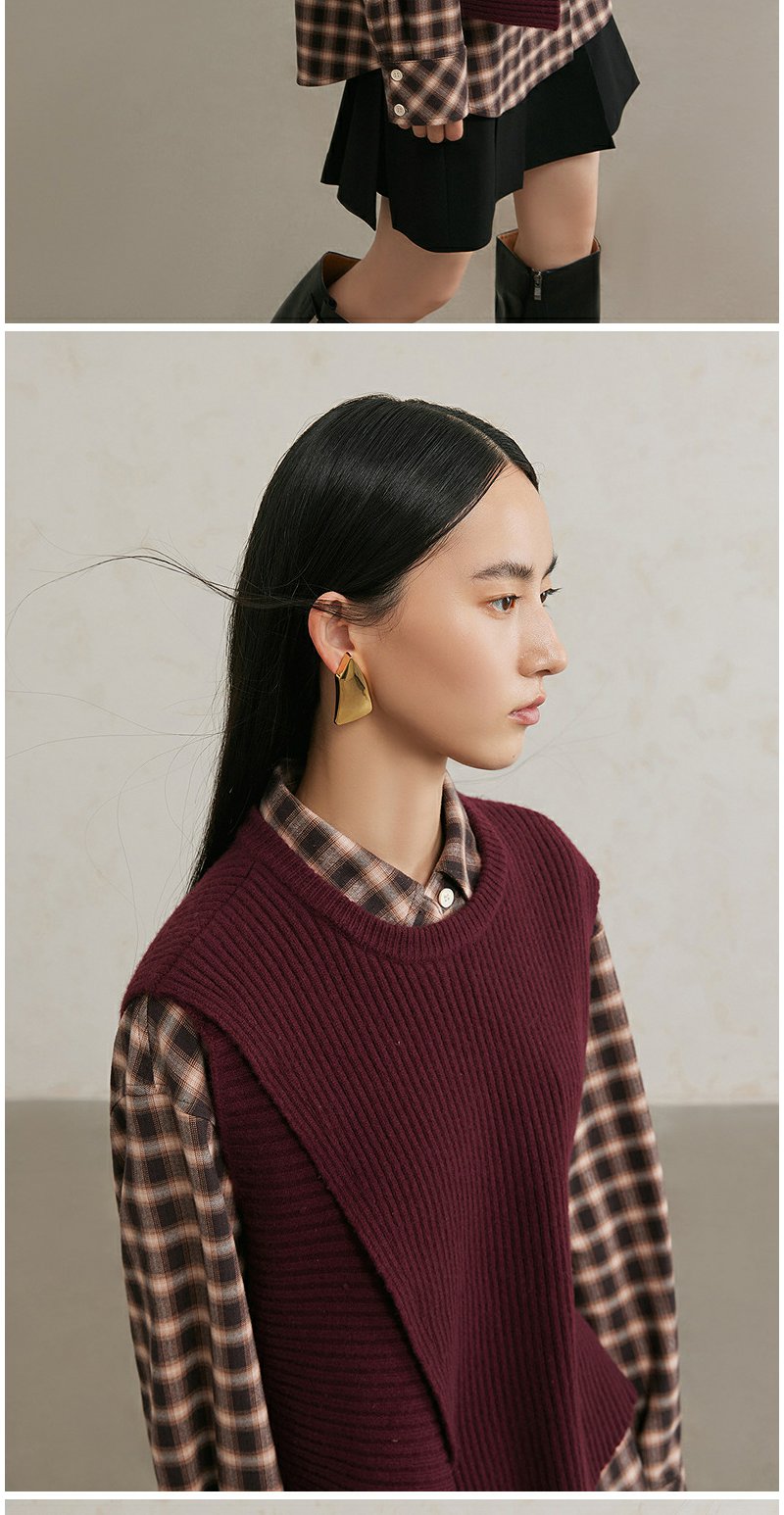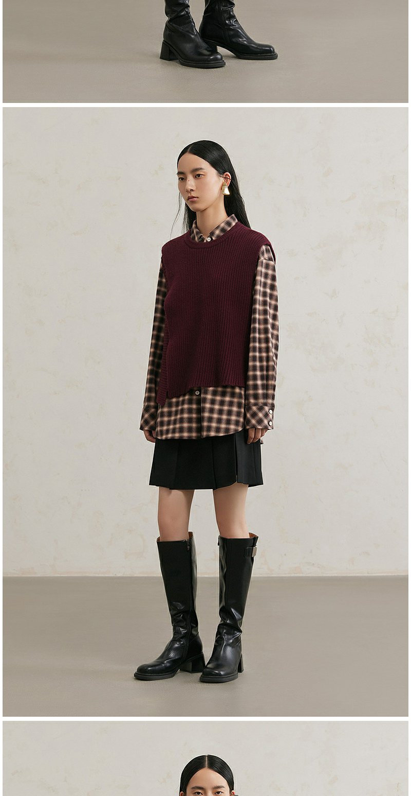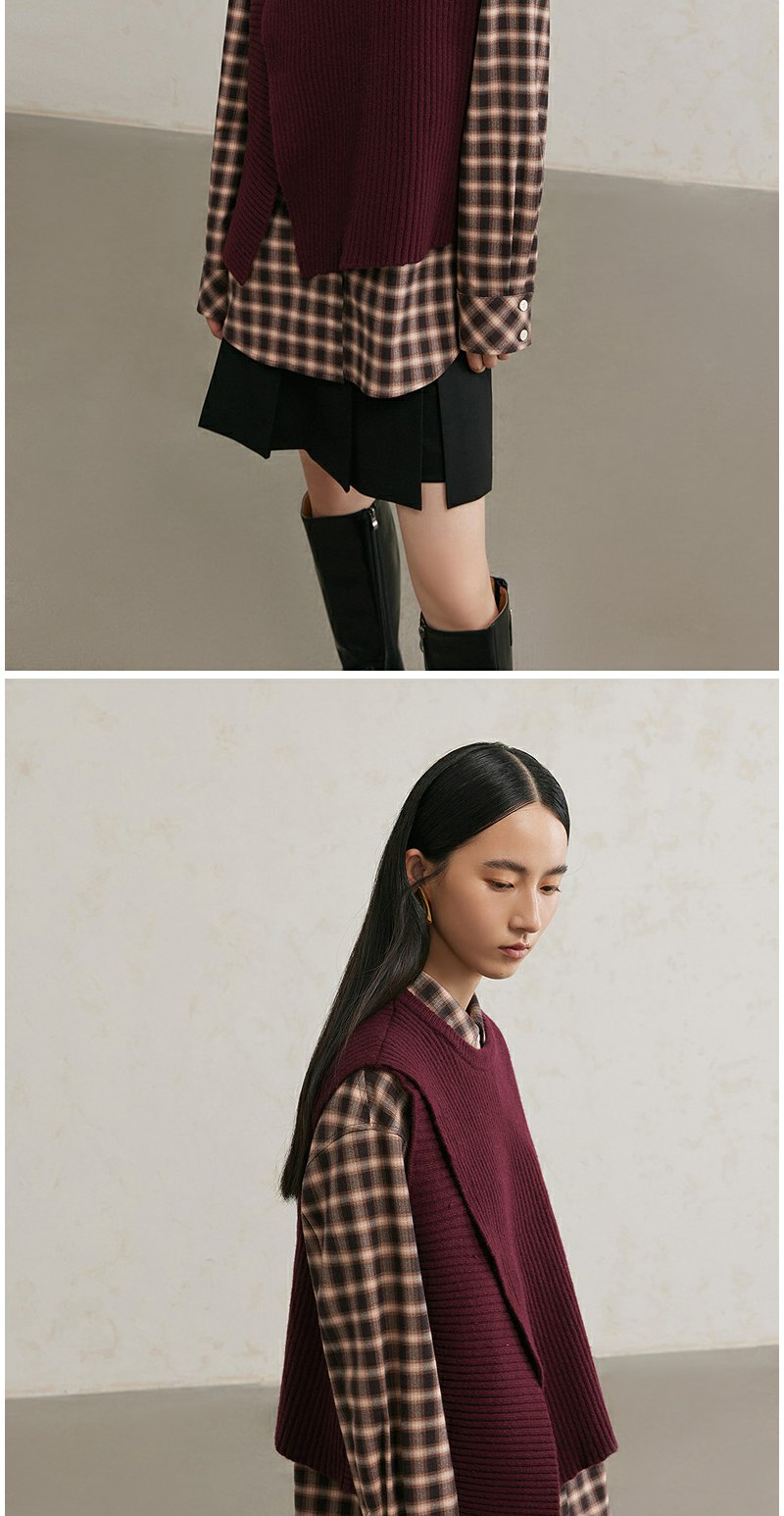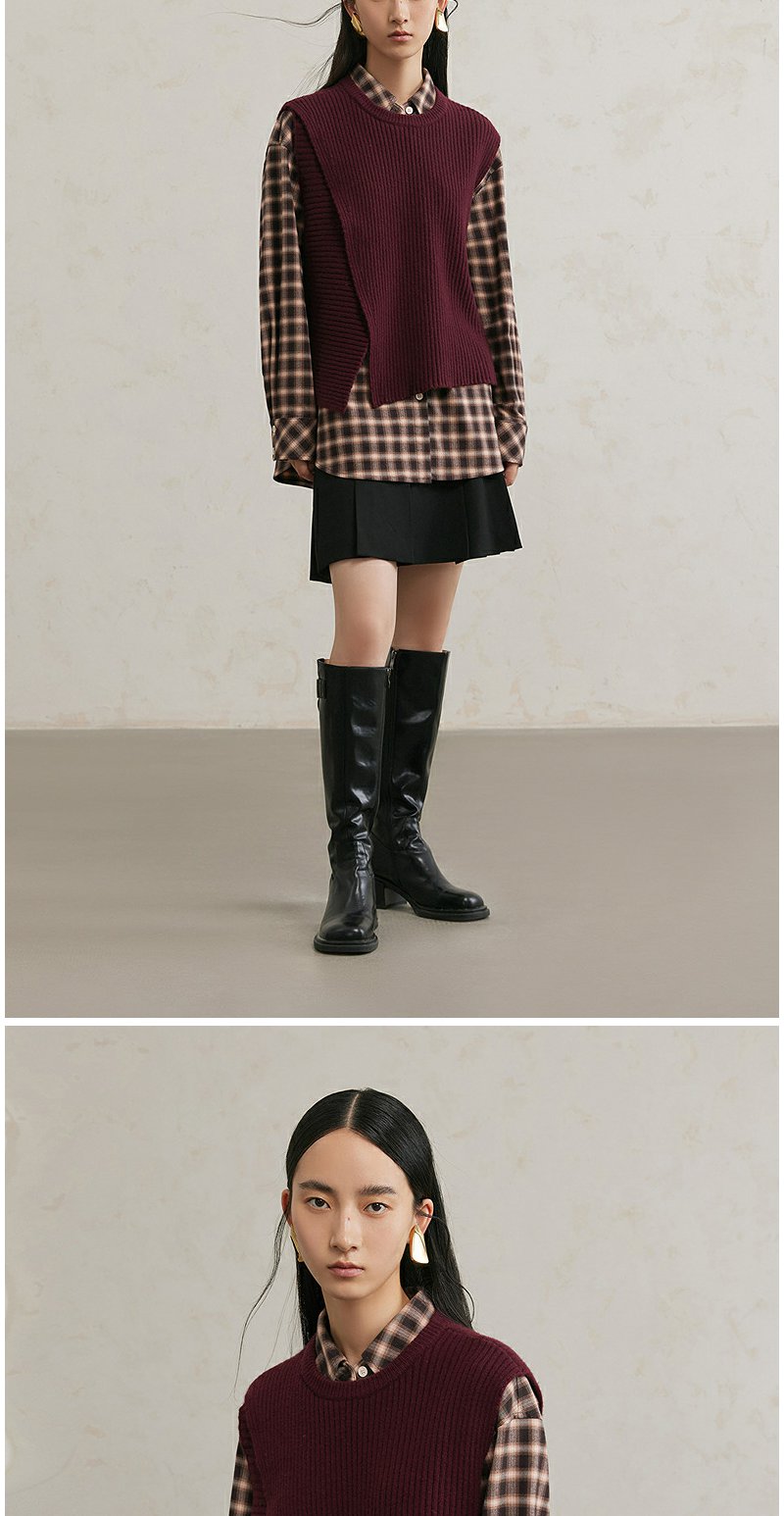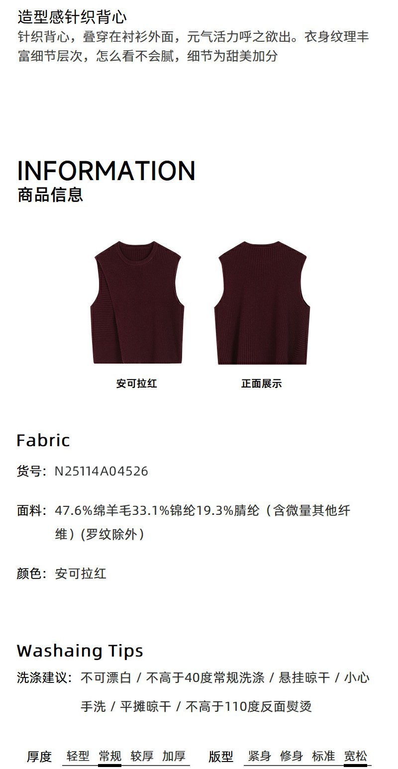 NEELLY纳俪商场同款冬季新款圆领开衩针织背心女简约休闲上衣N25114A04526