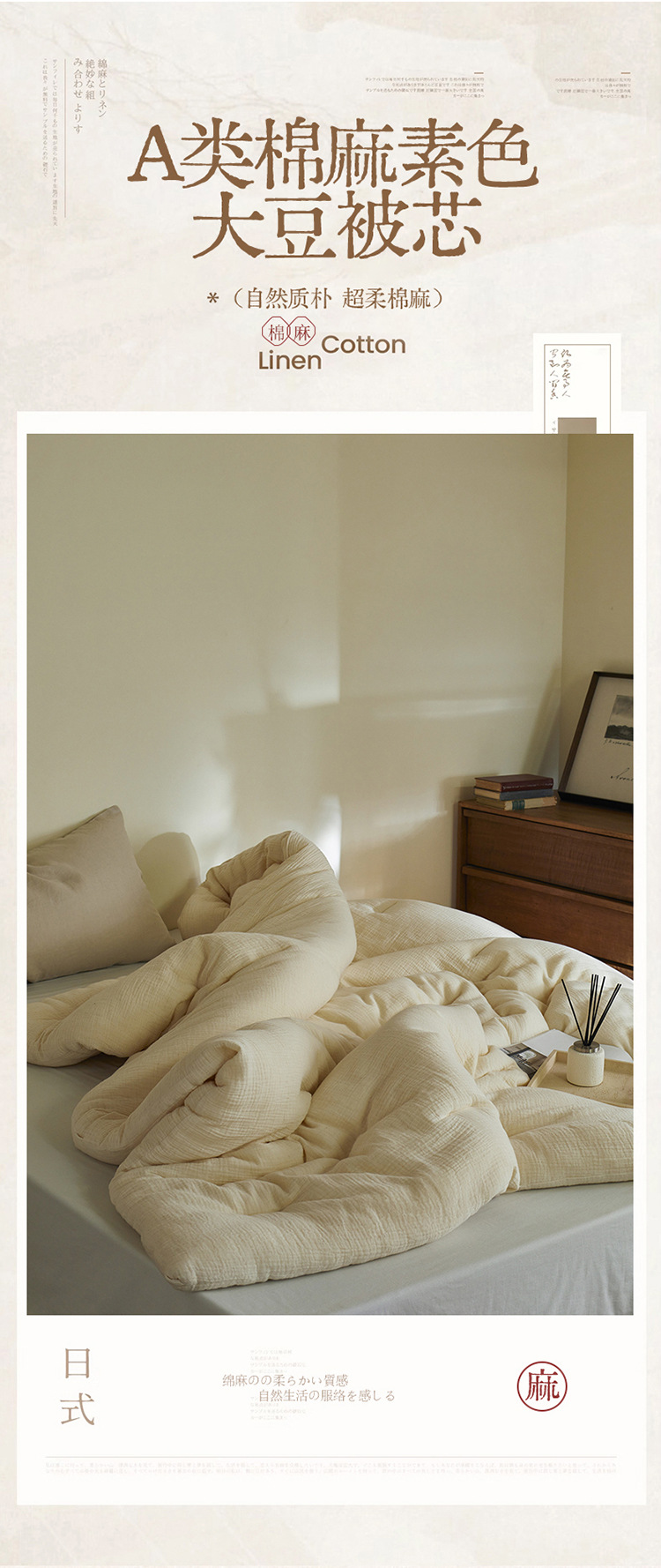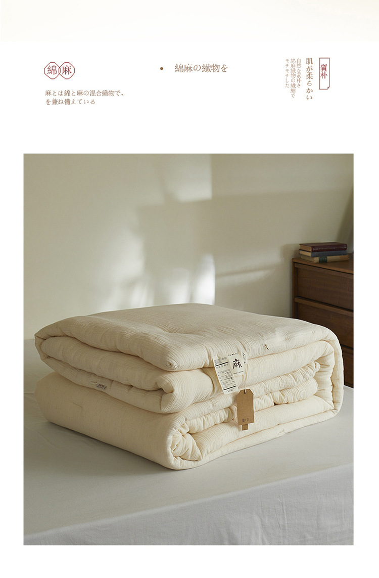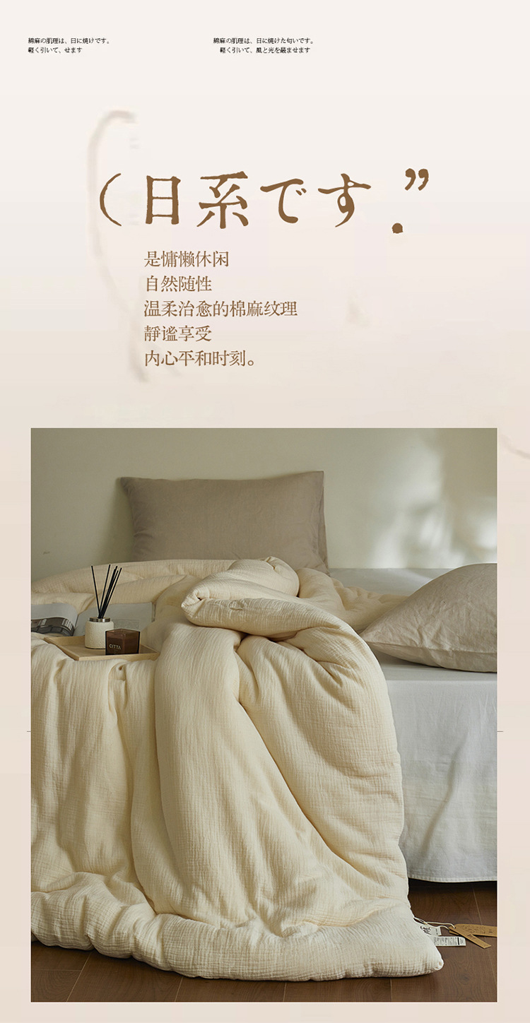 【A类棉麻皱皱纱】棉麻皱皱纱被芯纯色被子双层纱秋冬被四季被大豆纤维