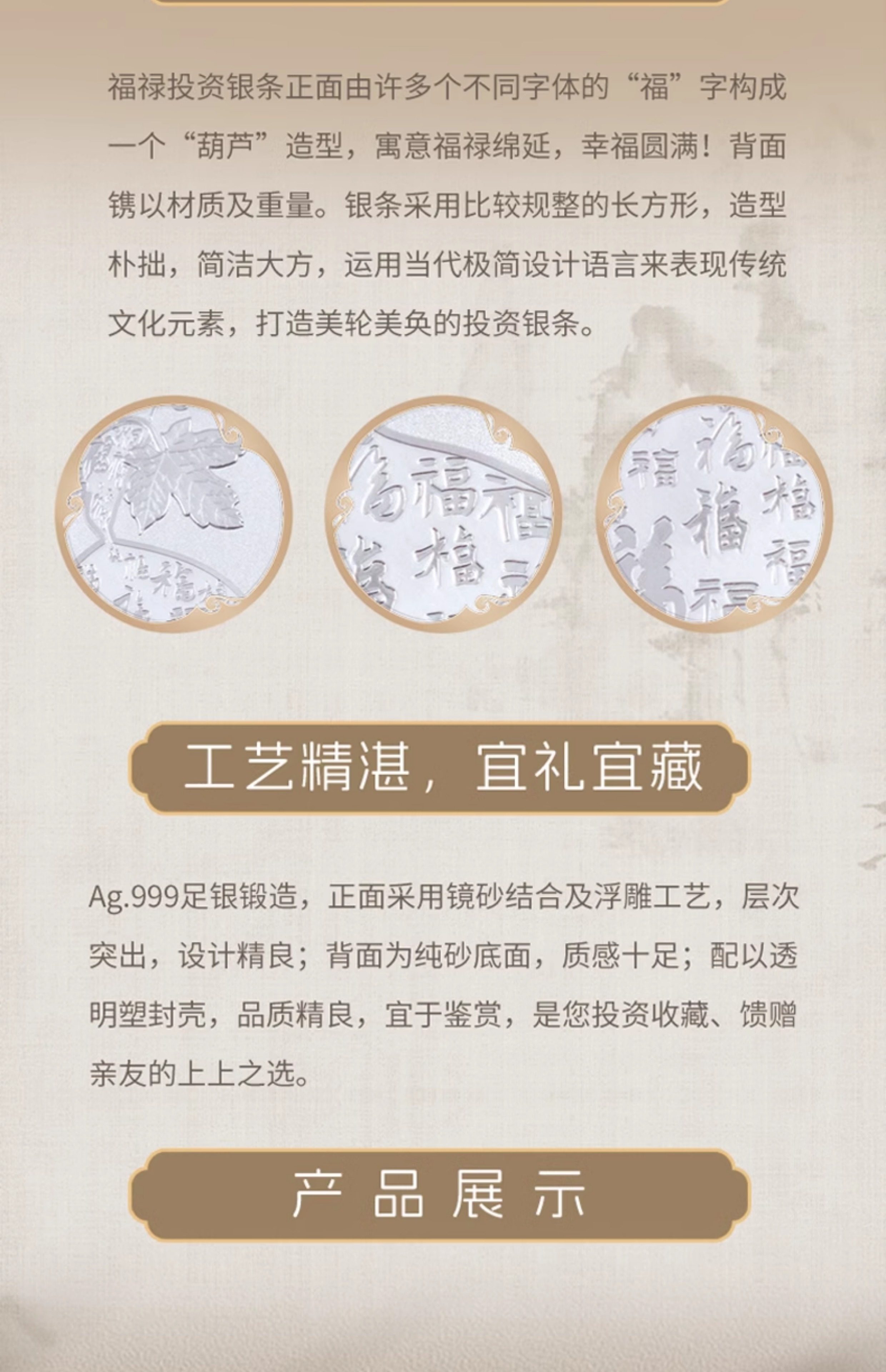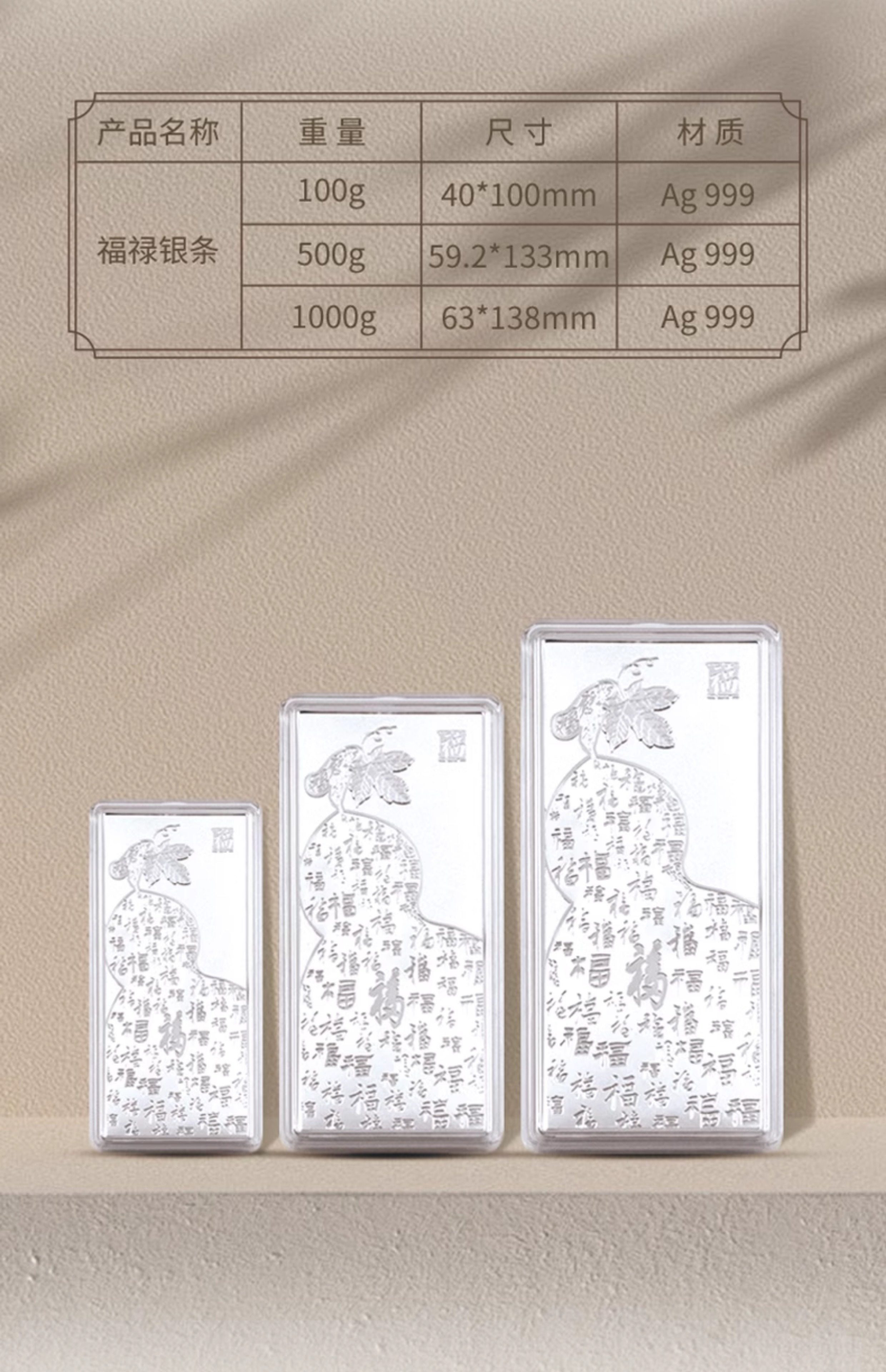 【银条】福禄银条100克 500克 投资银条 摆件礼品