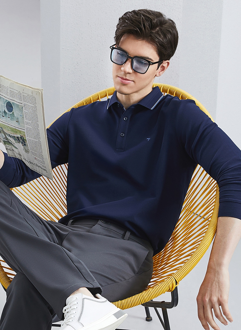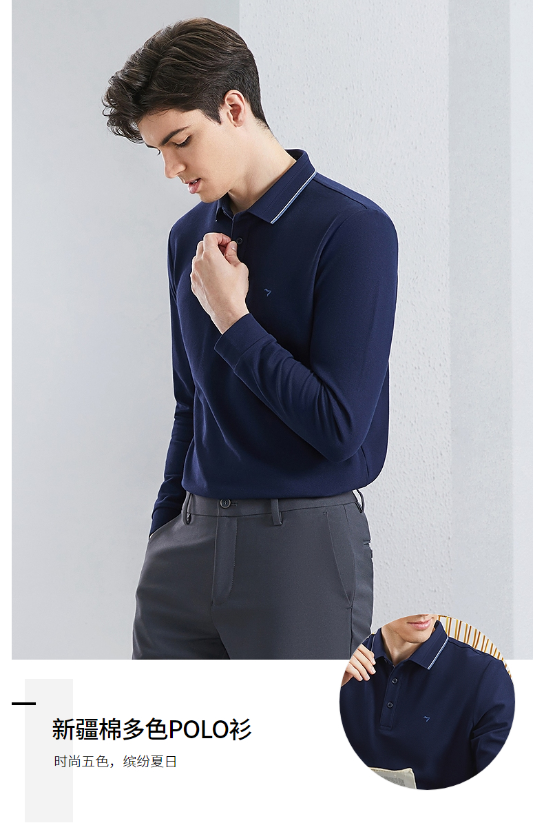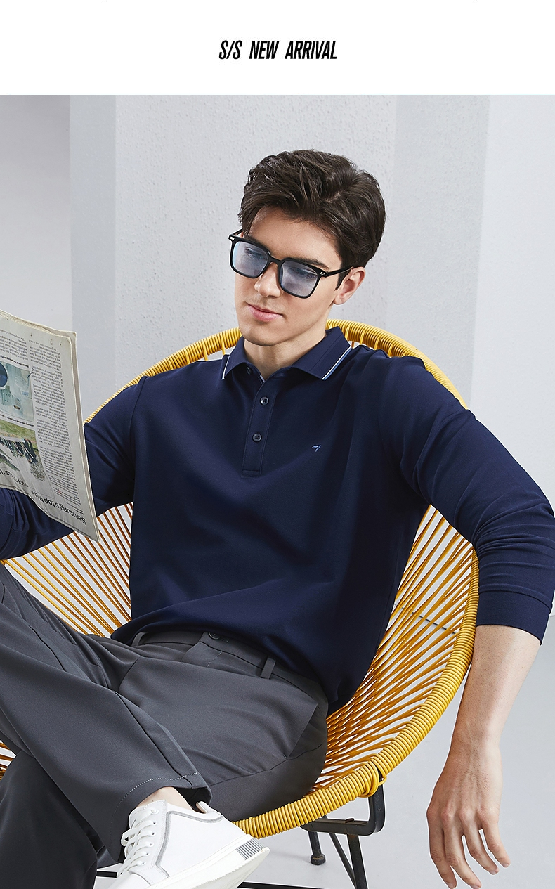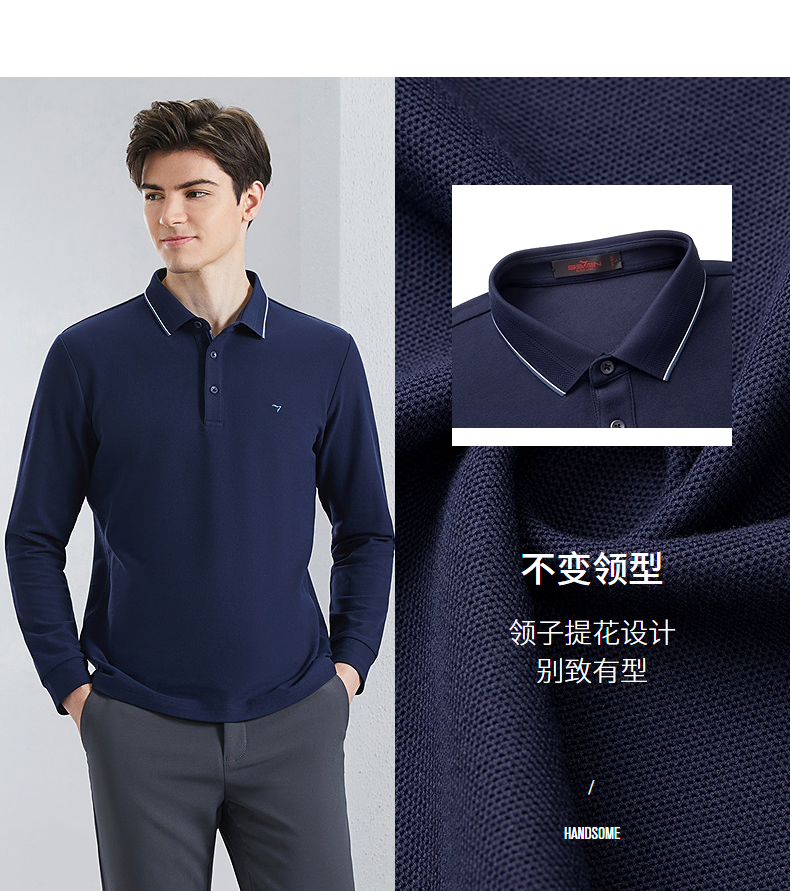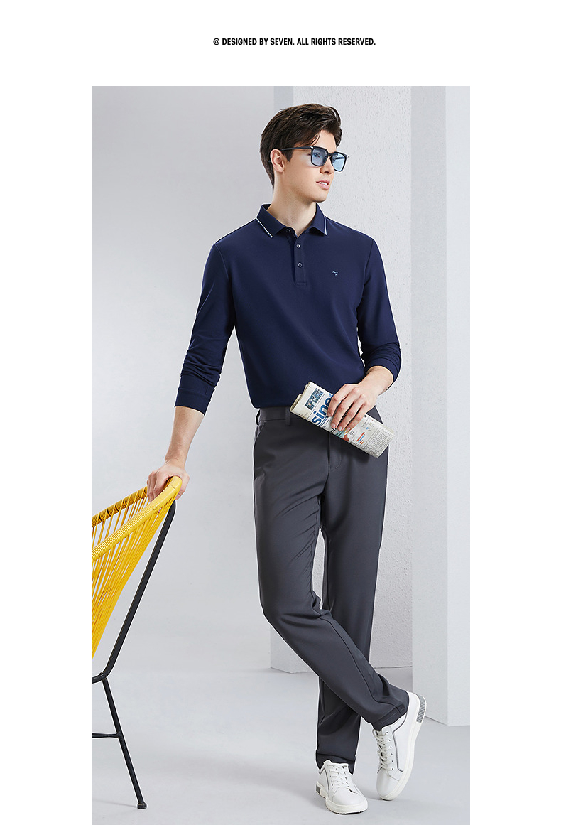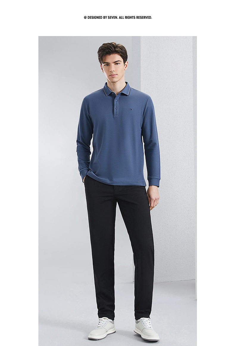 【不变形领】柒牌长袖polo衫男2024春夏新款商务休闲男士翻领T恤 126T73000