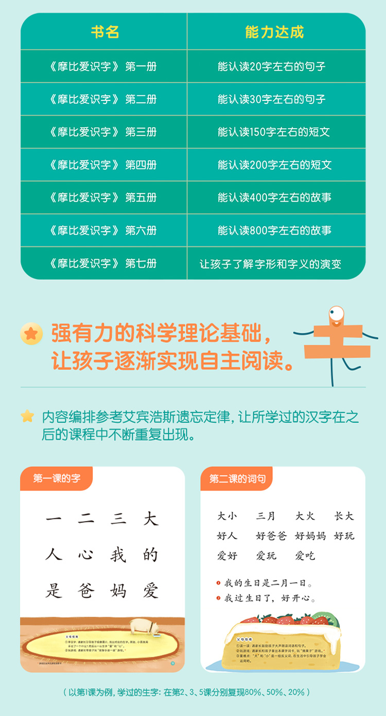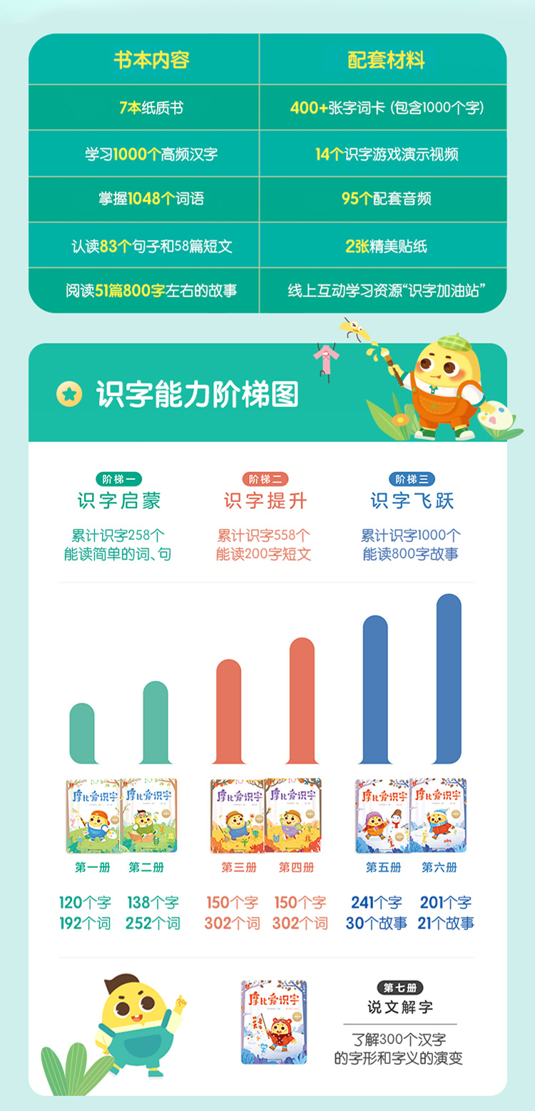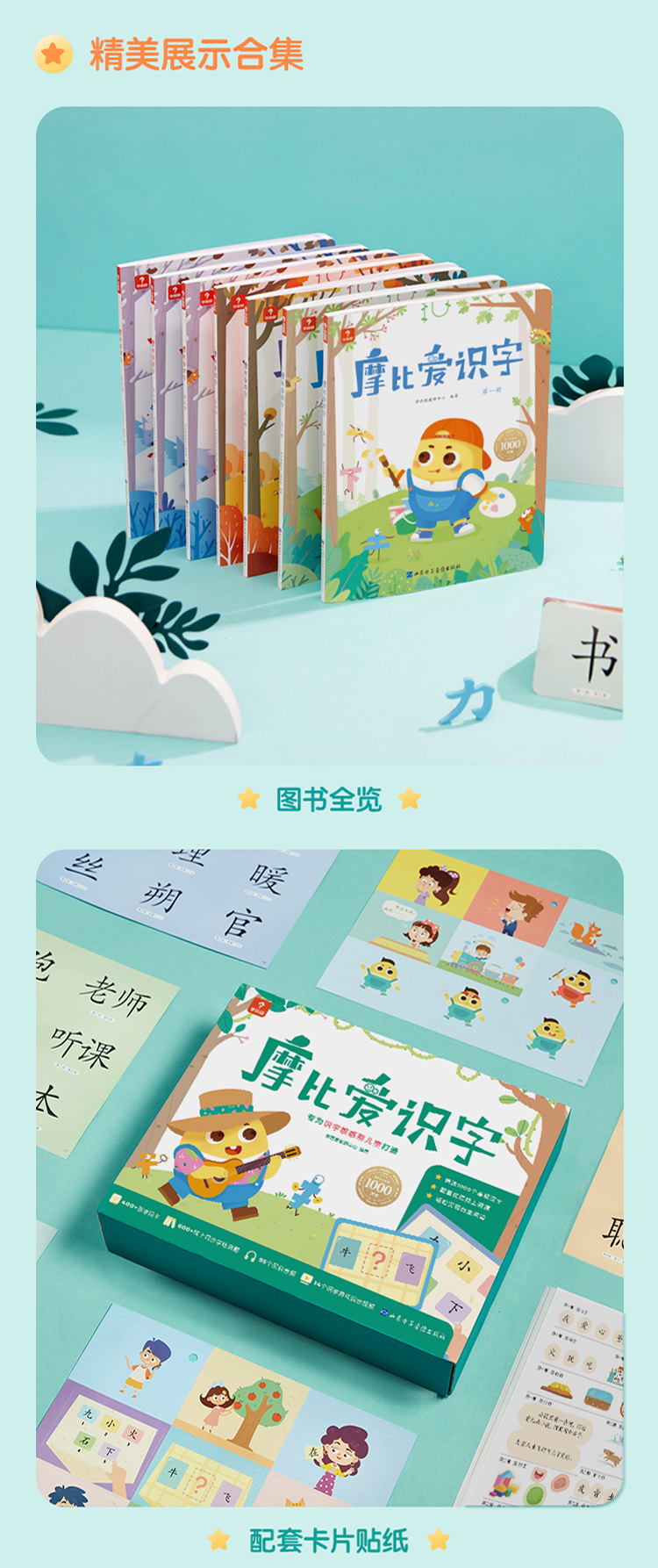 【赠卡片贴纸+视频】3-6岁摩比爱识字共7册 1000个汉字全方位启蒙 学前识字启蒙神器