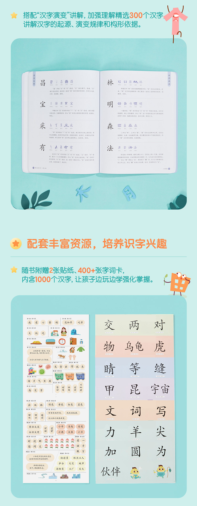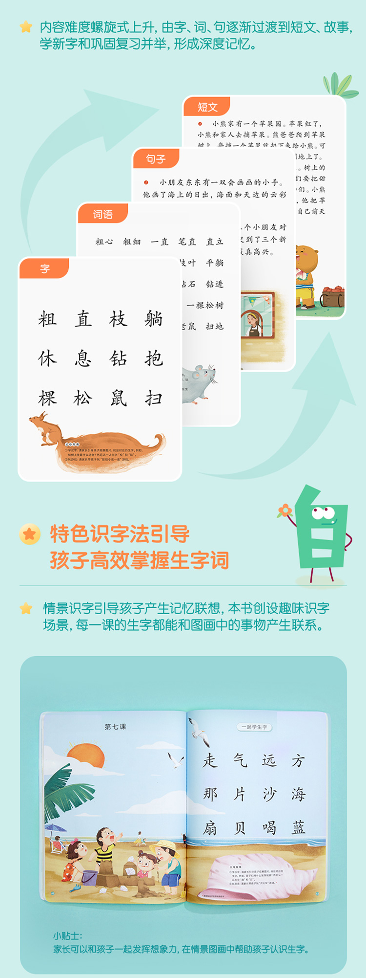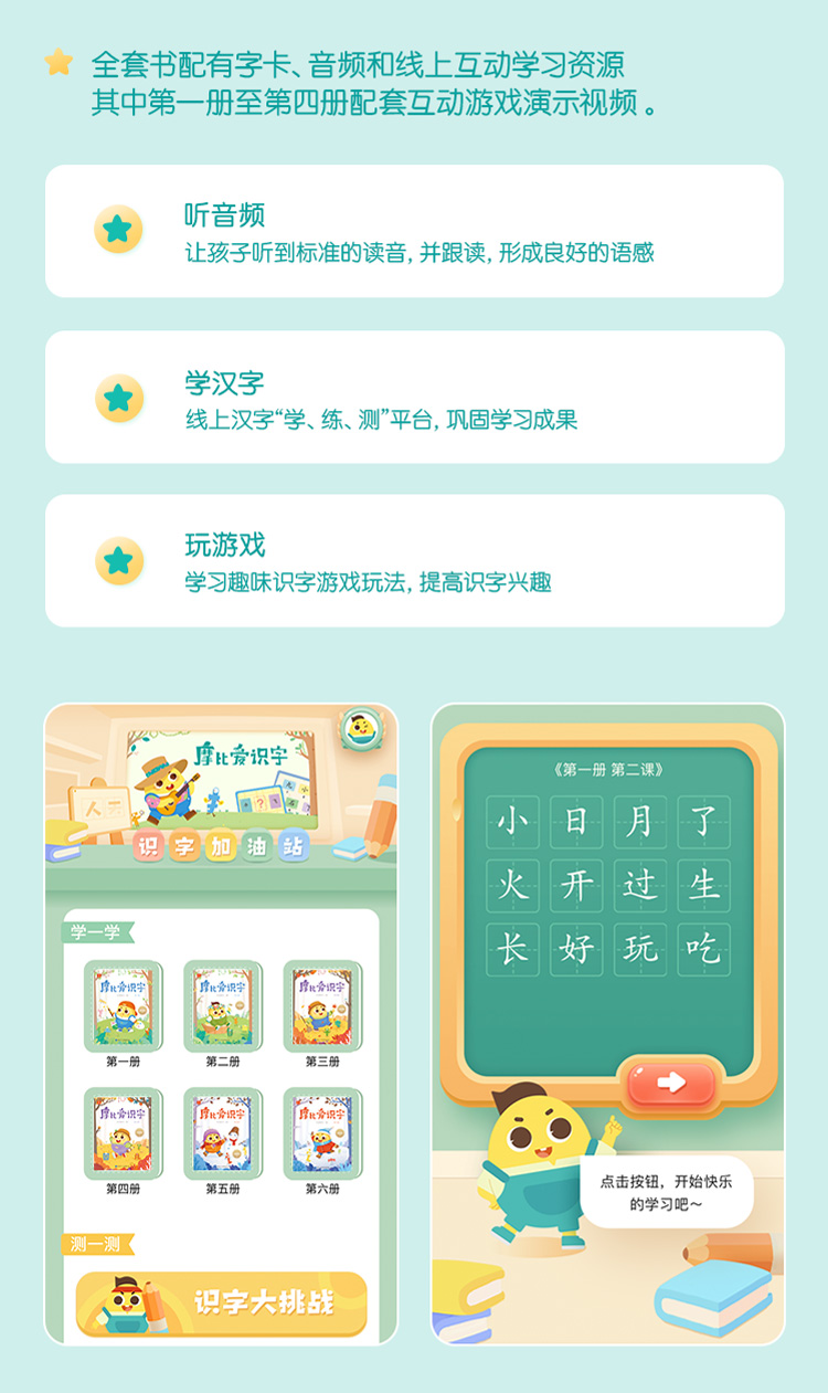 【赠卡片贴纸+视频】3-6岁摩比爱识字共7册 1000个汉字全方位启蒙 学前识字启蒙神器