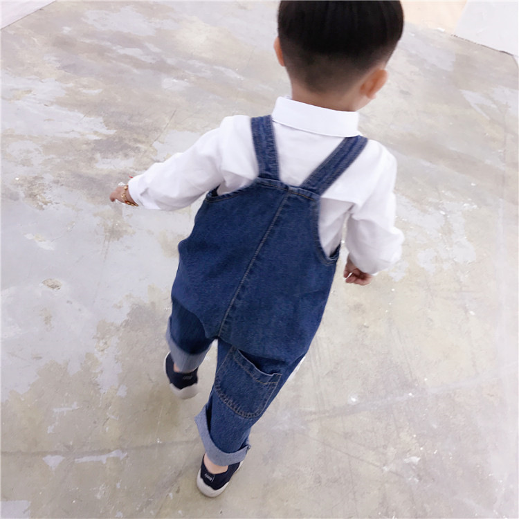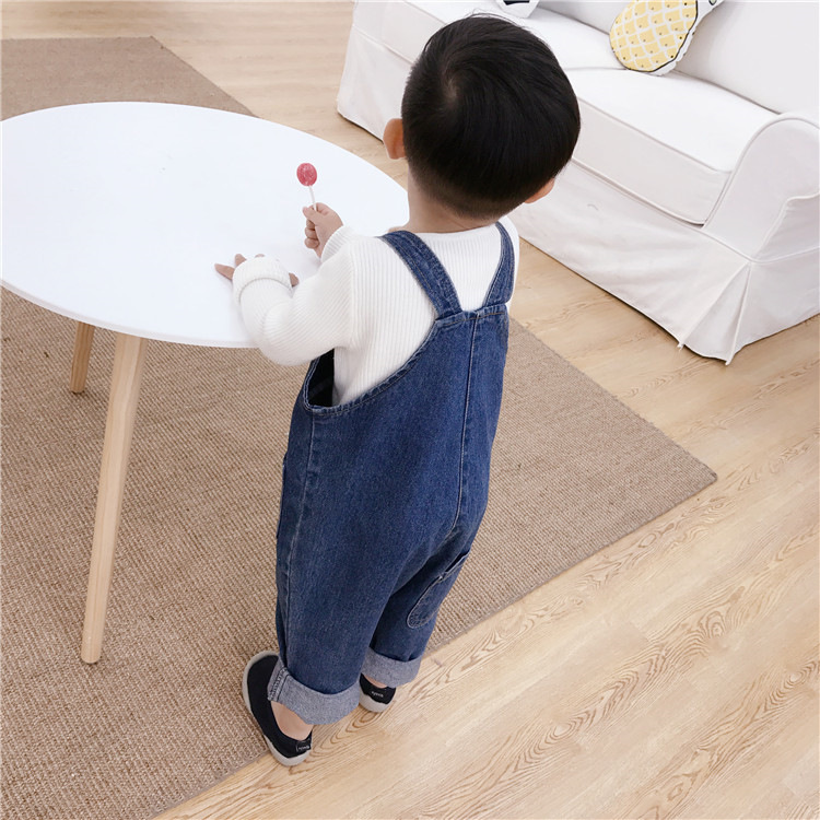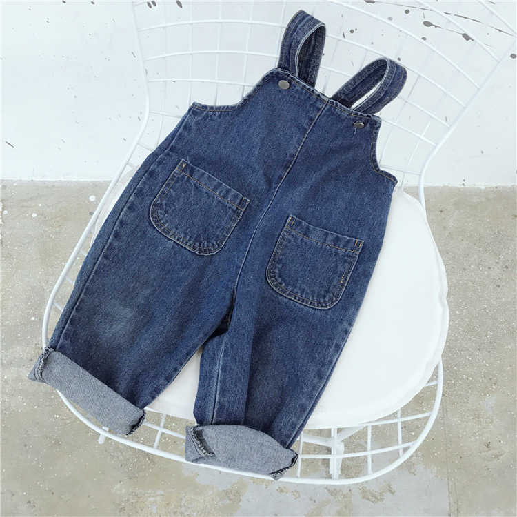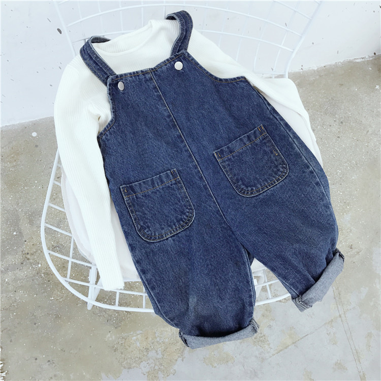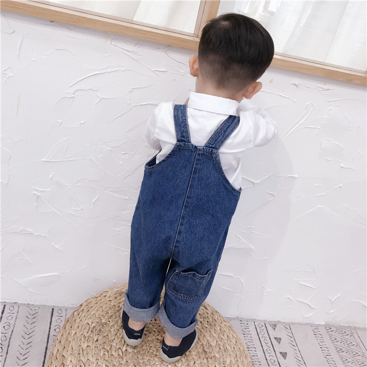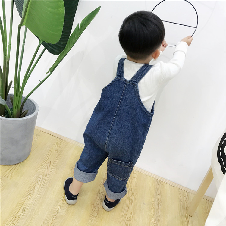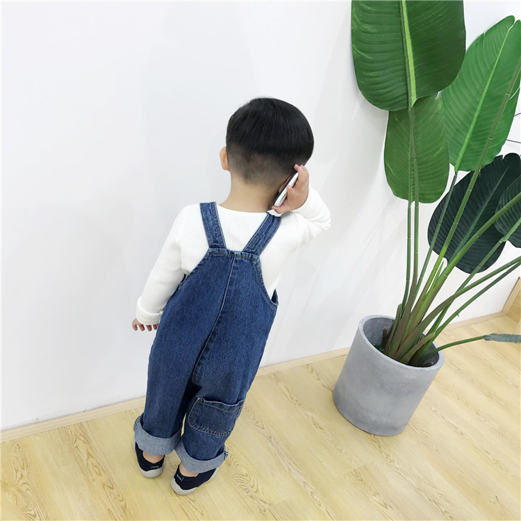 幸福满满bxx 18儿童秋款中性风纯棉牛仔大口袋可爱背带裤子童裤一件代发