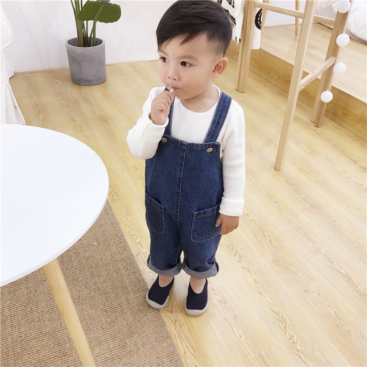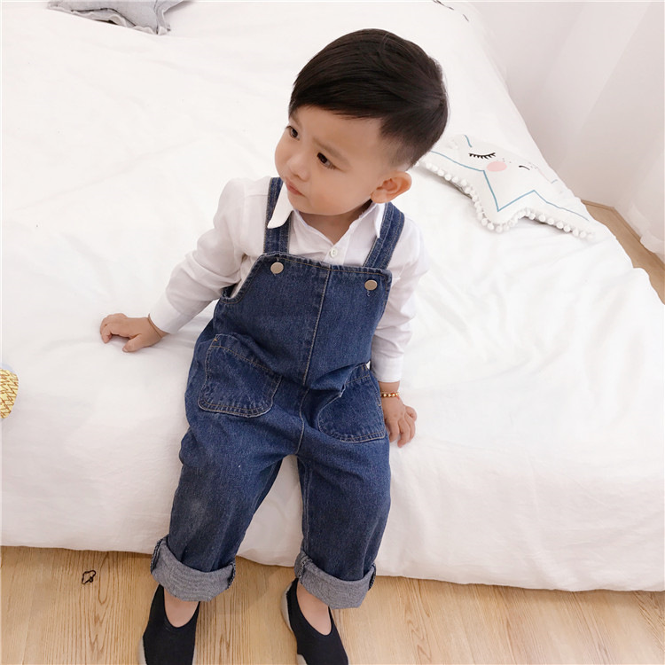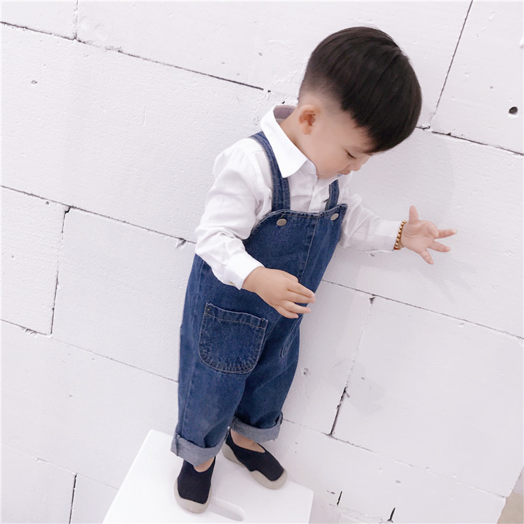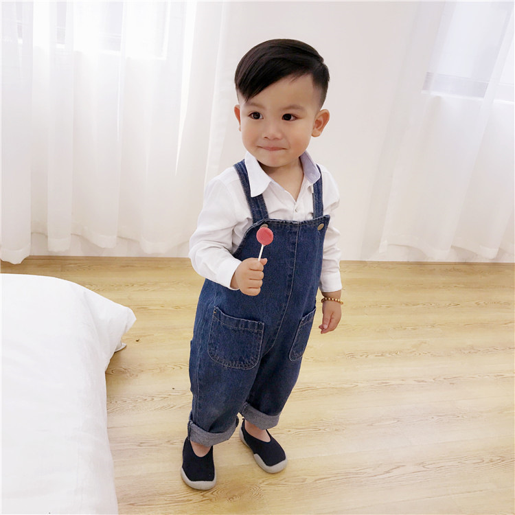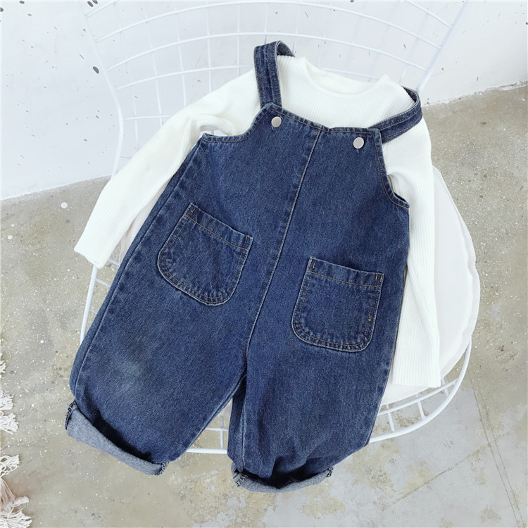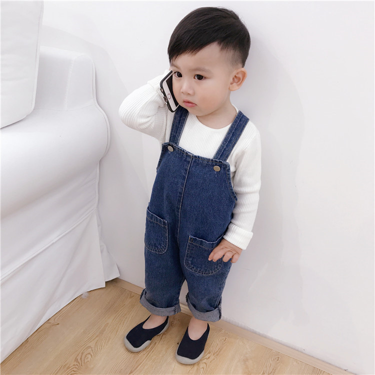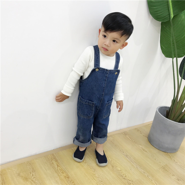 幸福满满bxx 18儿童秋款中性风纯棉牛仔大口袋可爱背带裤子童裤一件代发