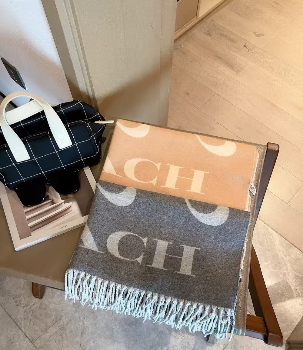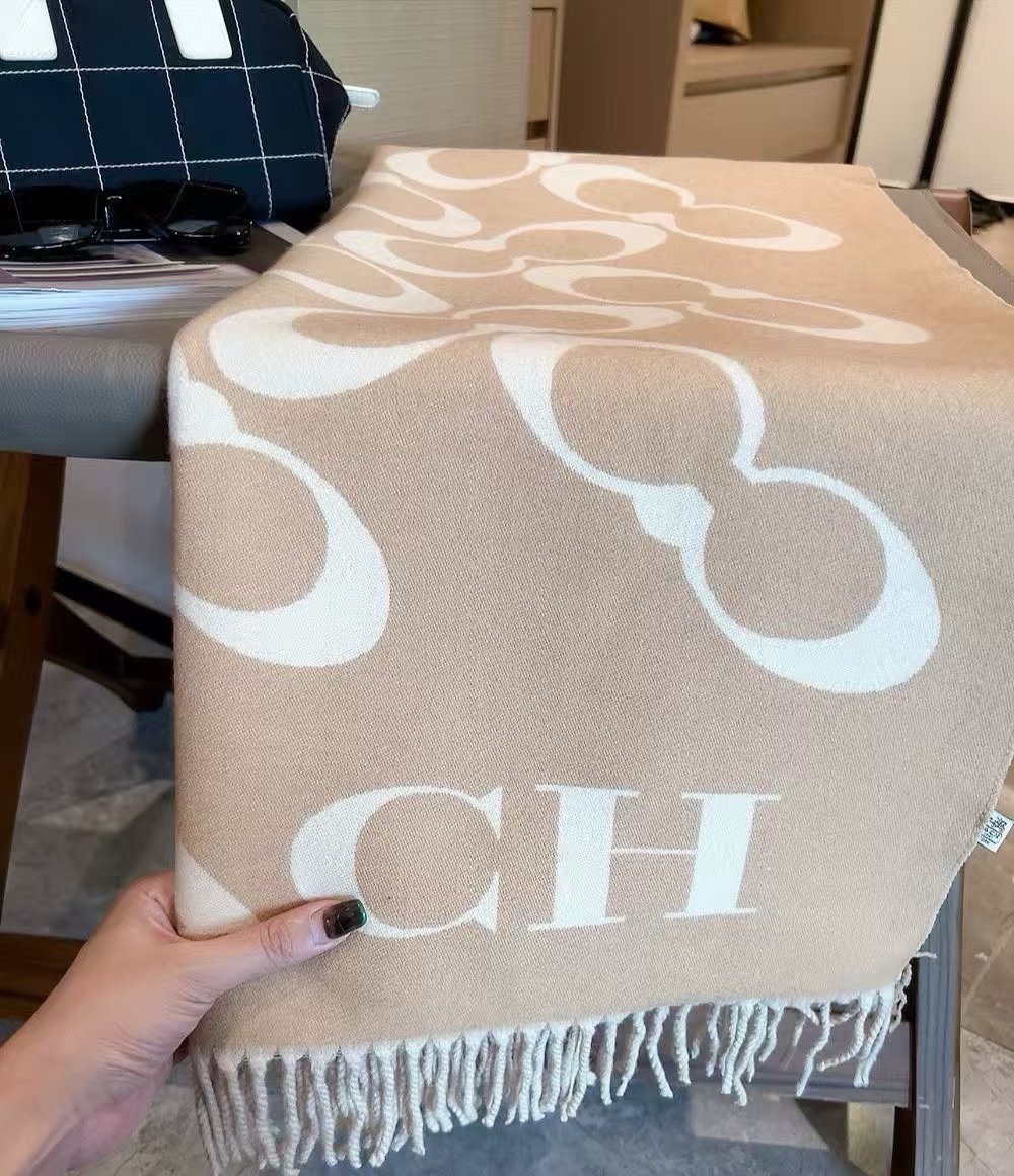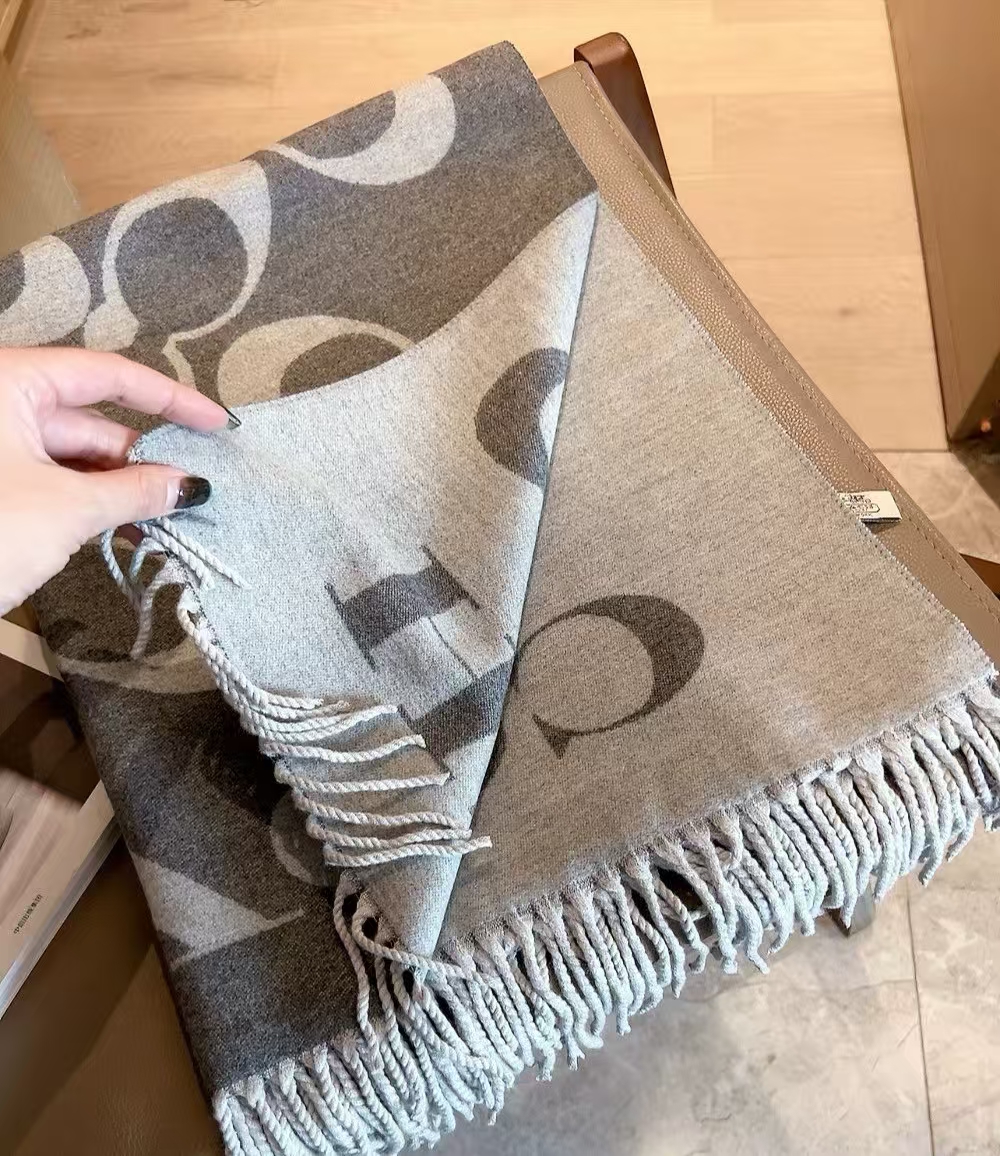 【限时购】【礼盒礼袋】COACH/蔻驰奥莱男女同款经典标志大尺寸老花围巾复古 178cm*48cm