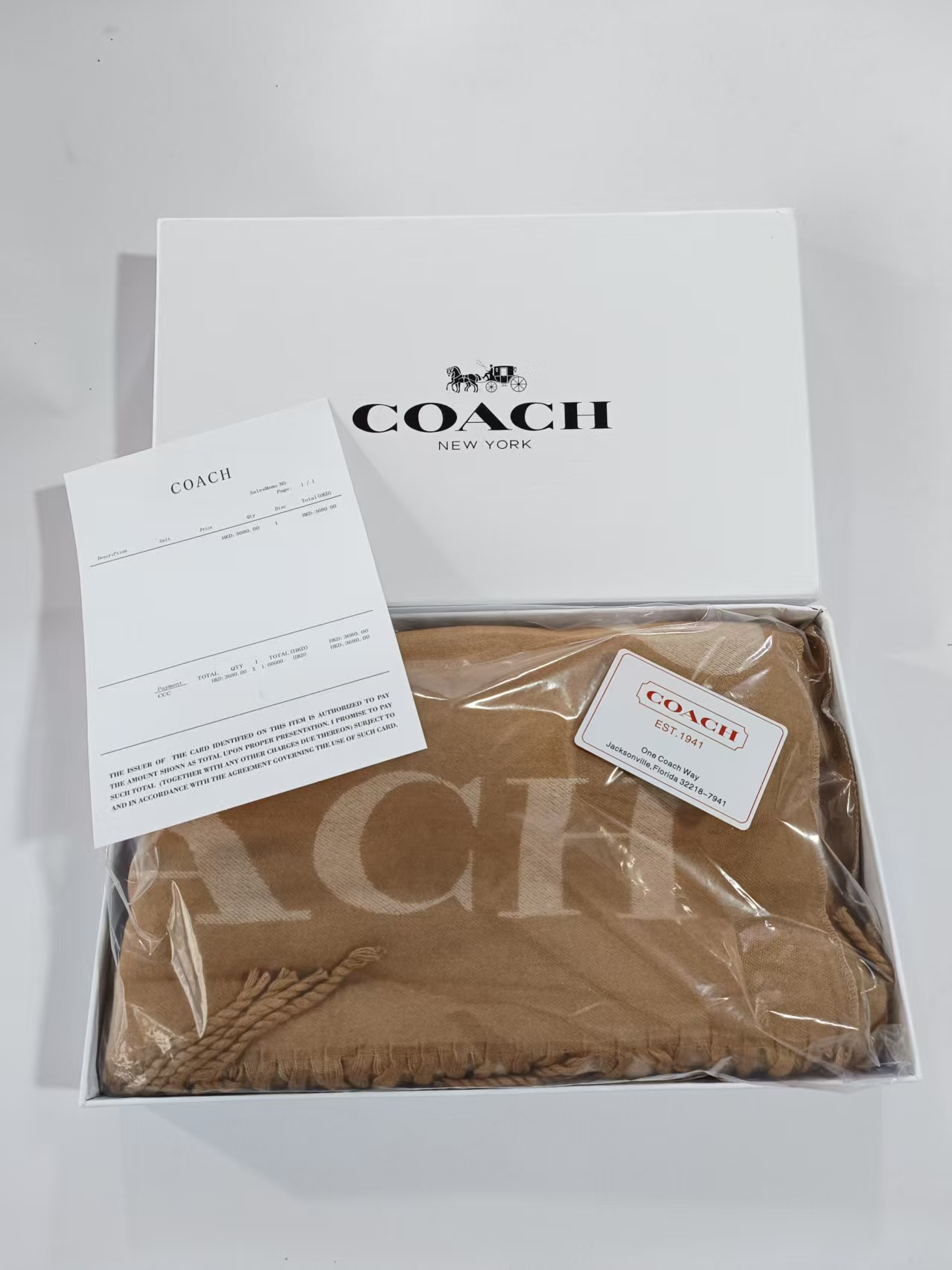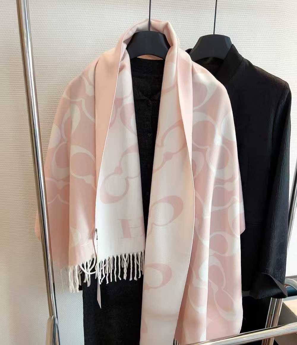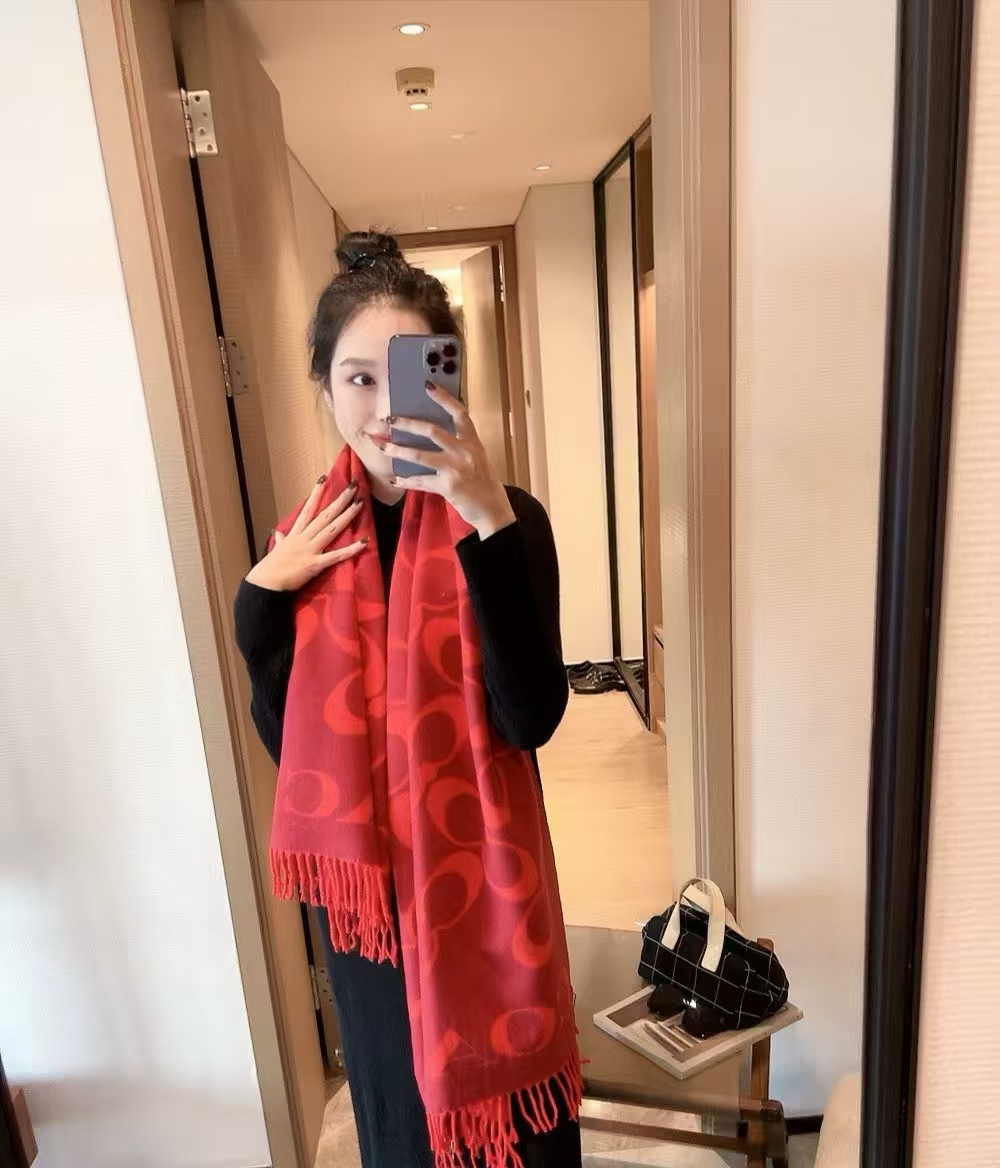 【限时购】【礼盒礼袋】COACH/蔻驰奥莱男女同款经典标志大尺寸老花围巾复古 178cm*48cm