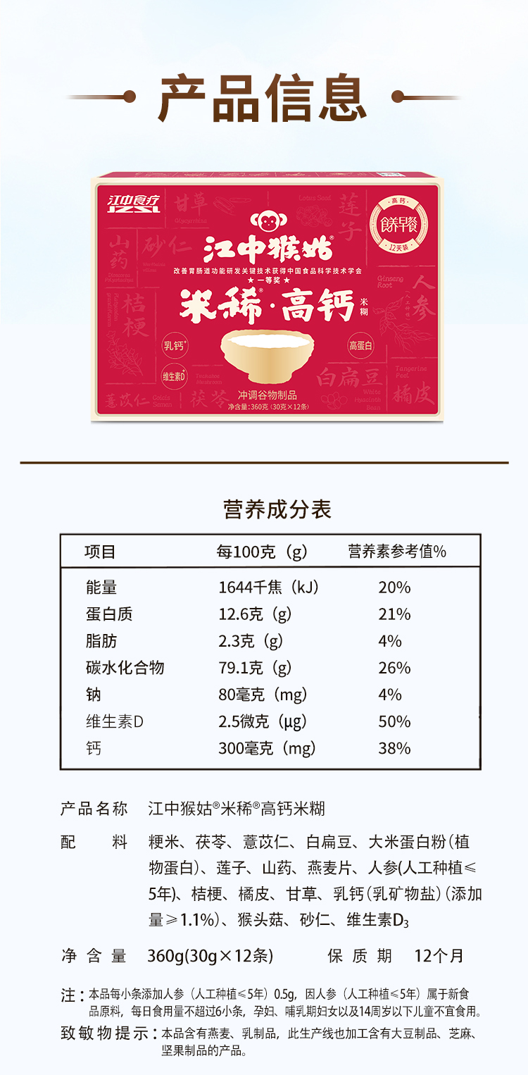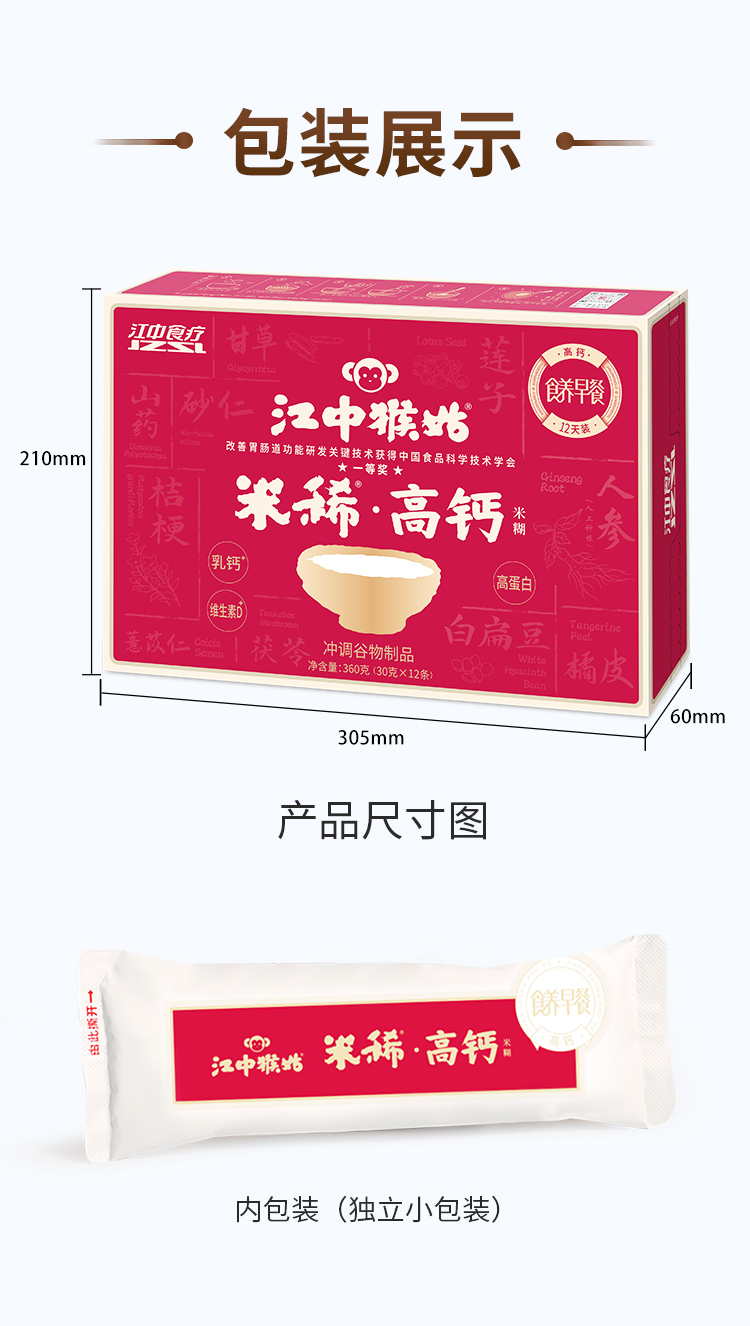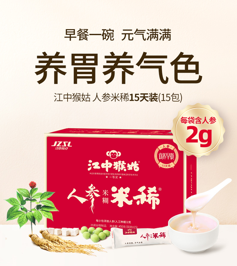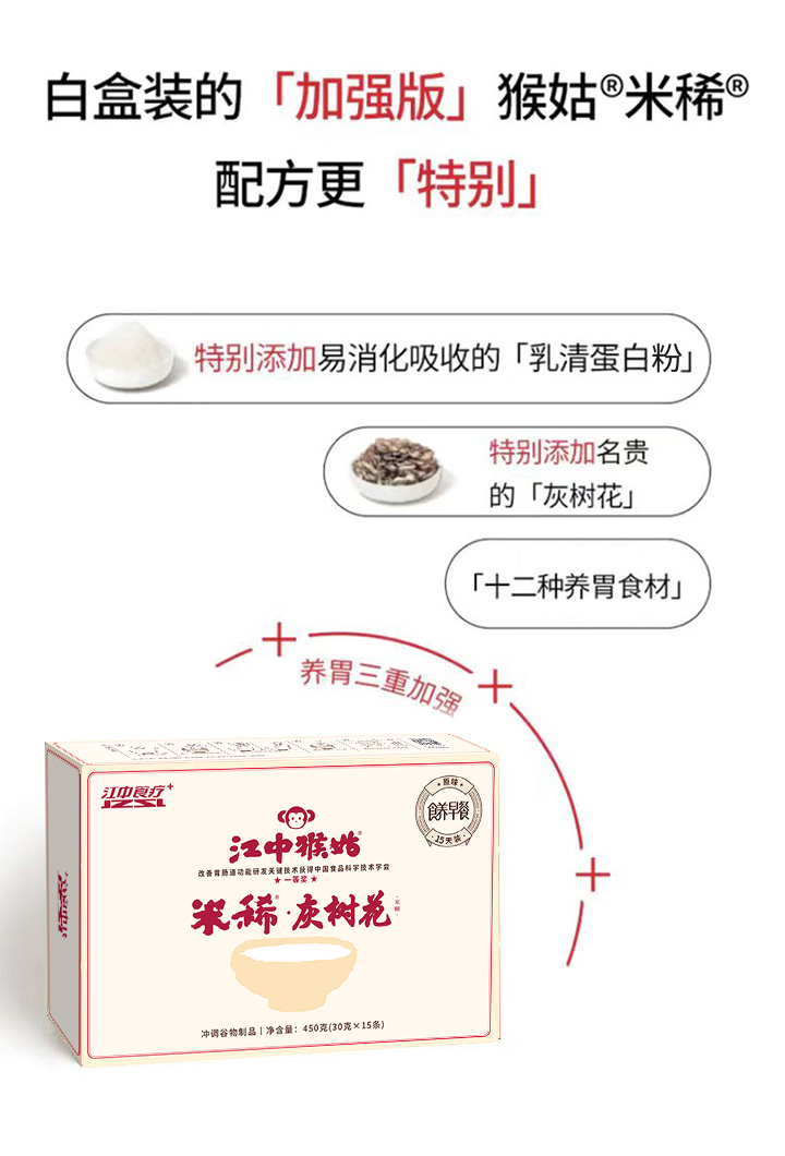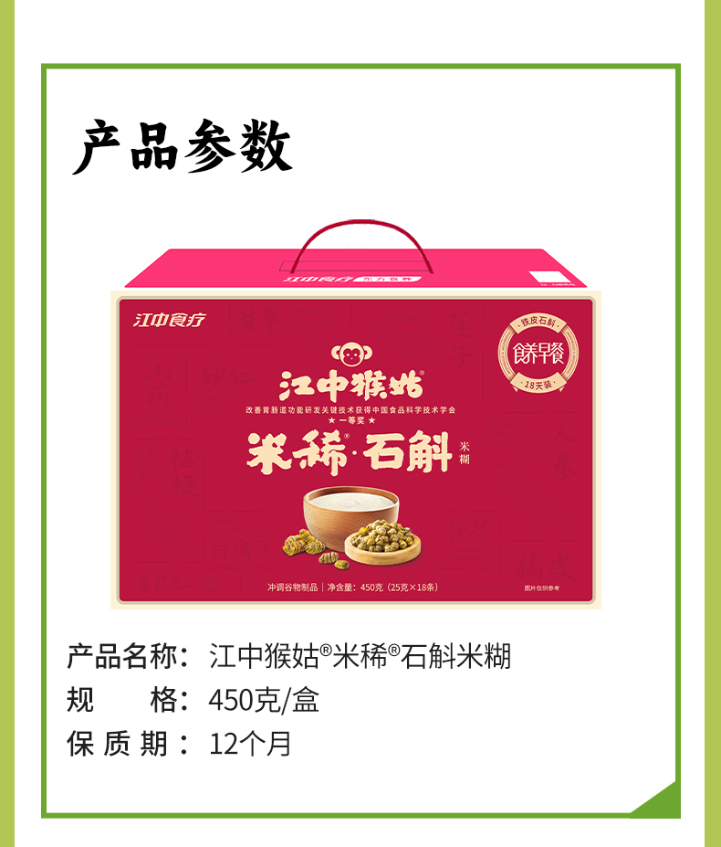 【秋冬养胃】15天装 江中猴姑米稀灰树花米糊 450克/盒 到手15包 2025年11月生产 | 保质期12个月
