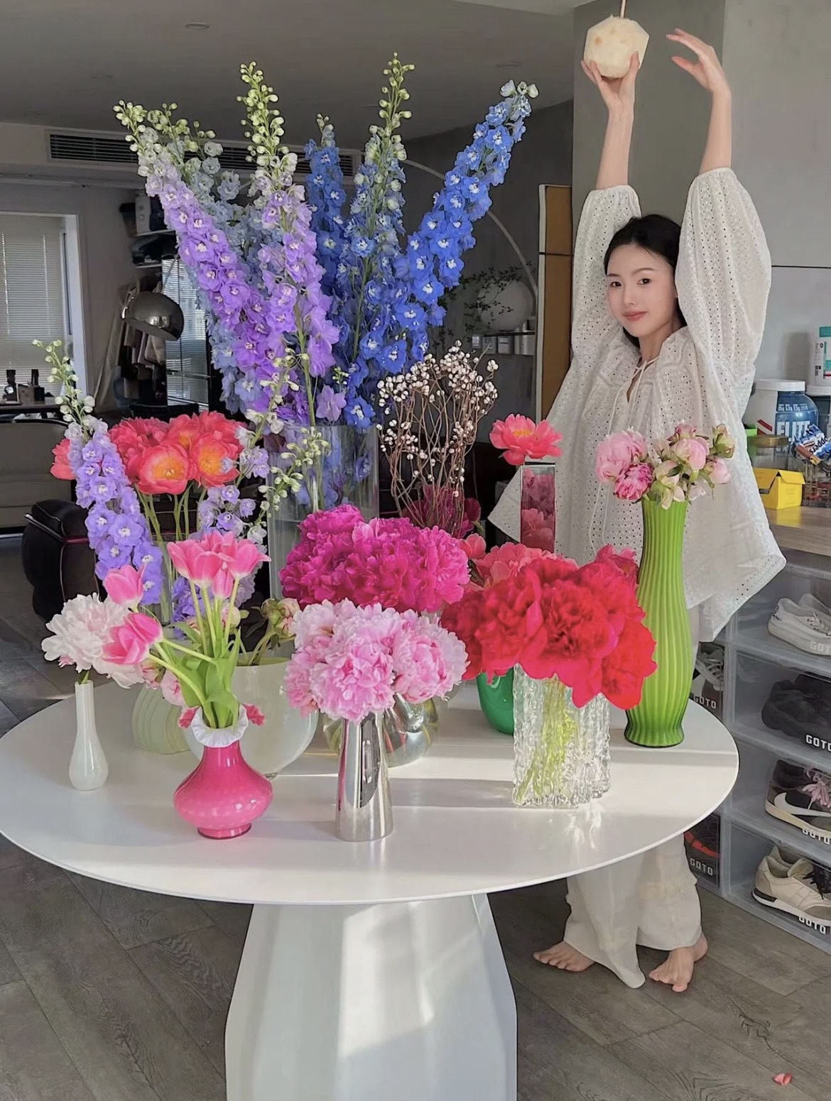 第一种方法:直接拆掉包装,45度斜剪根部,深水醒花后插花瓶,花期更长哟~