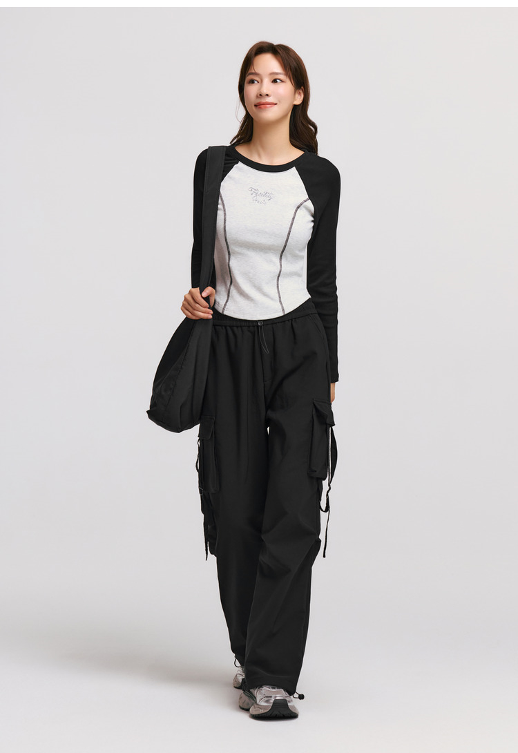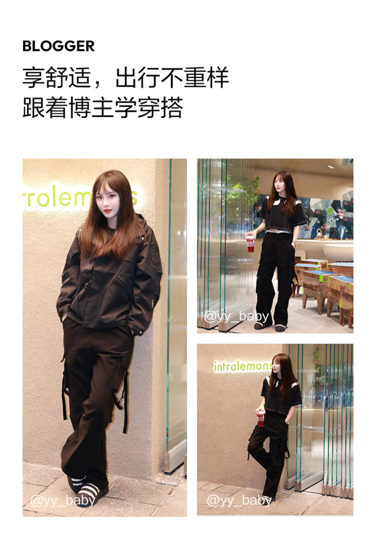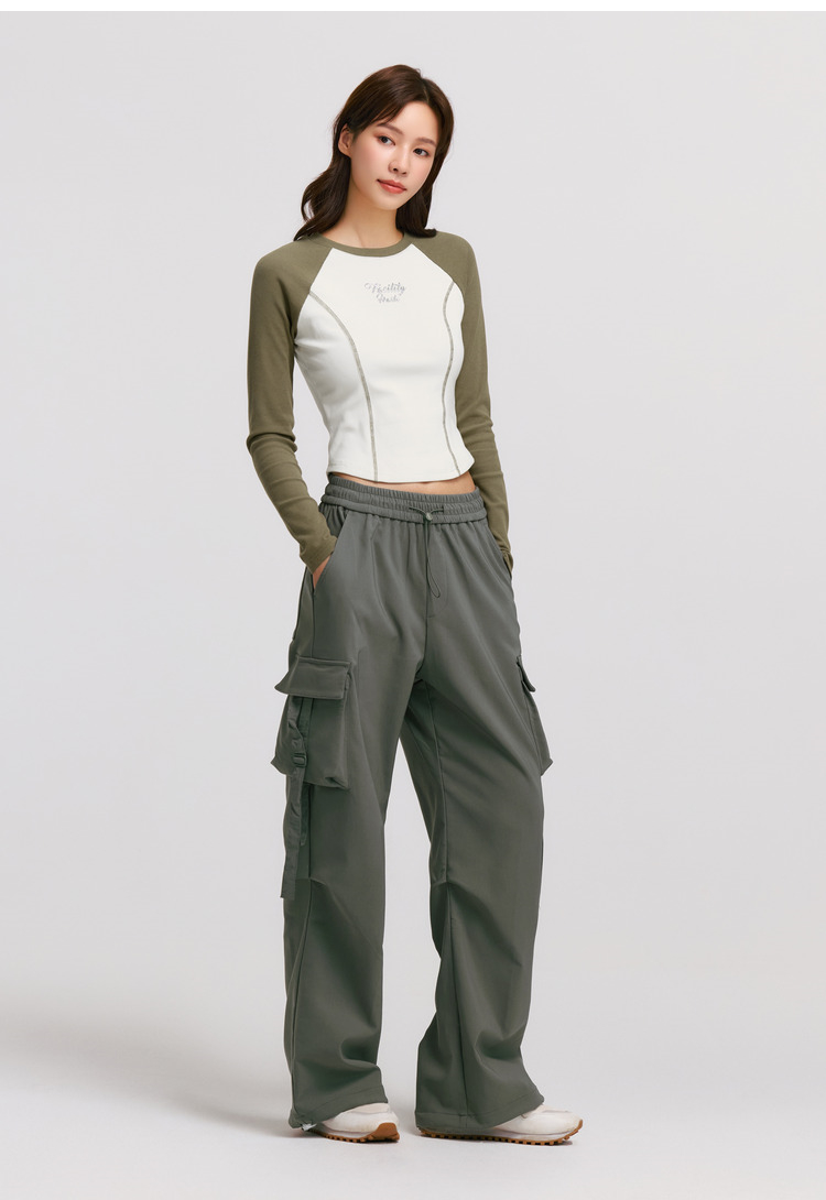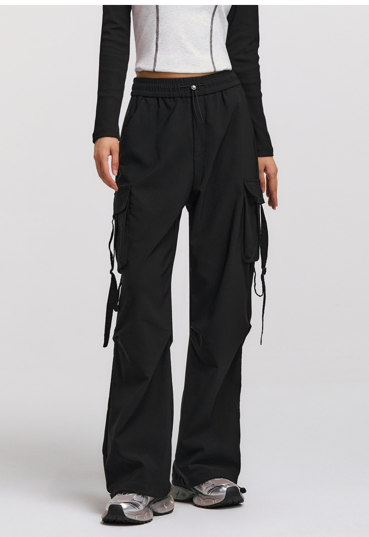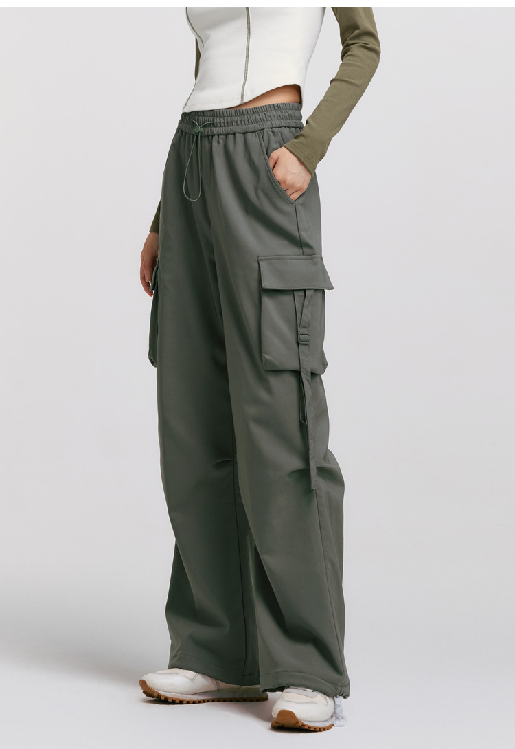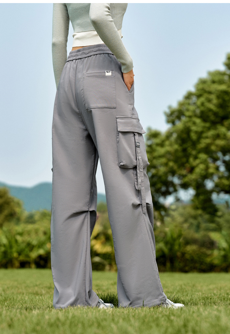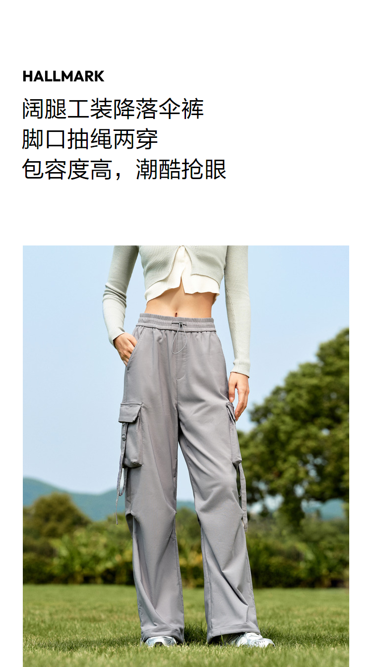 森马休闲裤女阔腿工装裤质感时尚高街女生冬季酷飒风降落伞裤盐系