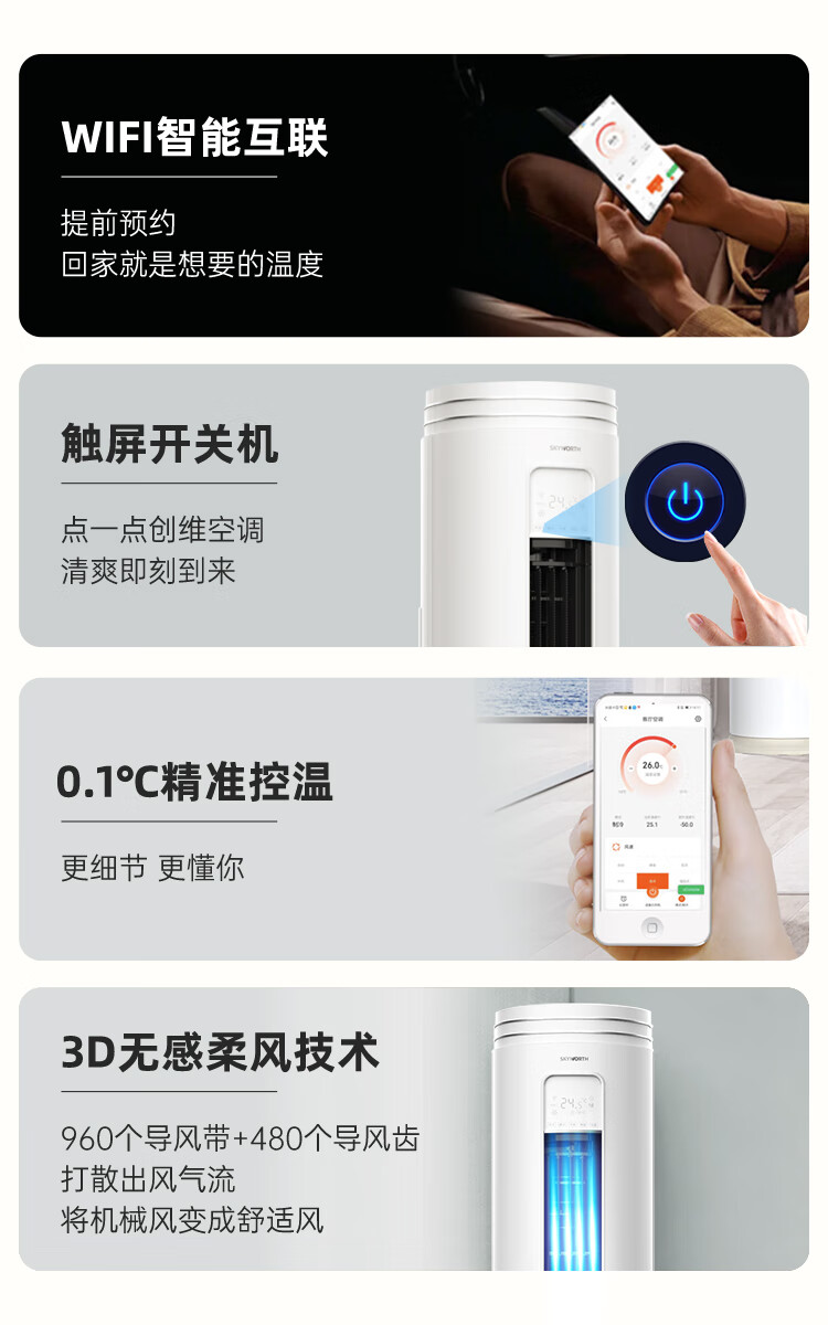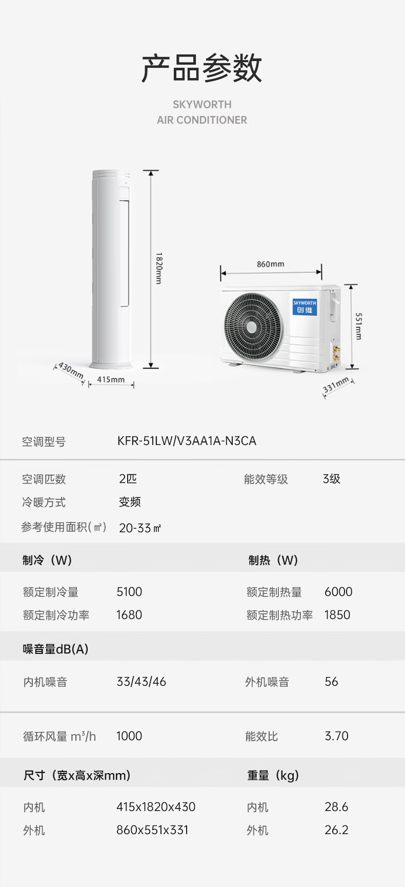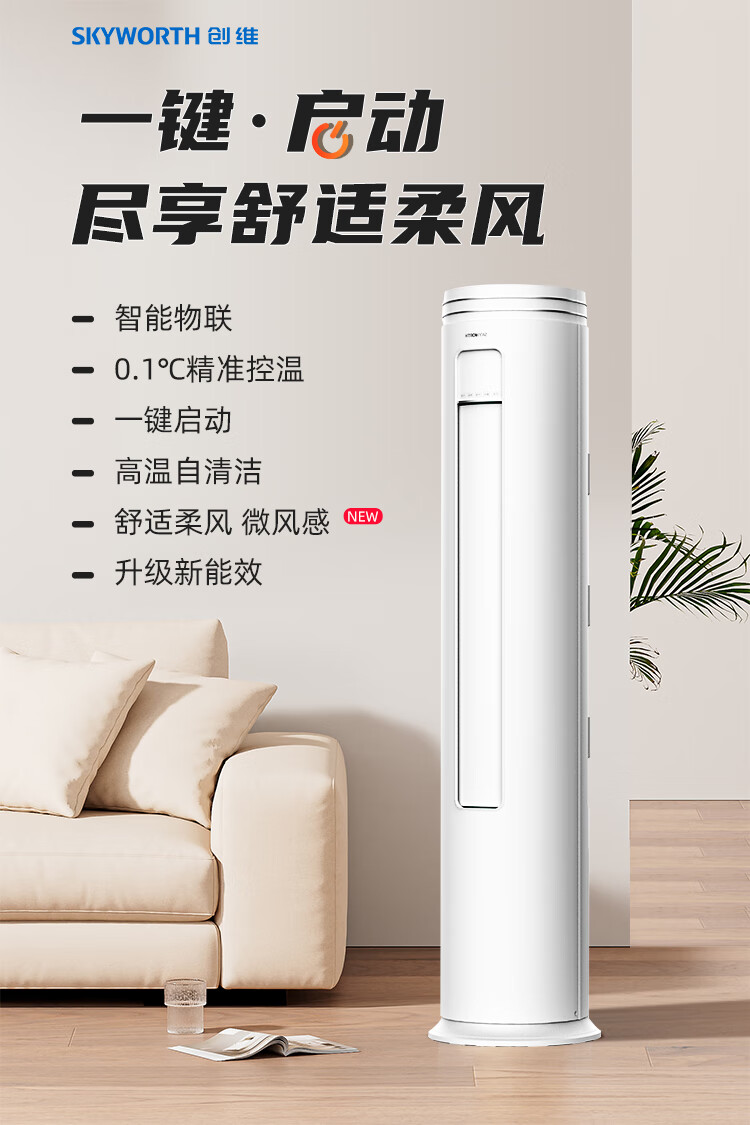 【家电焕新季】创维(SKYWORTH)大2匹微风感 升级新能效 空调柜机 变频冷暖 空调立式 KFR-51LW/V3AA1A-N3CA