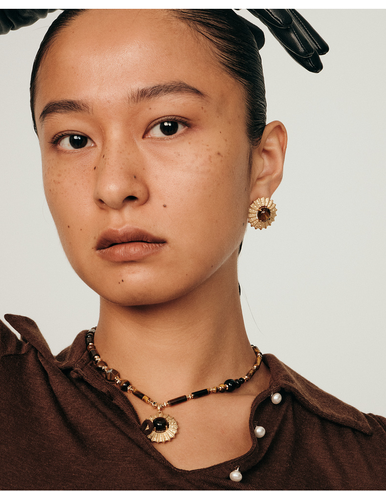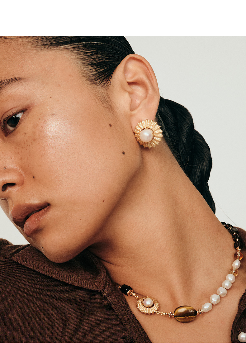 送女友lost in echo2025早秋新款异域独特复古太阳珍珠耳钉耳饰