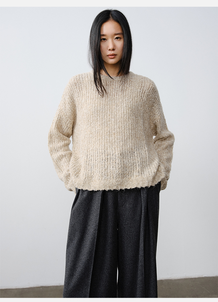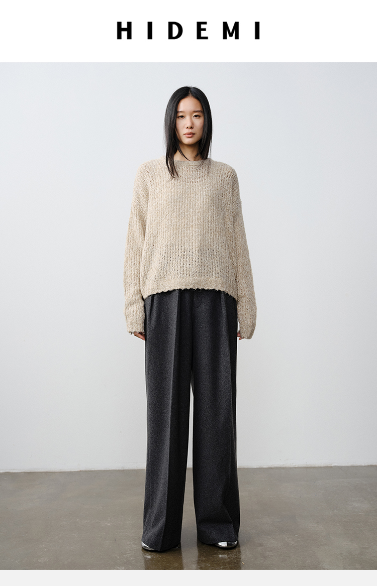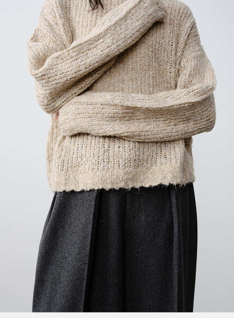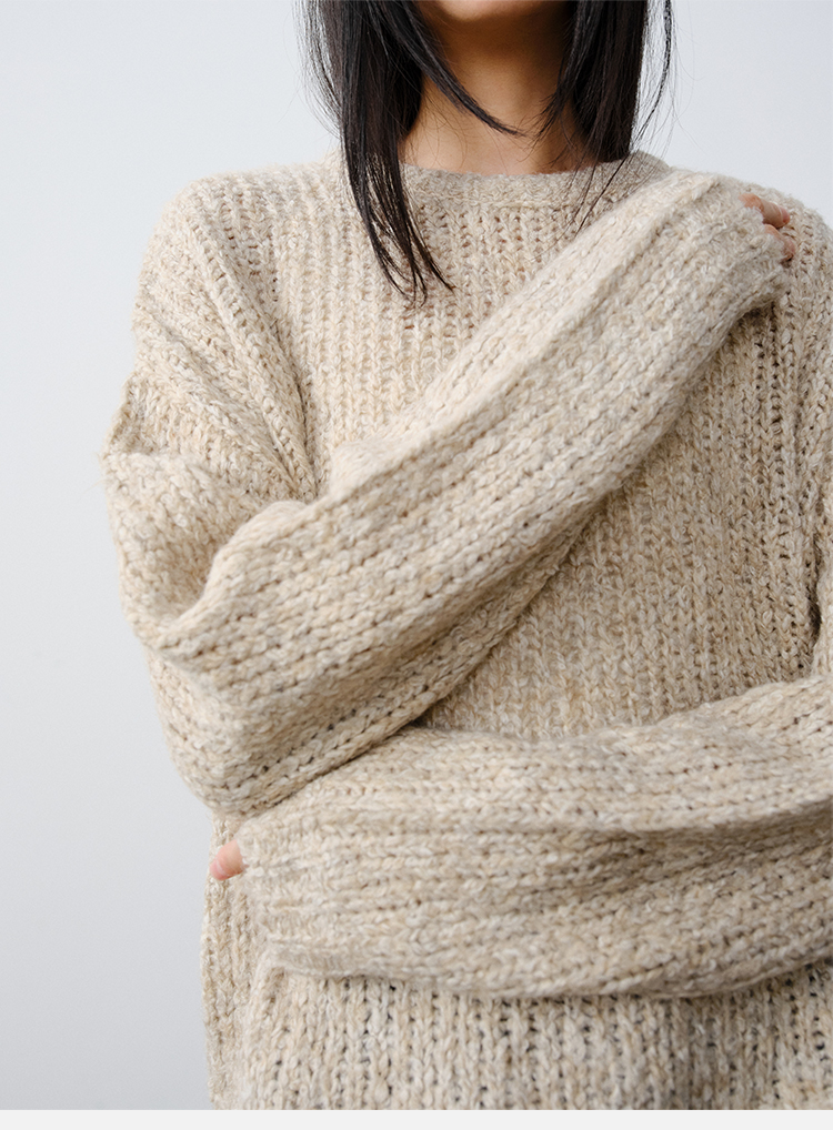 HIDEMI 意大利羊驼毛粗纺粗针松弛感极简宽松大毛衣