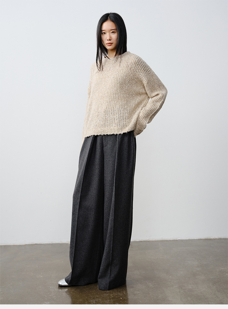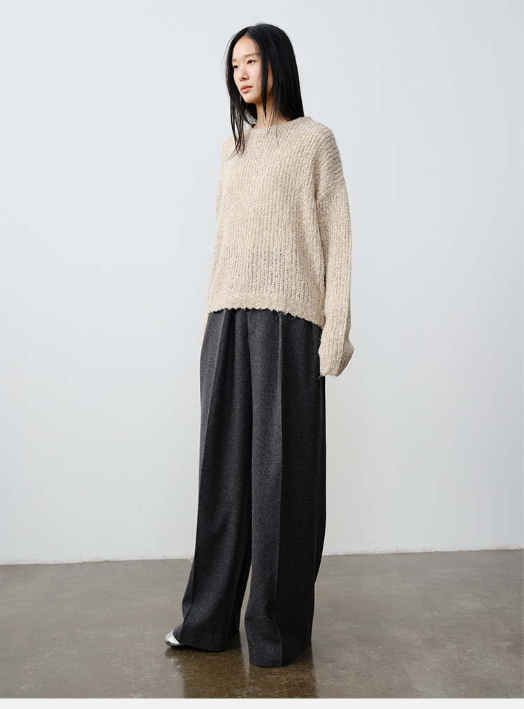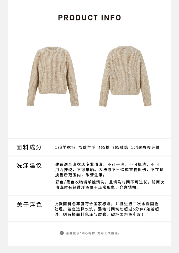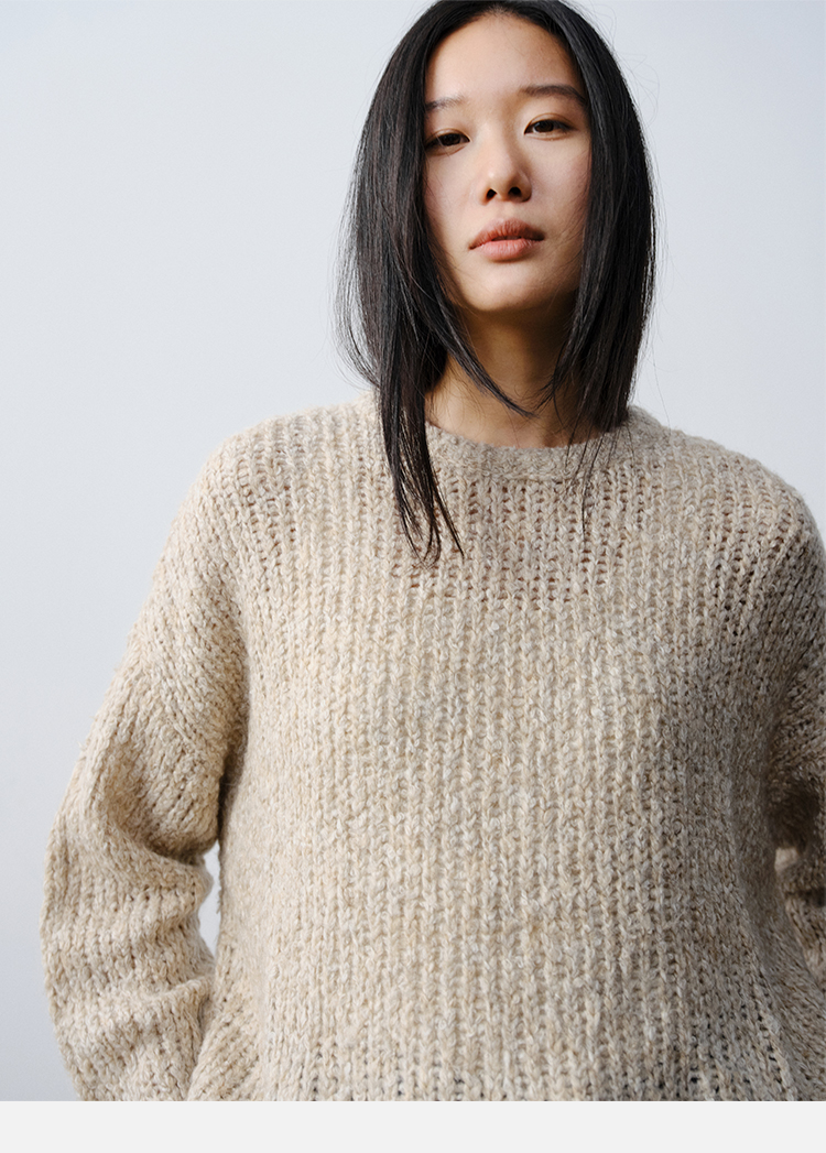 HIDEMI 意大利羊驼毛粗纺粗针松弛感极简宽松大毛衣