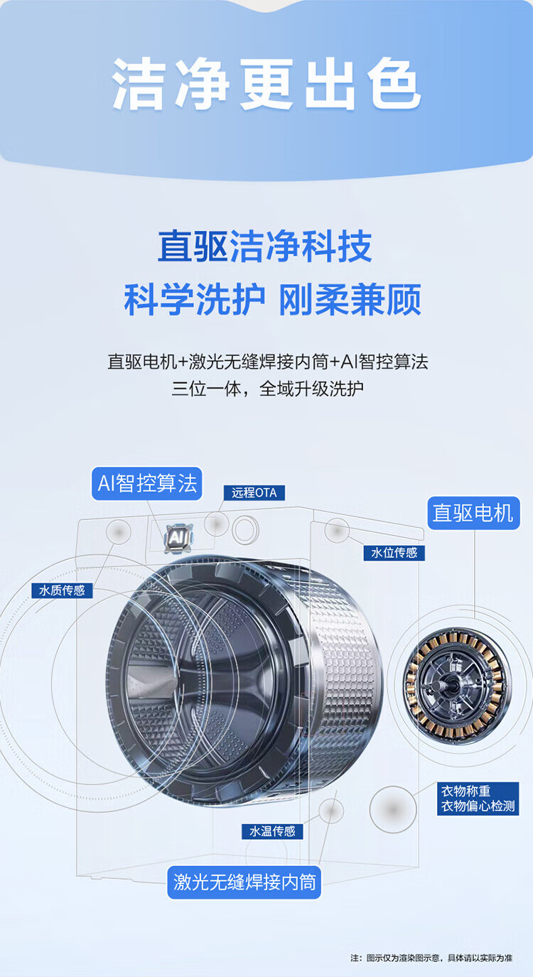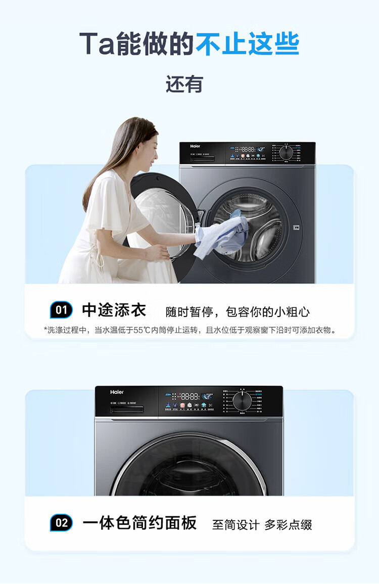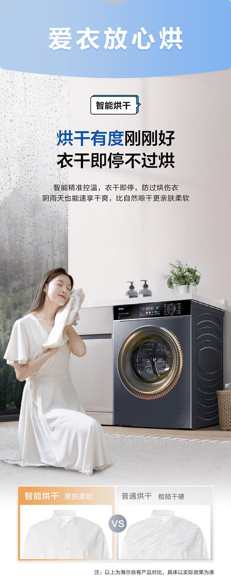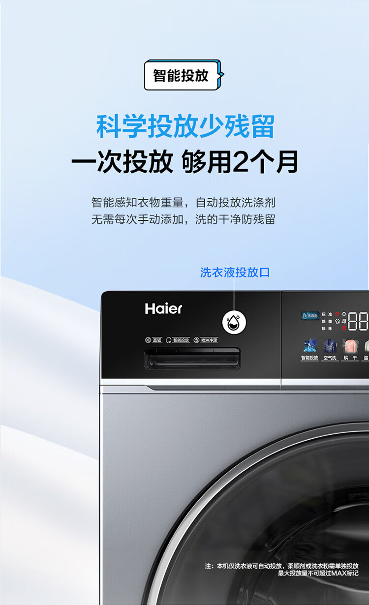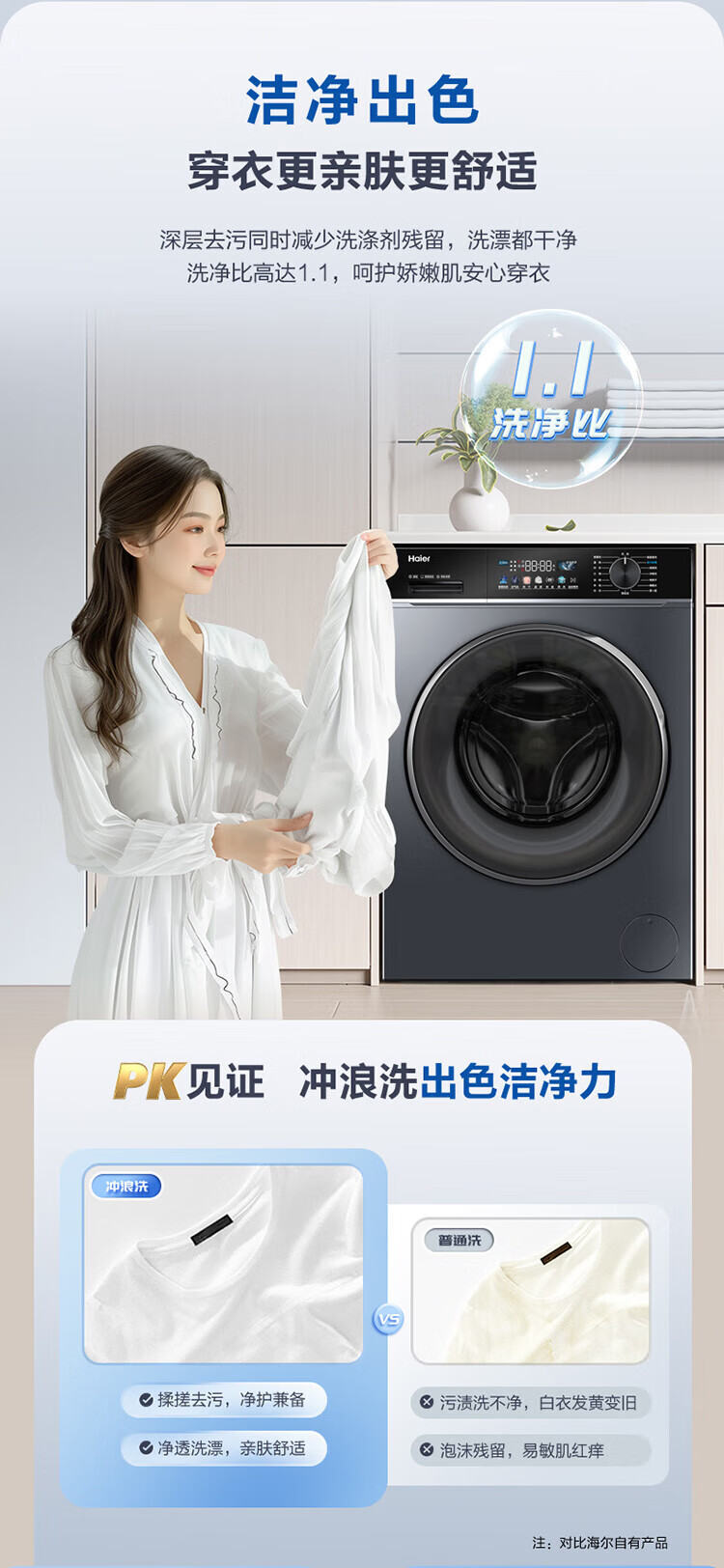 海尔(Haier)滚筒洗衣机全自动10公斤大容量洗烘一体机 澎湃冲浪洗仿生手搓 1.1洗净比 一级能效 EG100HPRO87S