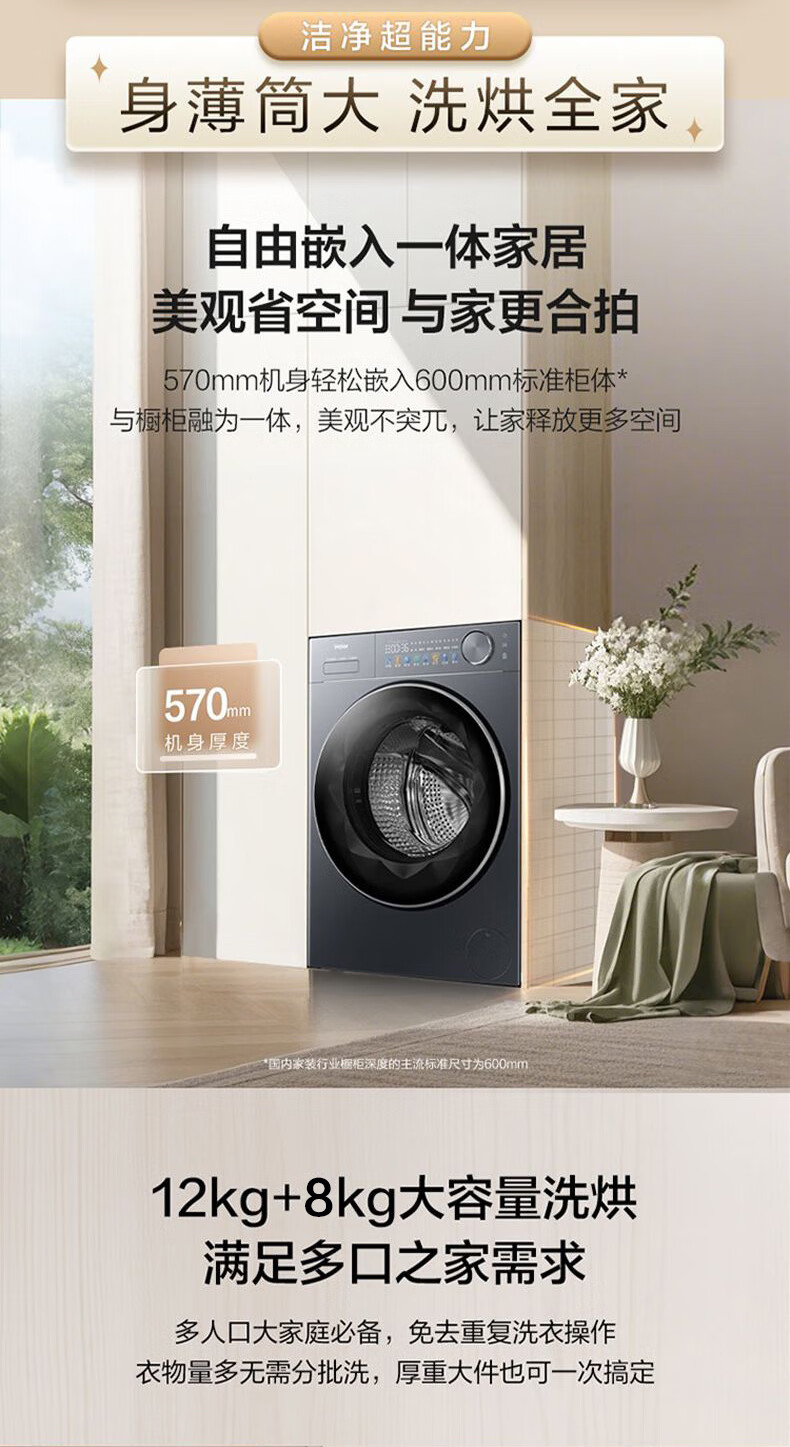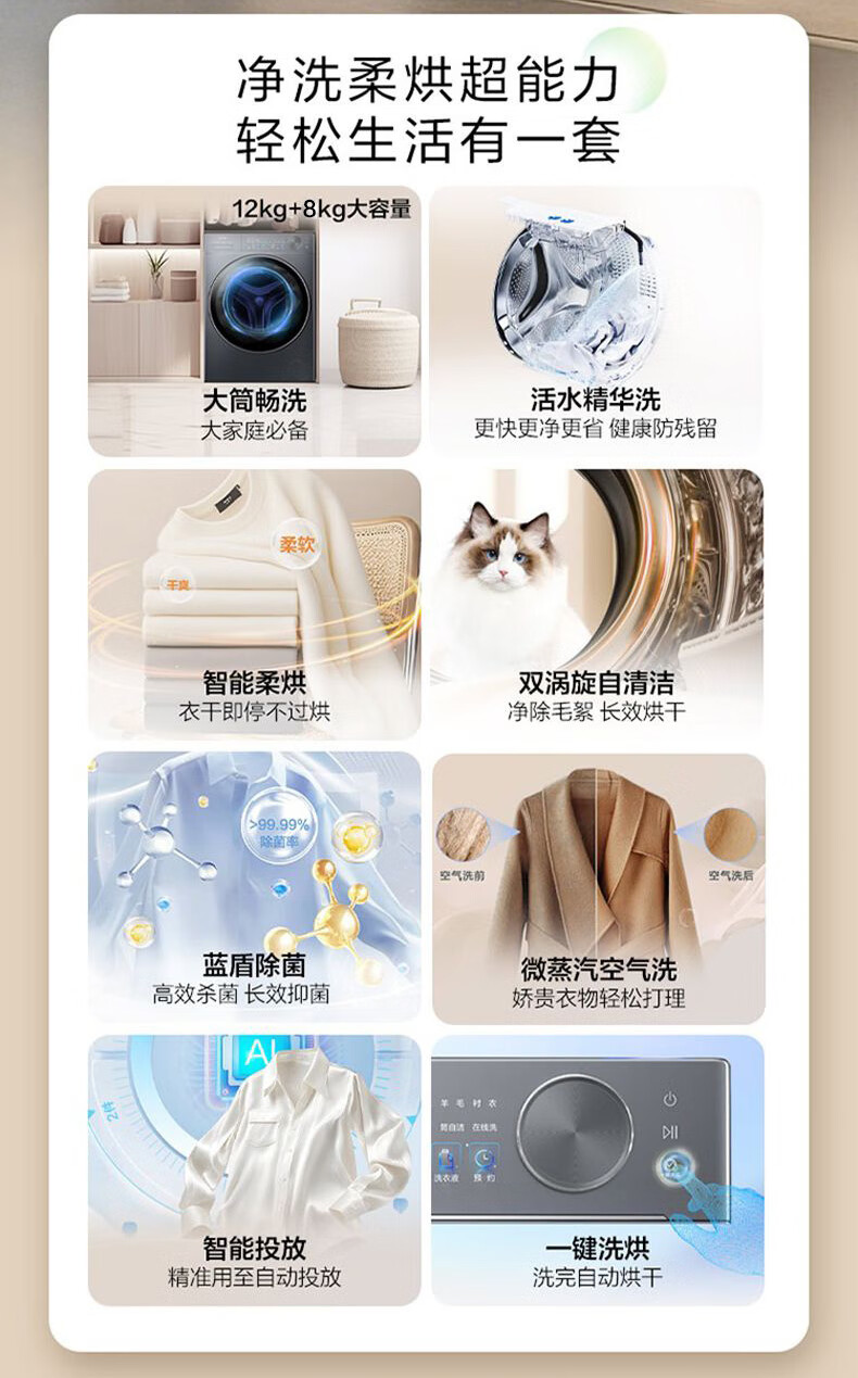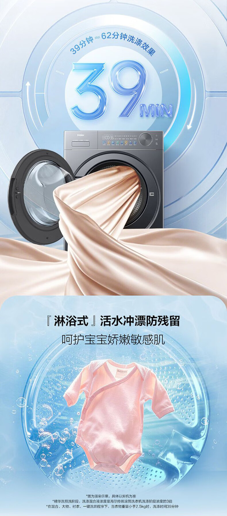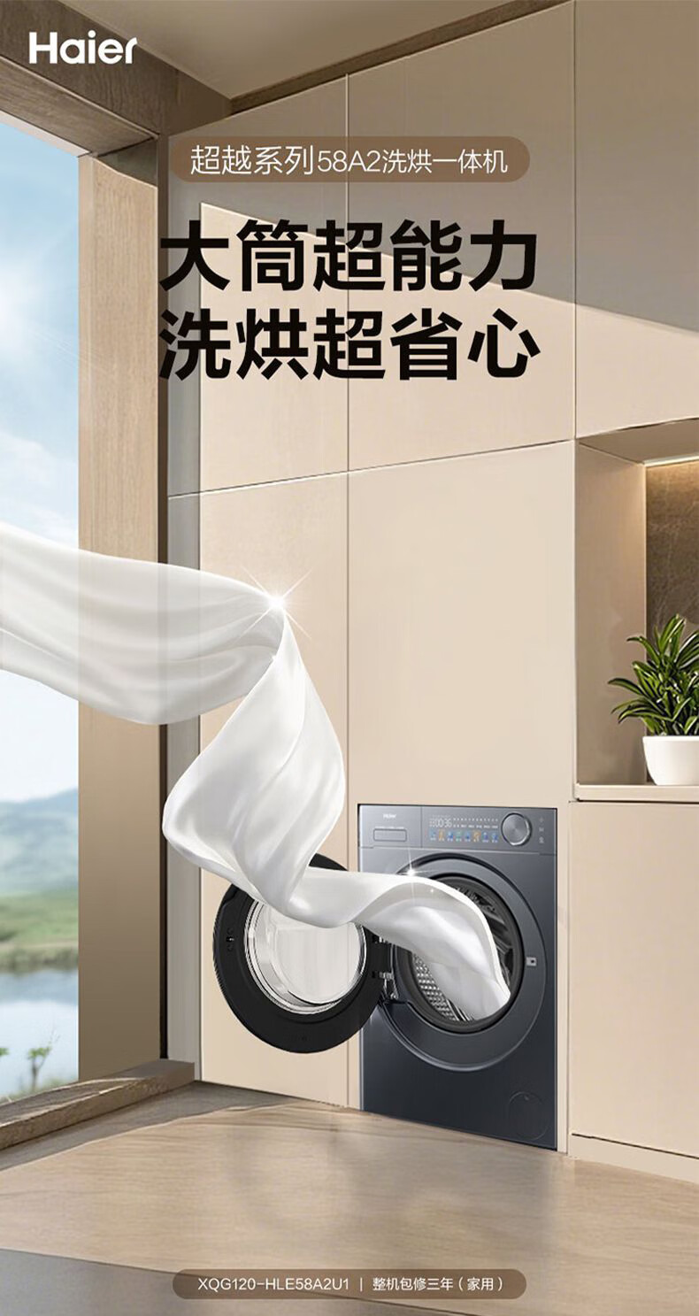 海尔(Haier)【活水精华洗】12KG滚筒洗衣机全自动洗烘一体机家用变频智投盒+蓝盾除菌+带烘干XQG120-HLE58A2U1