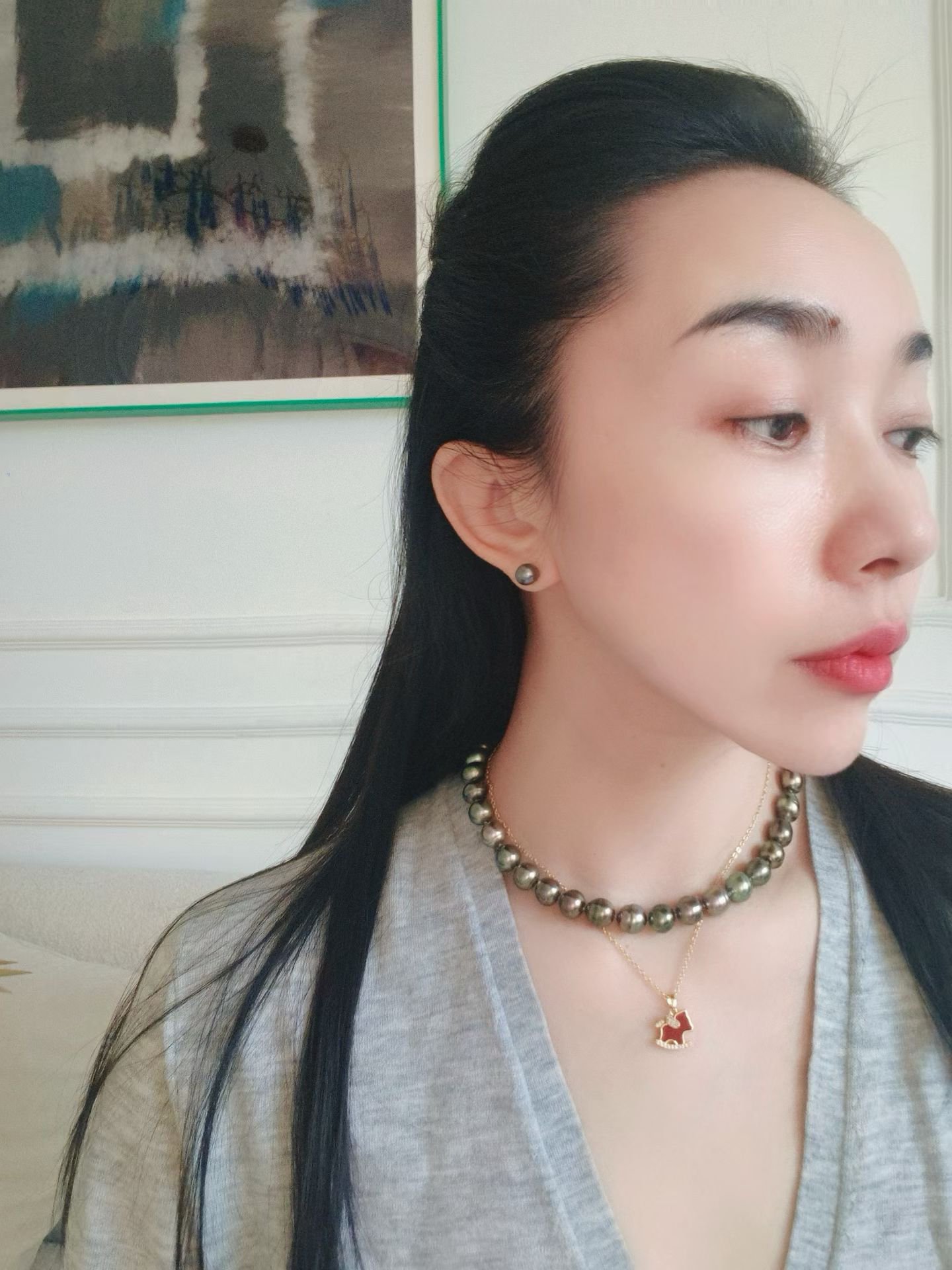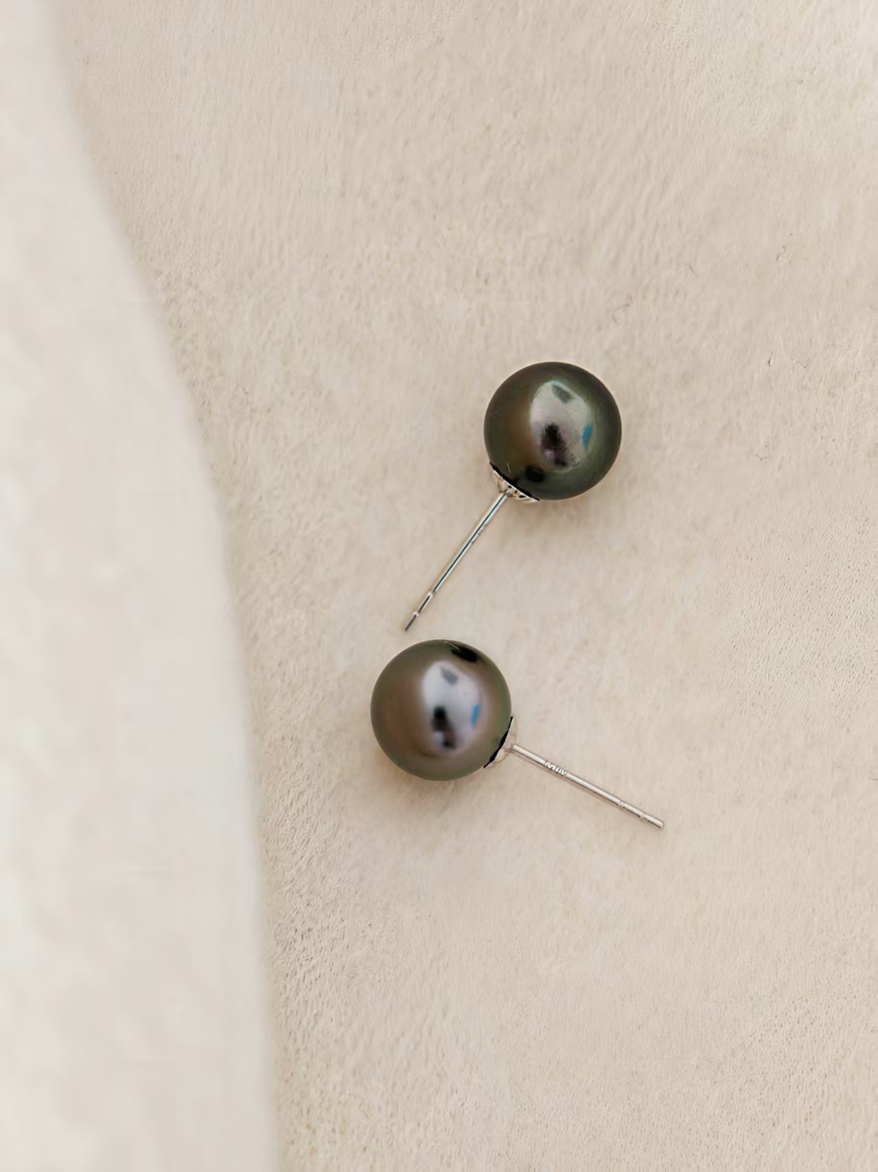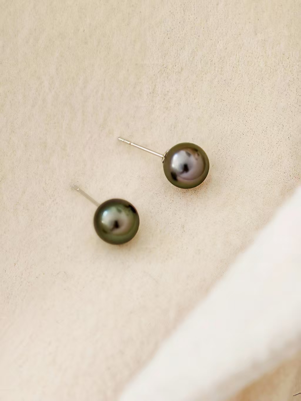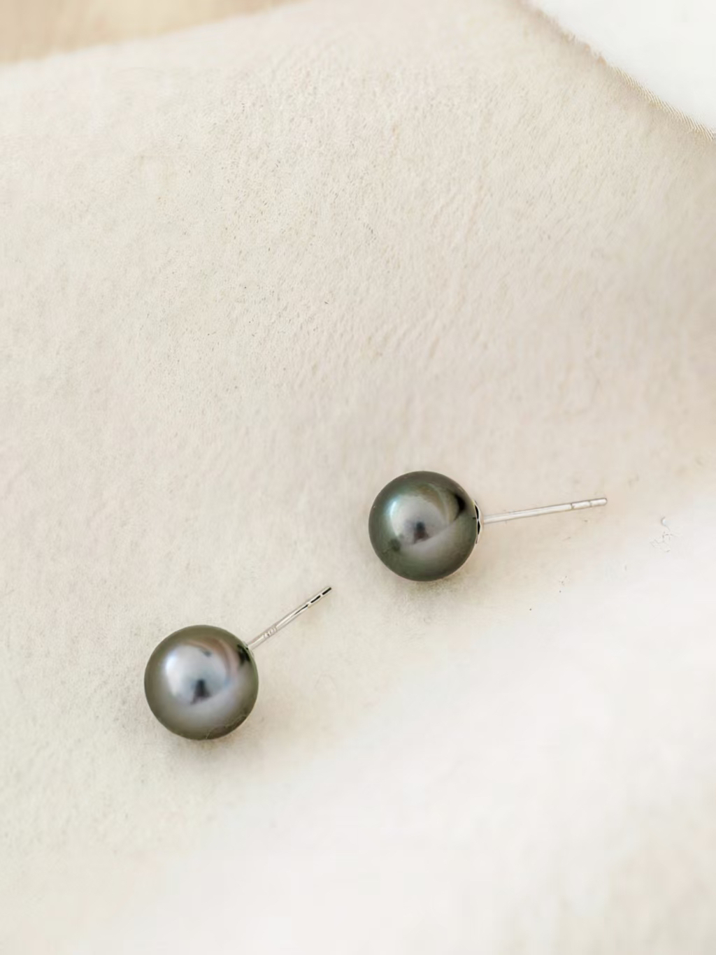 【新年优惠特价】大溪地珍珠耳针· 18k金镶嵌海水珍珠7-8mm
