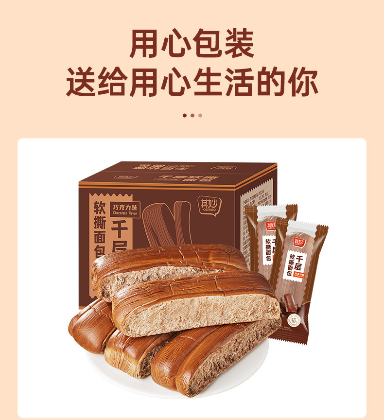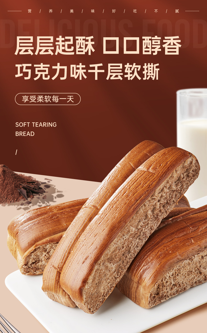 【香醇巧克力味!千层软手撕面包】饱腹小吃巧克力面包整箱早餐营养上班充饥零食小吃蛋糕休闲食品健康
