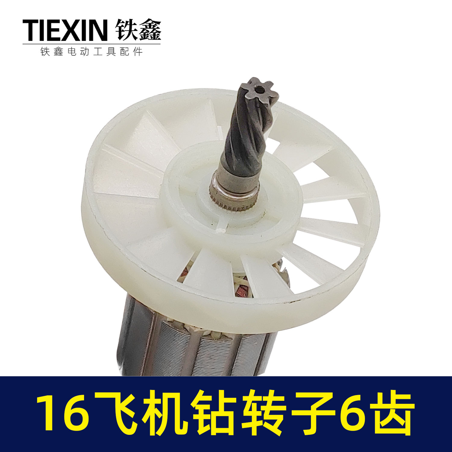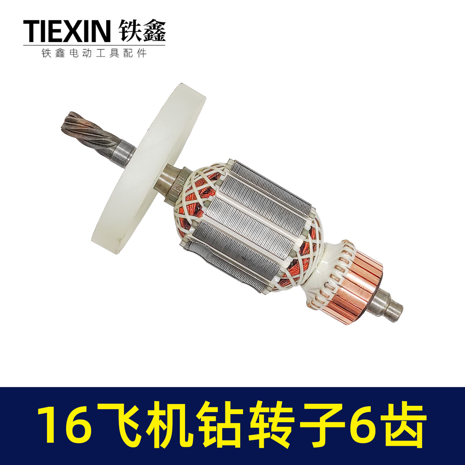 【货号07415】16电钻转子搅拌器转子飞机钻电机6齿35H送碳刷电钻配件