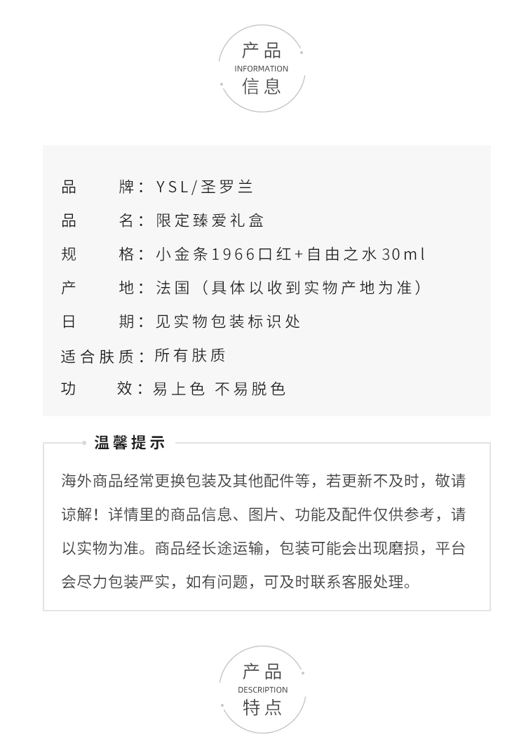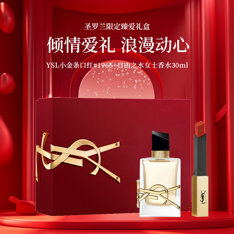 YSL圣罗兰限定礼盒 小金条口红1966/314/214+自由之水女士香水30ml 口红香水组合限定礼物 送香水礼品袋