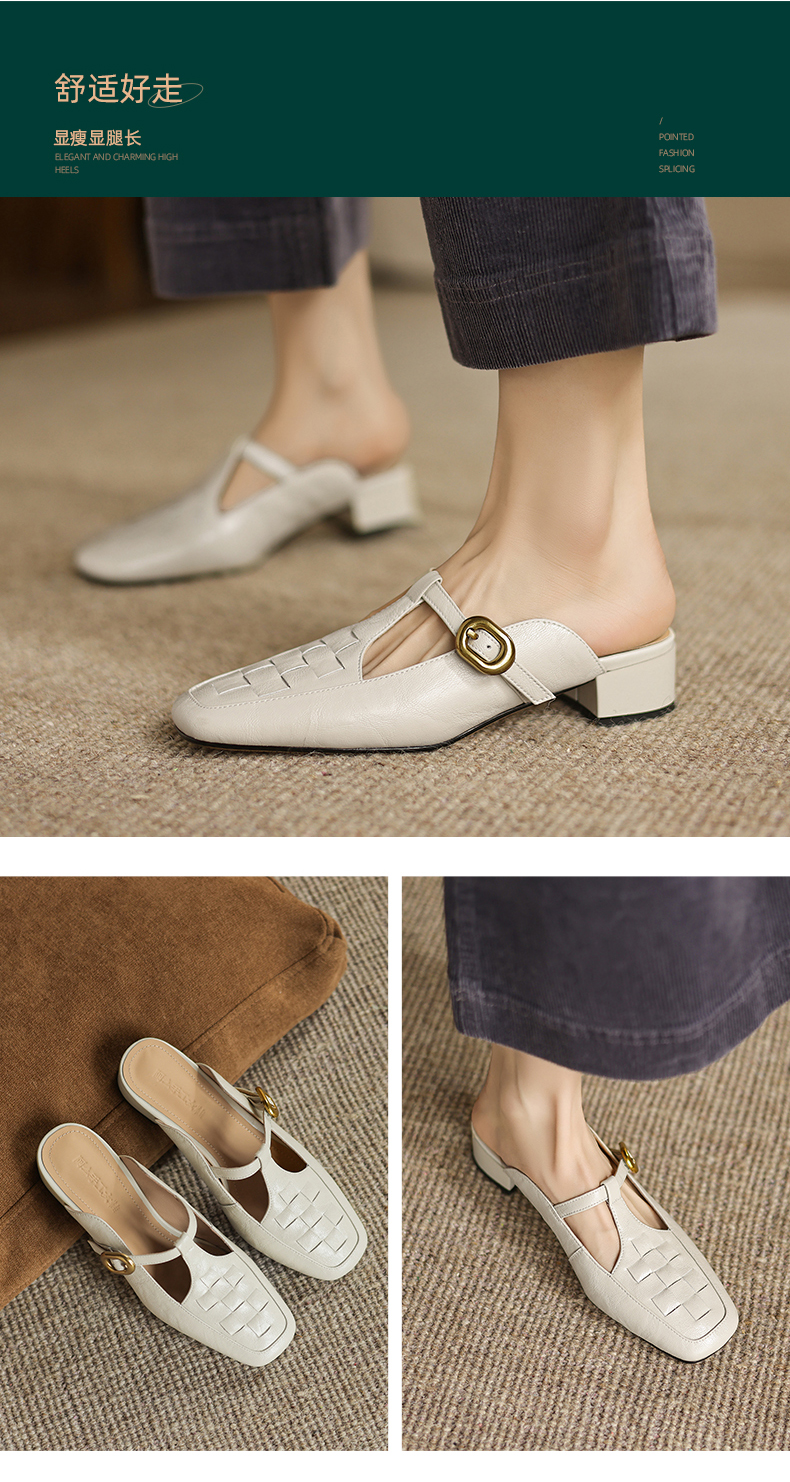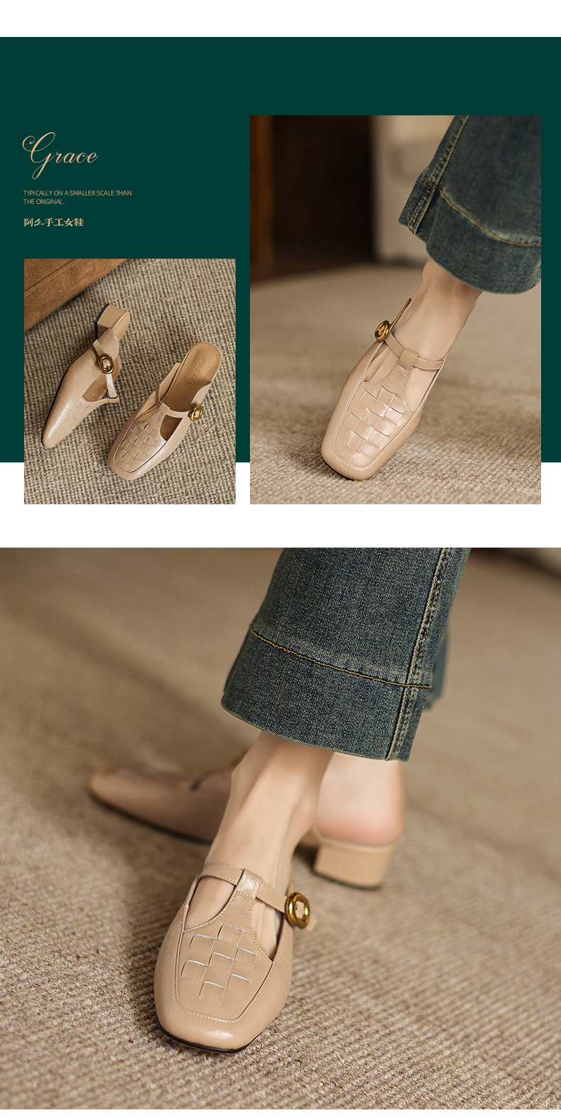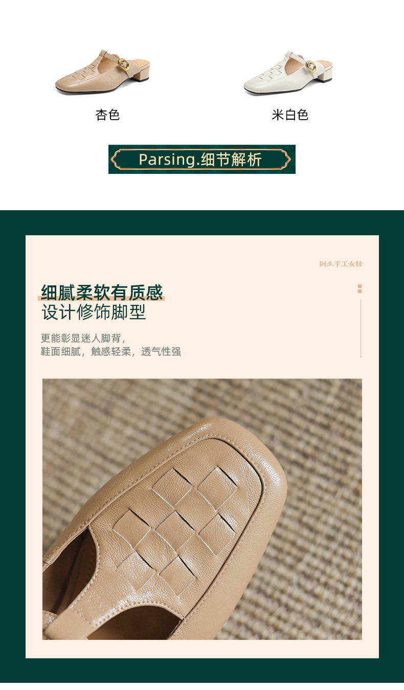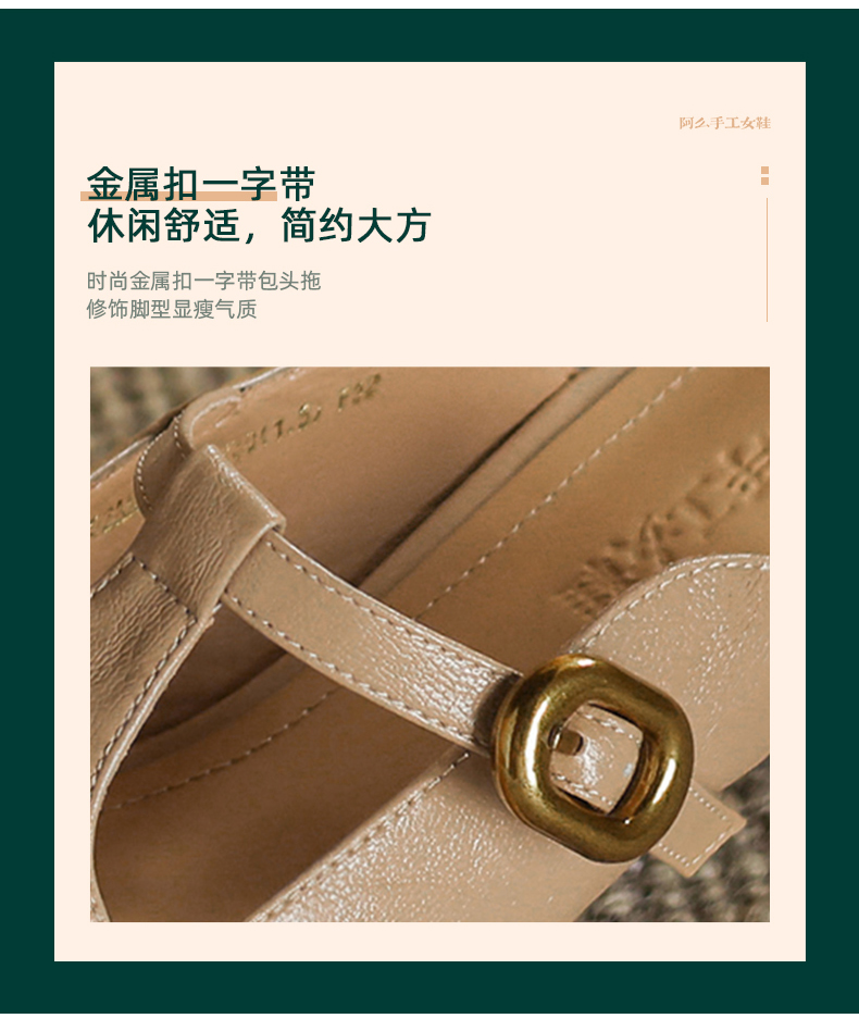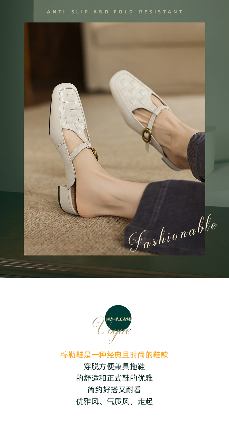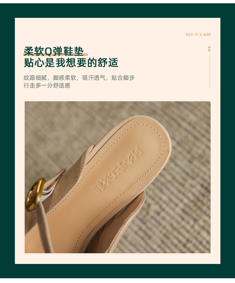 阿么手工女鞋一字带半拖女鞋外穿2025新款百搭小众真皮穆勒鞋3CM