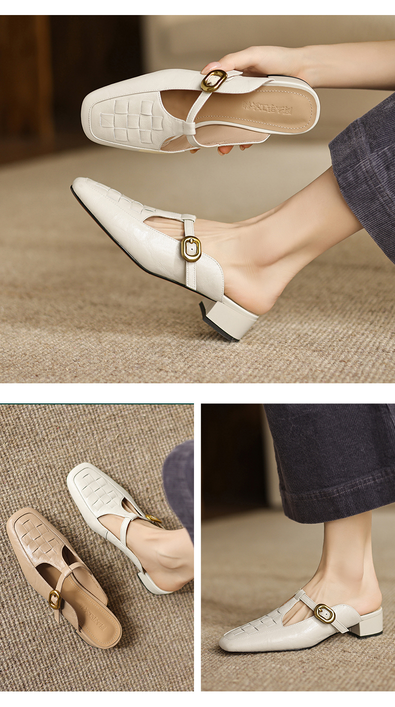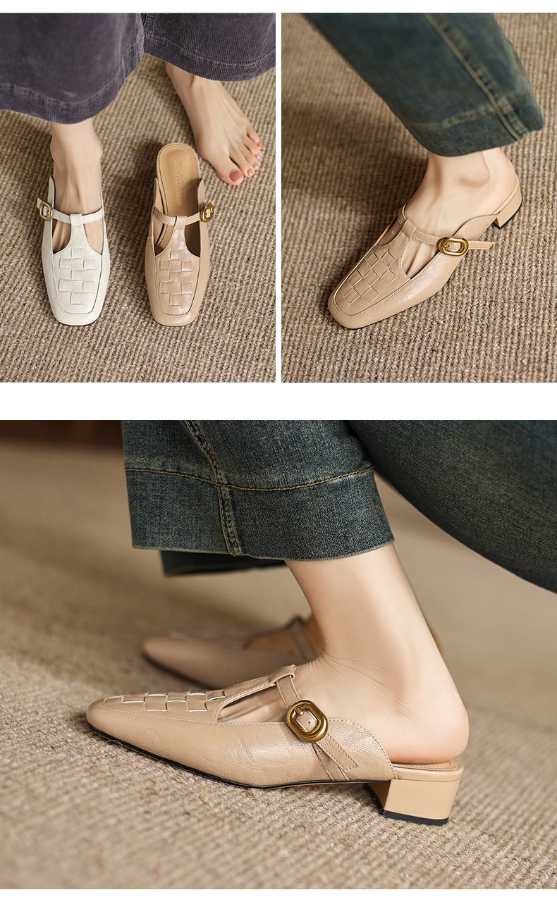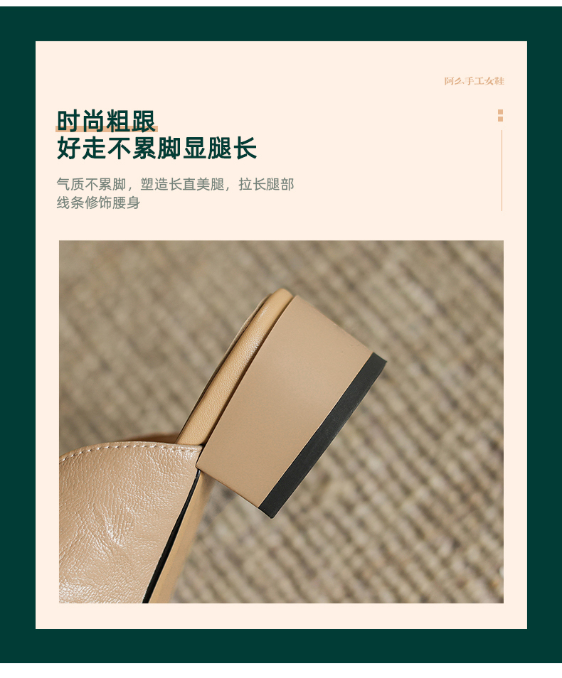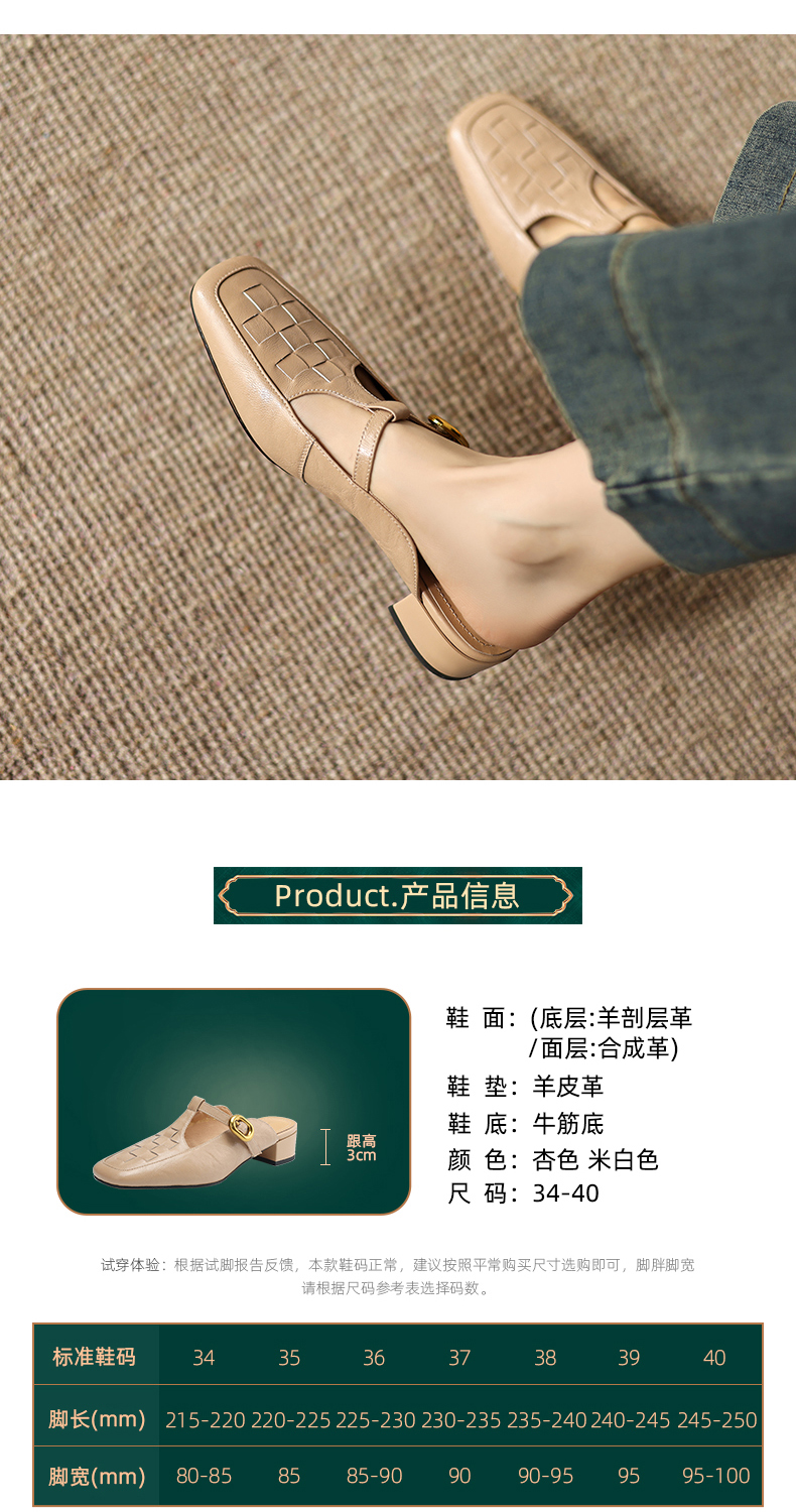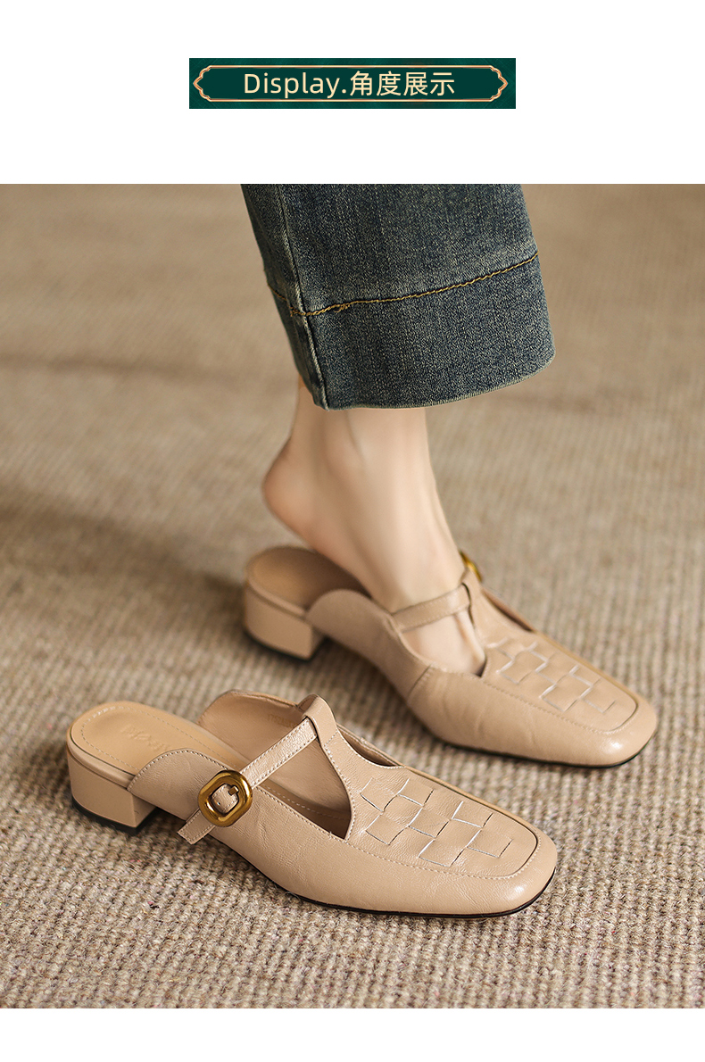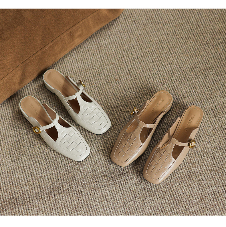 阿么手工女鞋一字带半拖女鞋外穿2025新款百搭小众真皮穆勒鞋3CM