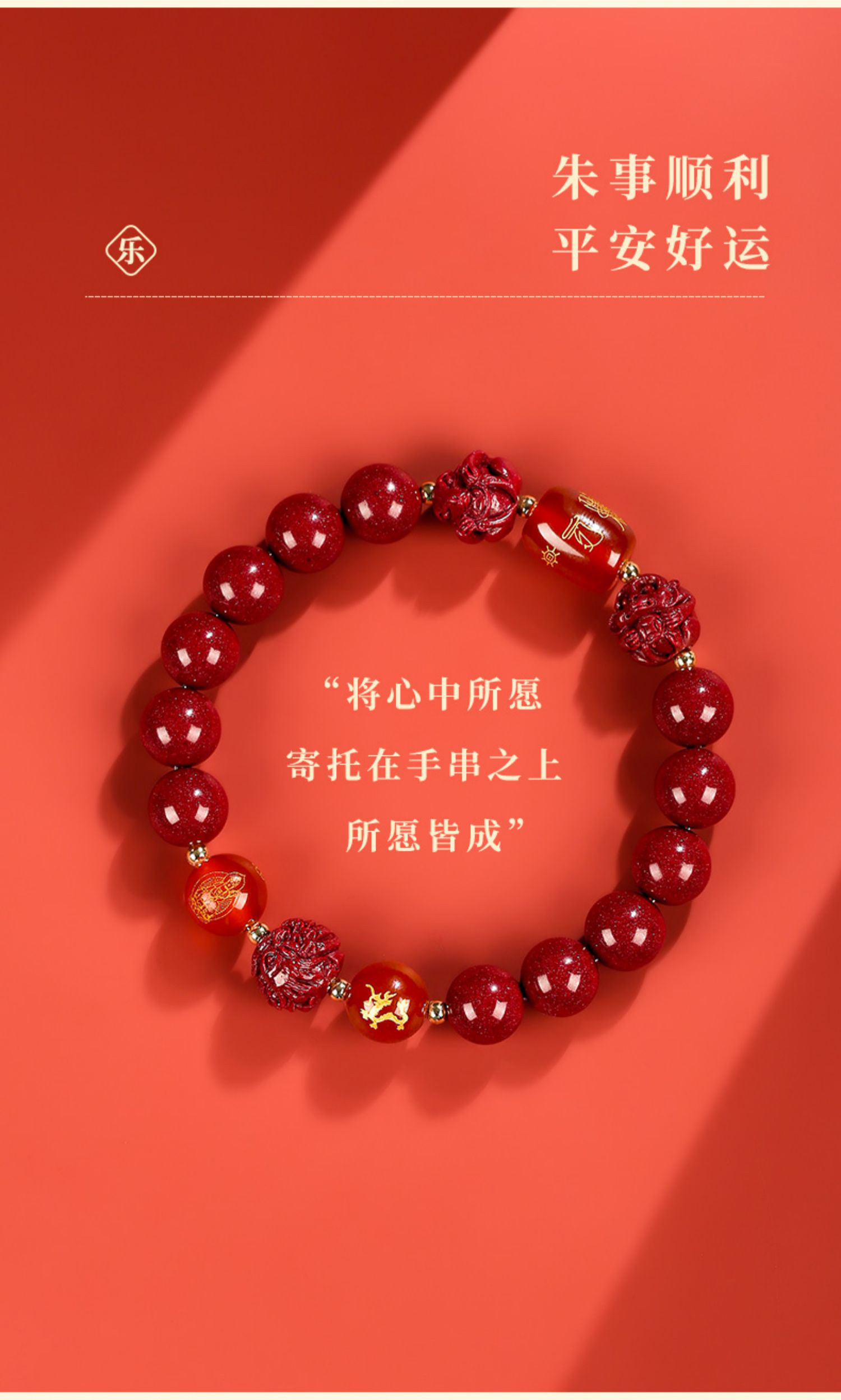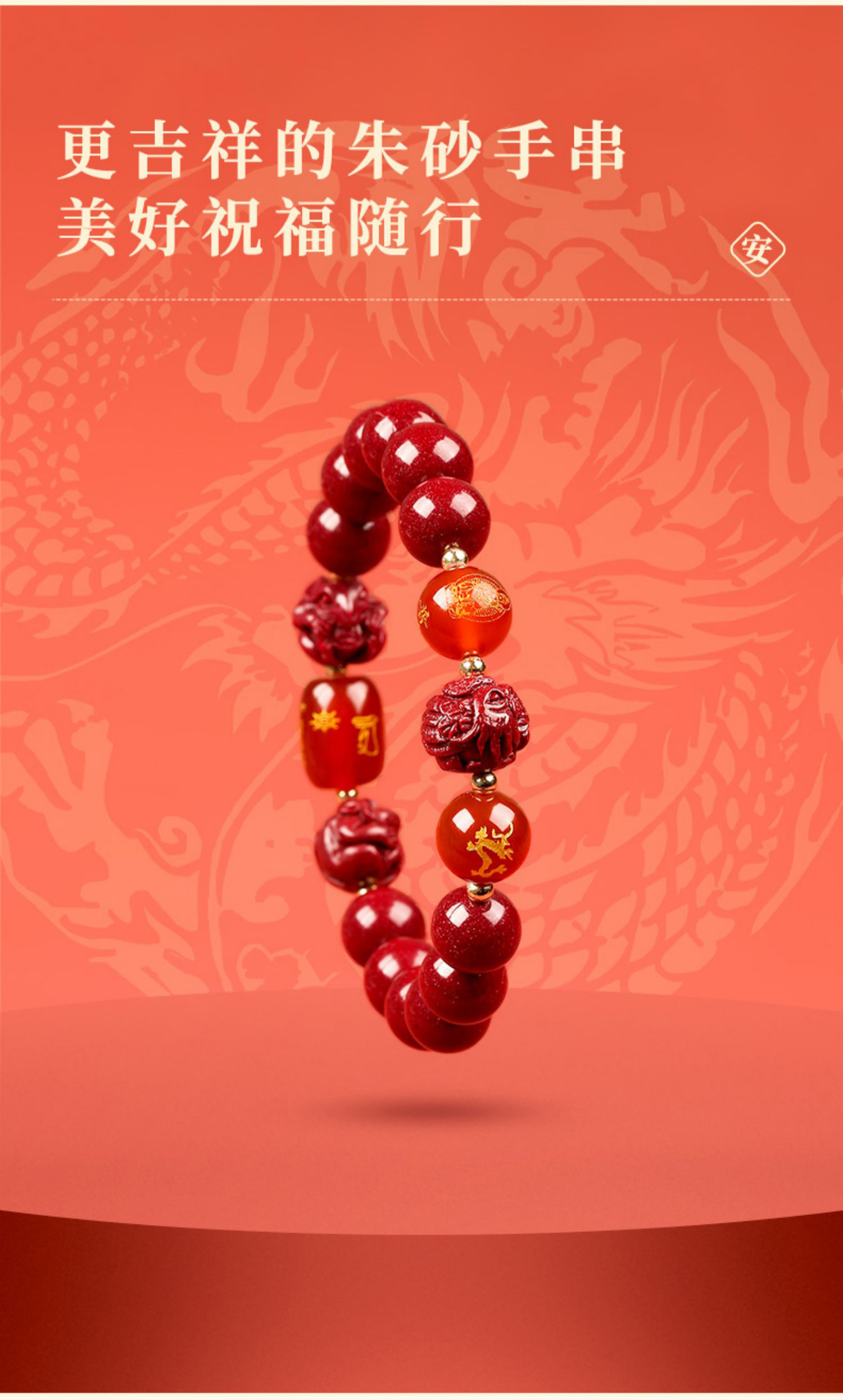 颗颗饱满 【龙年朱砂手串】手感细腻光滑 2026马年 寓意美好 时尚百搭