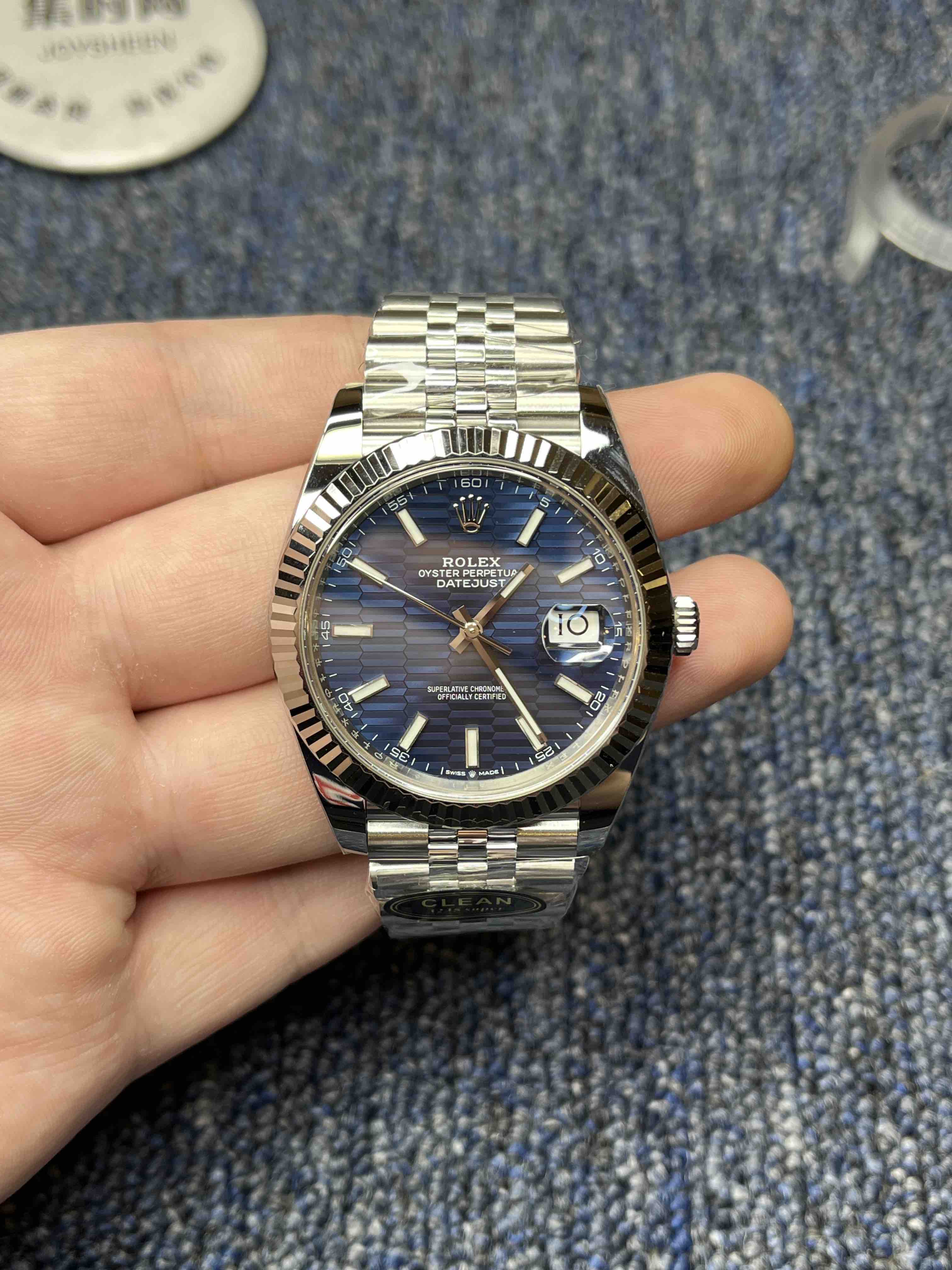 C厂劳力士日志型41mm“格棱纹蓝”牙圈 绿面 3235机 五珠链 904L钢 男士腕表