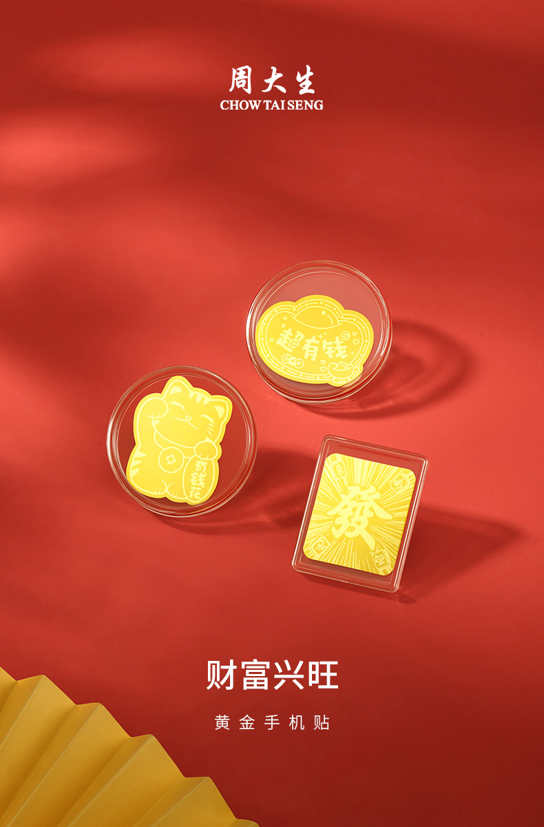周大生公主请发财黄金工艺品泼天富贵手机金贴饰品摆件送闺蜜送朋友送长辈送妈妈生日礼物送男友推荐纪念日躺赢送学生高考祝福