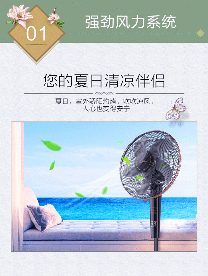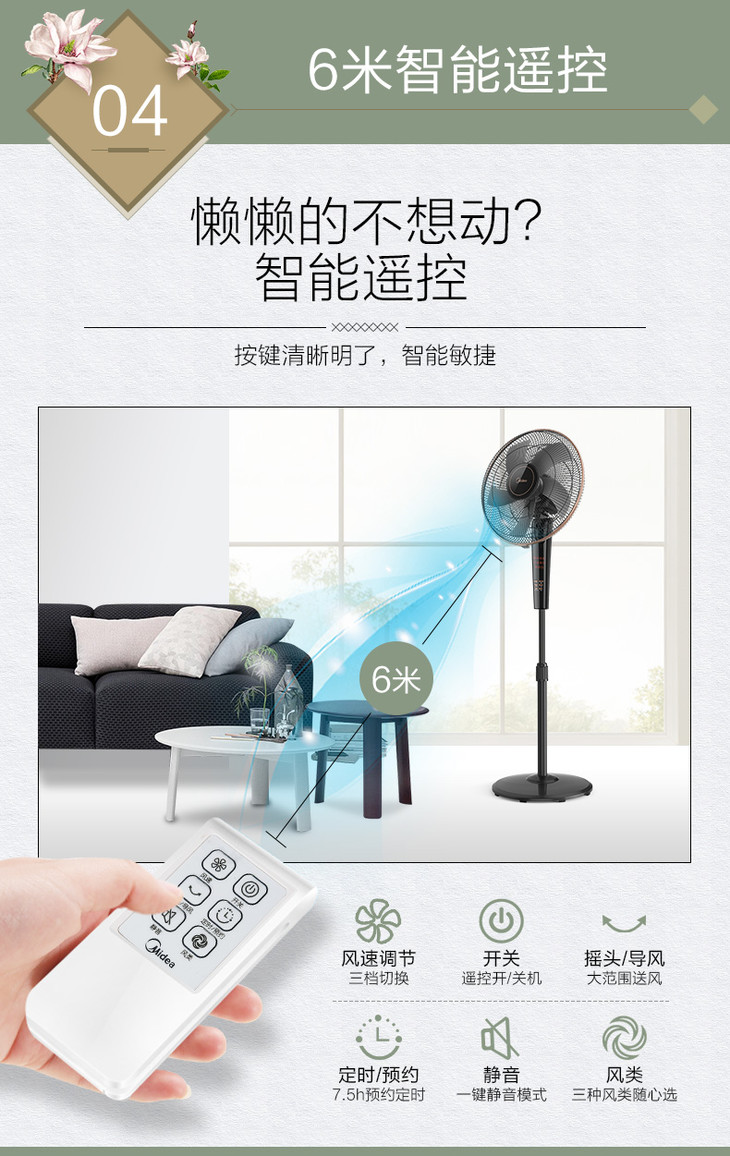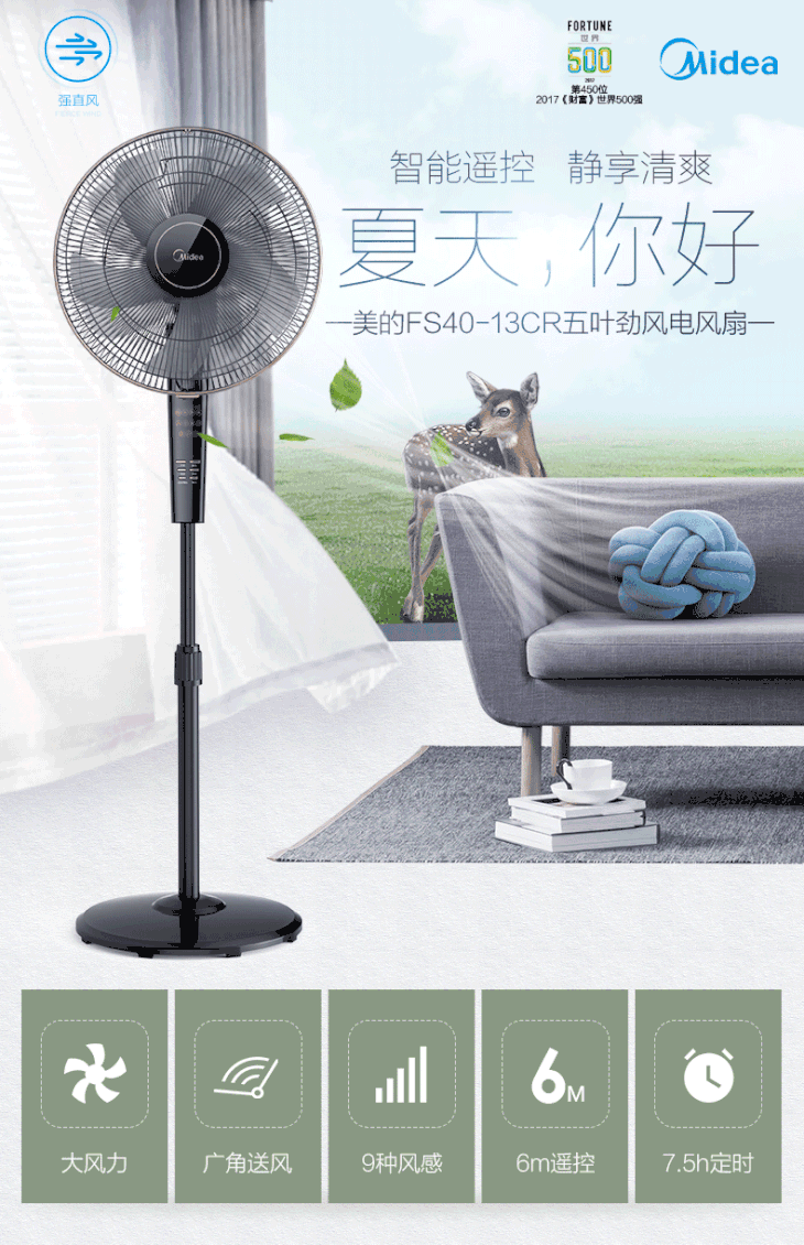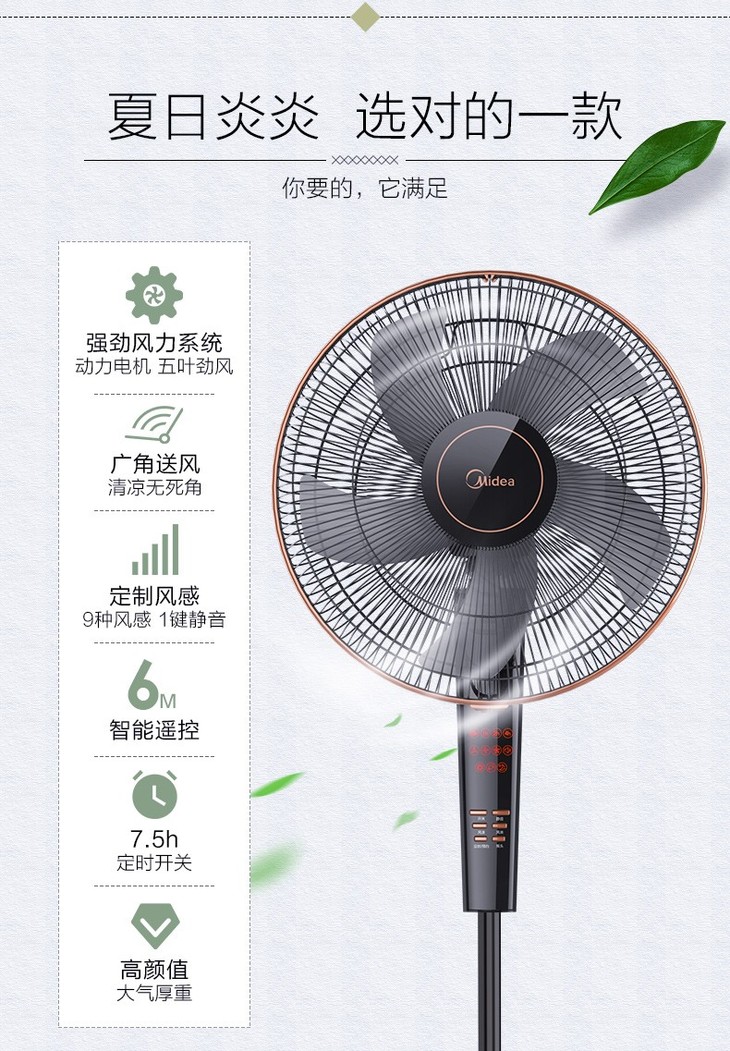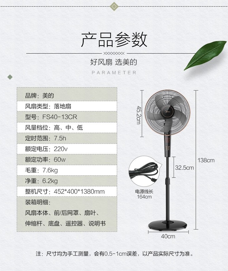 美的(Midea) FS40-13CR落地扇电风扇转页静音立式遥控宿舍便携