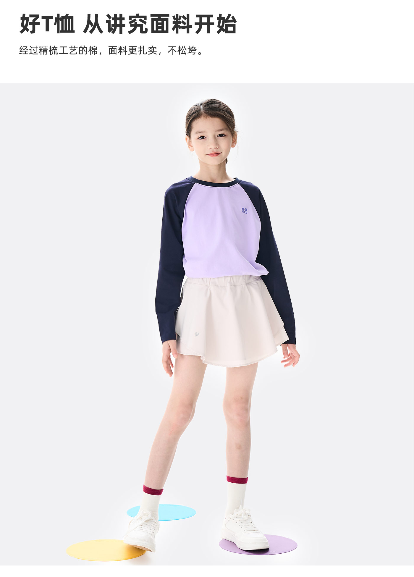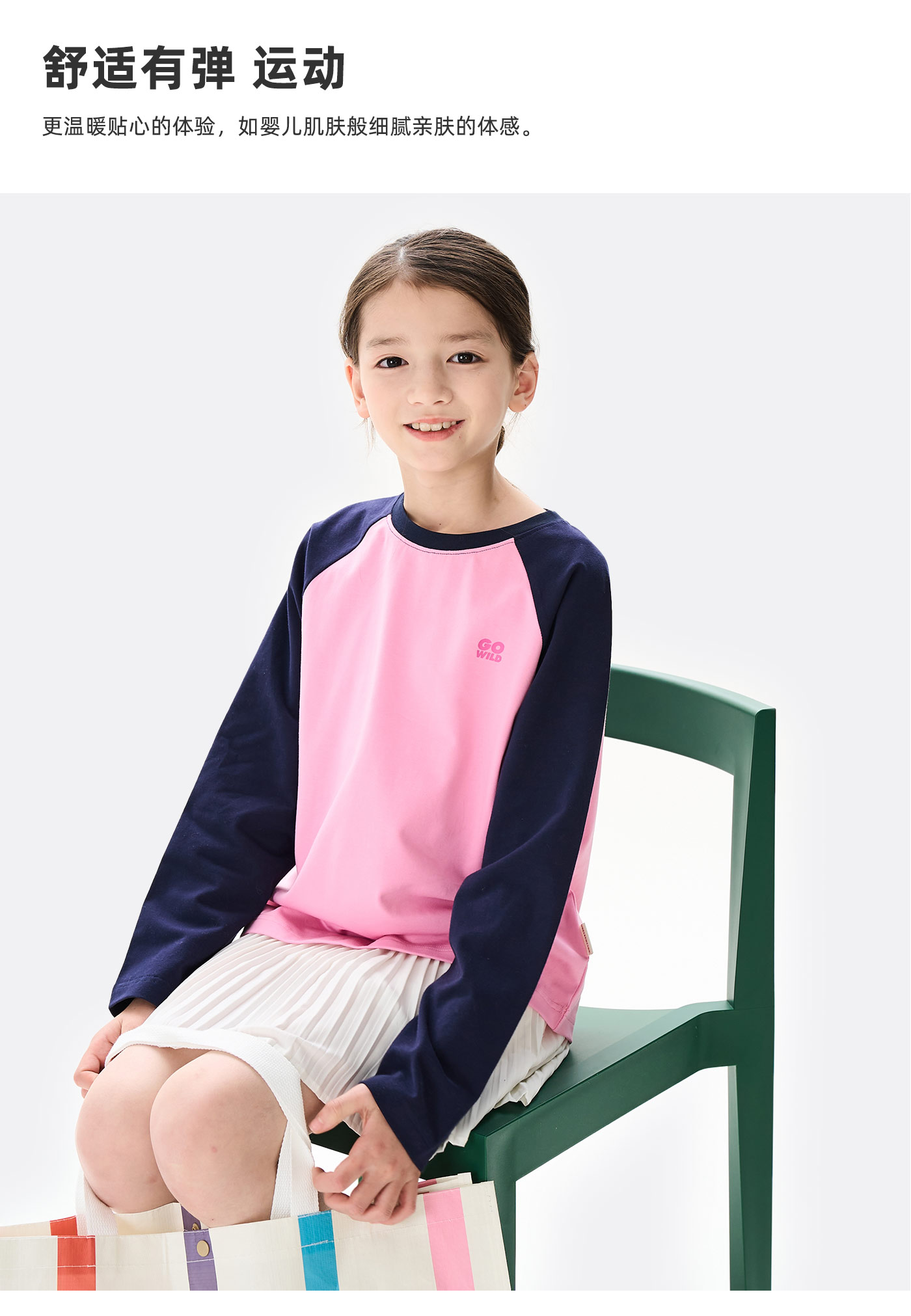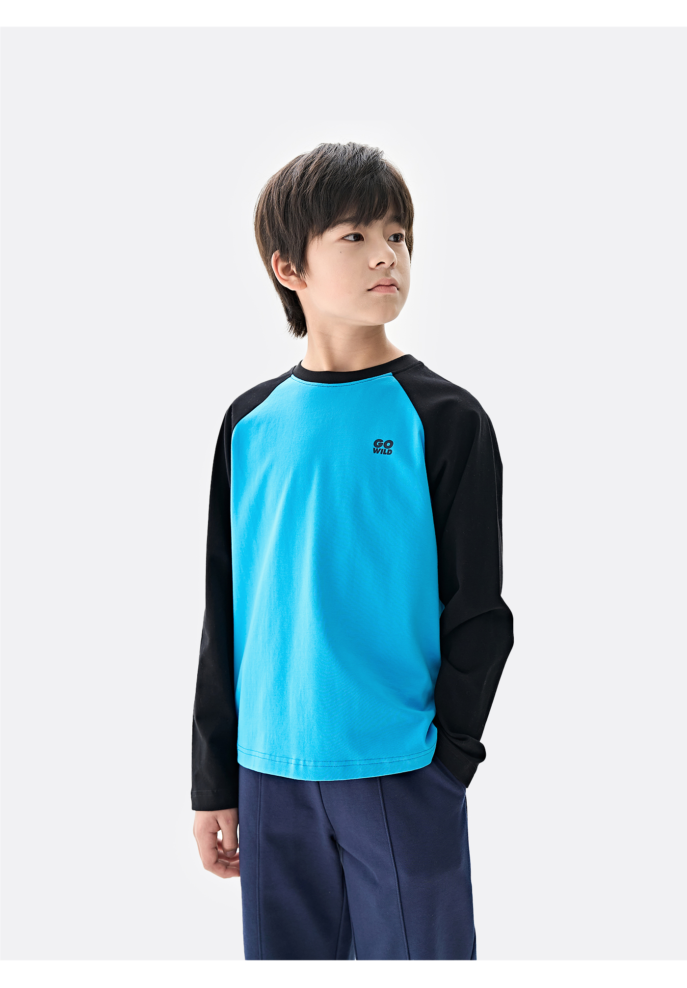 棉叔叔男女童大童长袖T恤撞色插肩袖印花打底衫356901008 | 撞色插肩袖设计、运动风印花增添活力、宽松版型、舒适百搭
