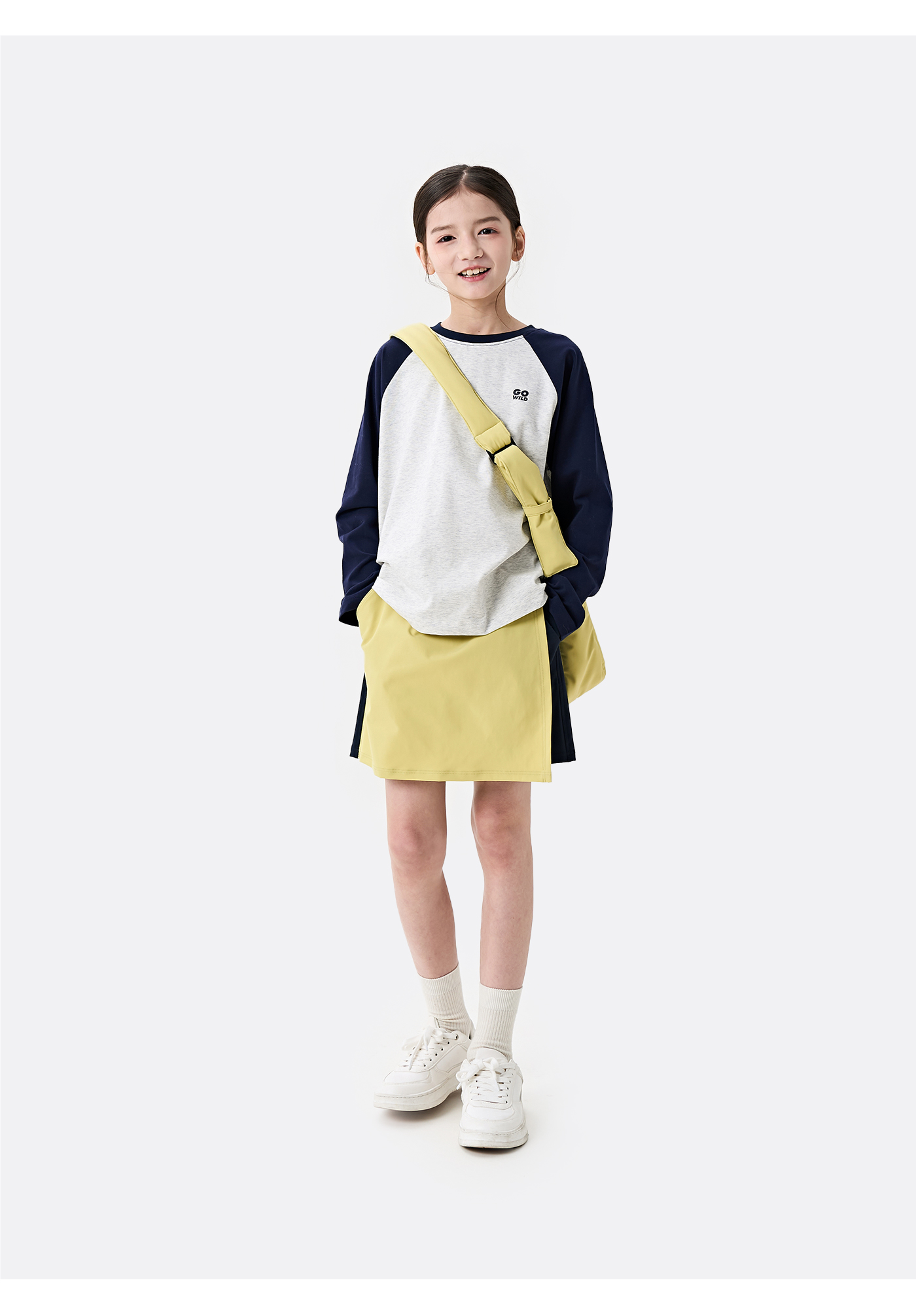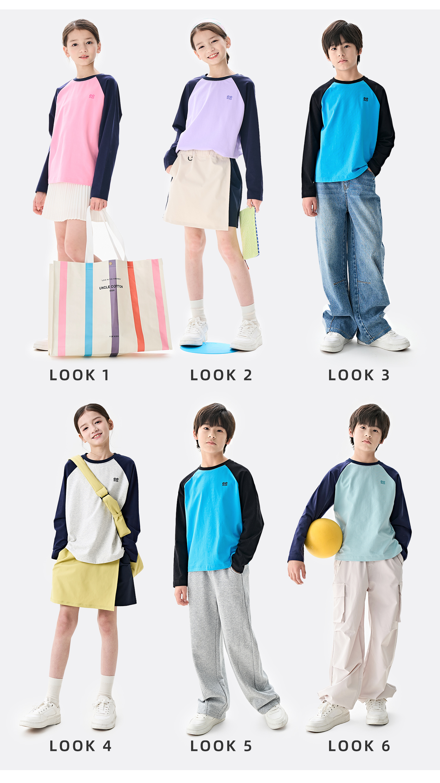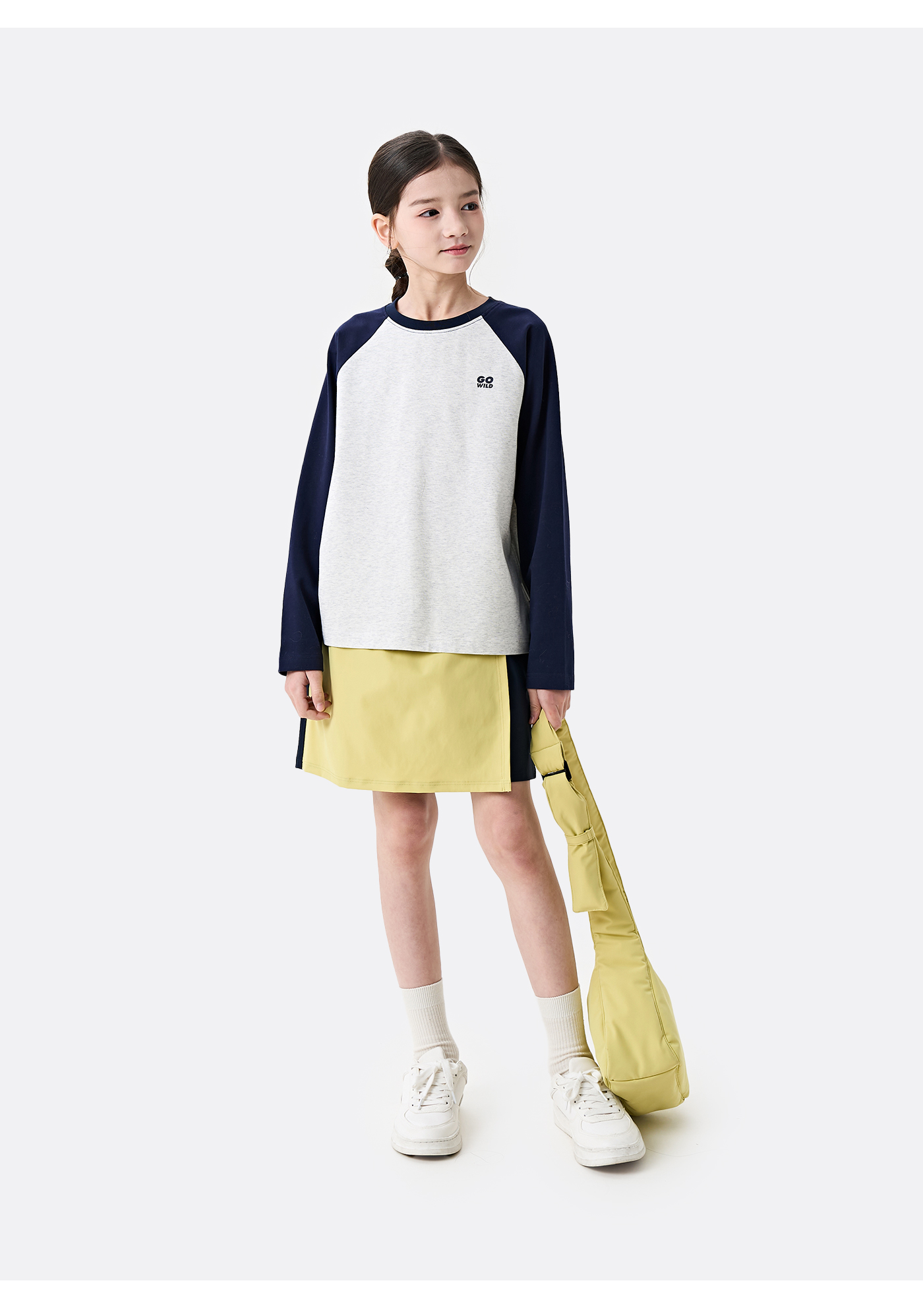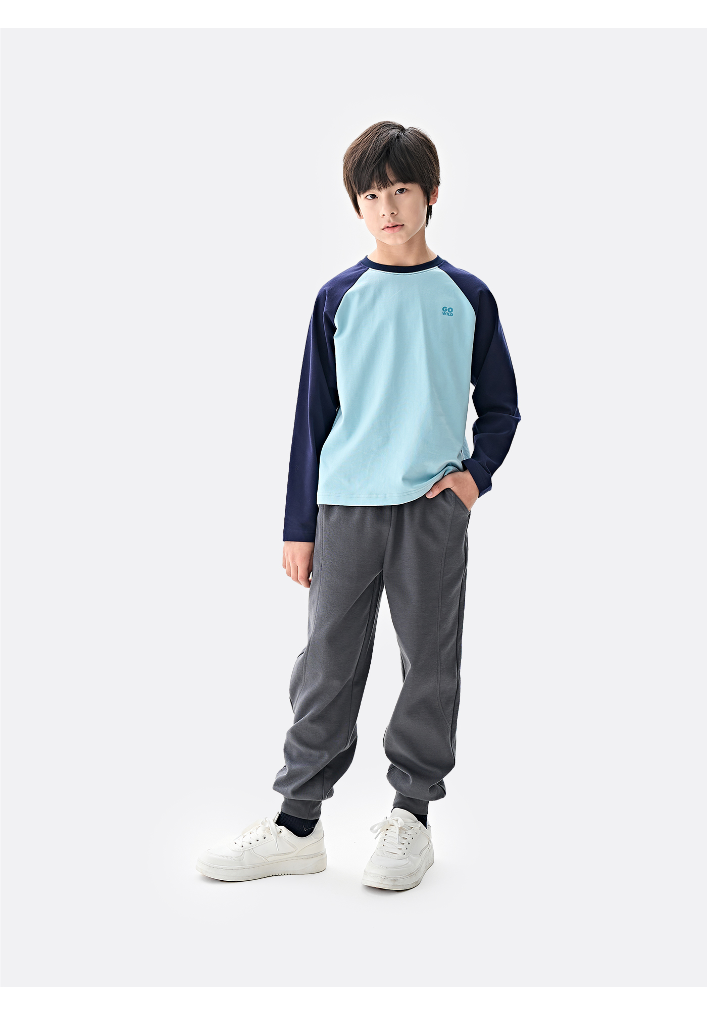 棉叔叔男女童大童长袖T恤撞色插肩袖印花打底衫356901008 | 撞色插肩袖设计、运动风印花增添活力、宽松版型、舒适百搭