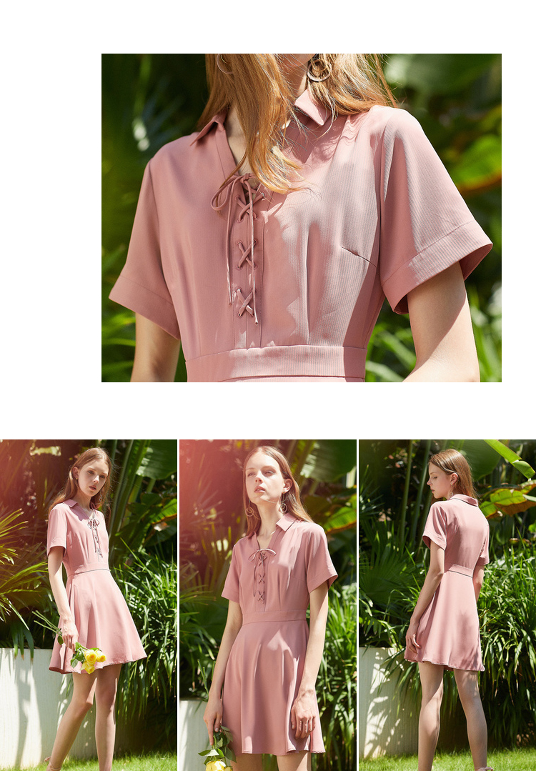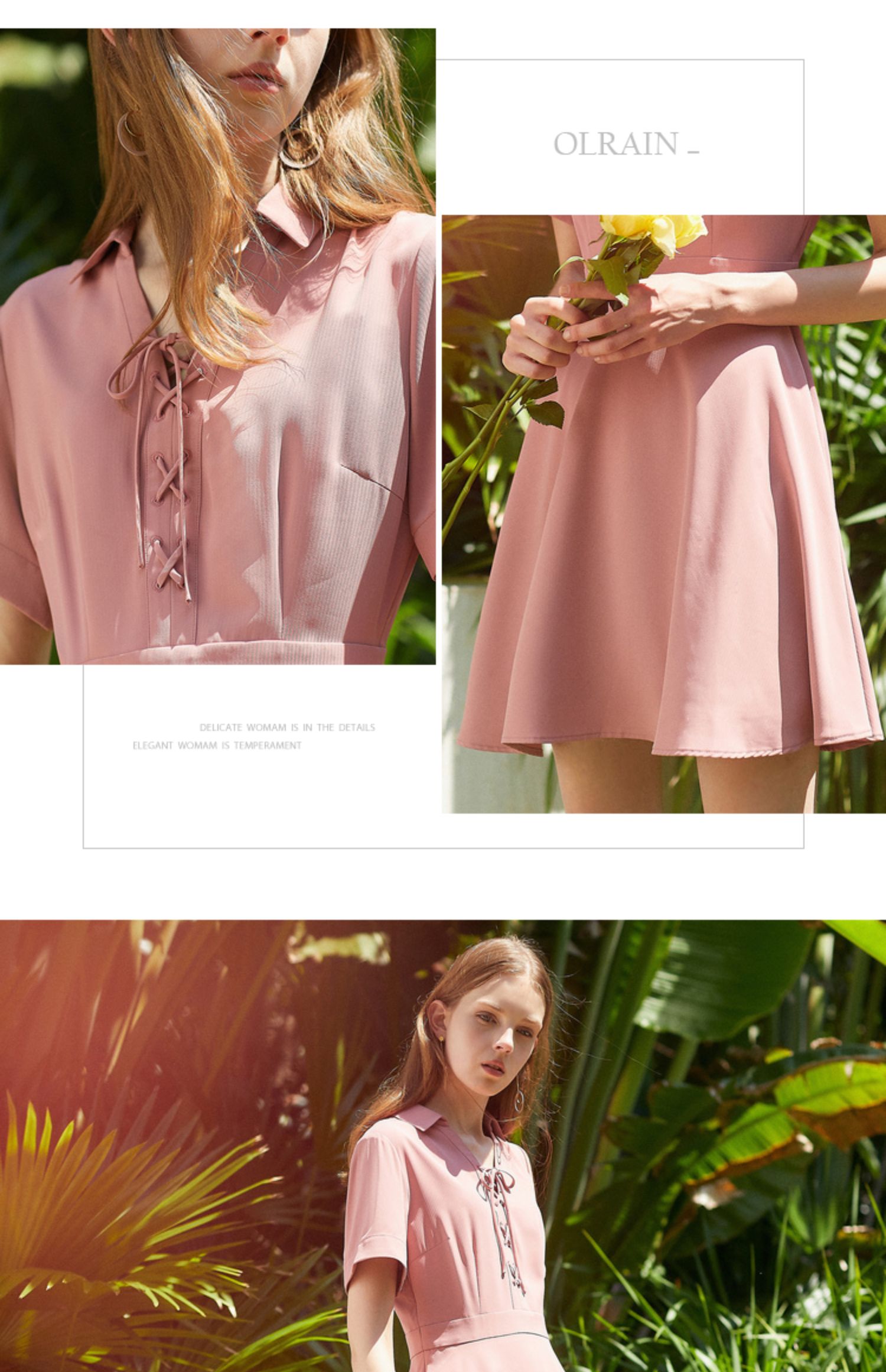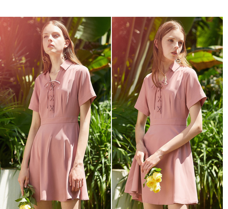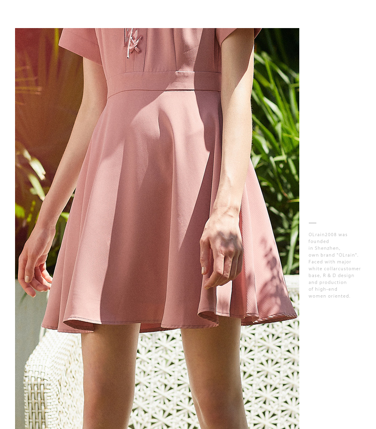 欧芮儿欧芮儿 2019夏装收腰显瘦绑带V领短袖a字连衣裙女中长款