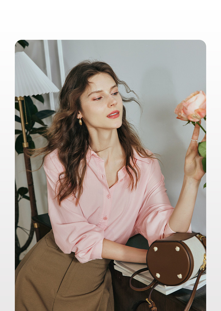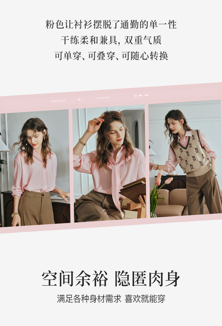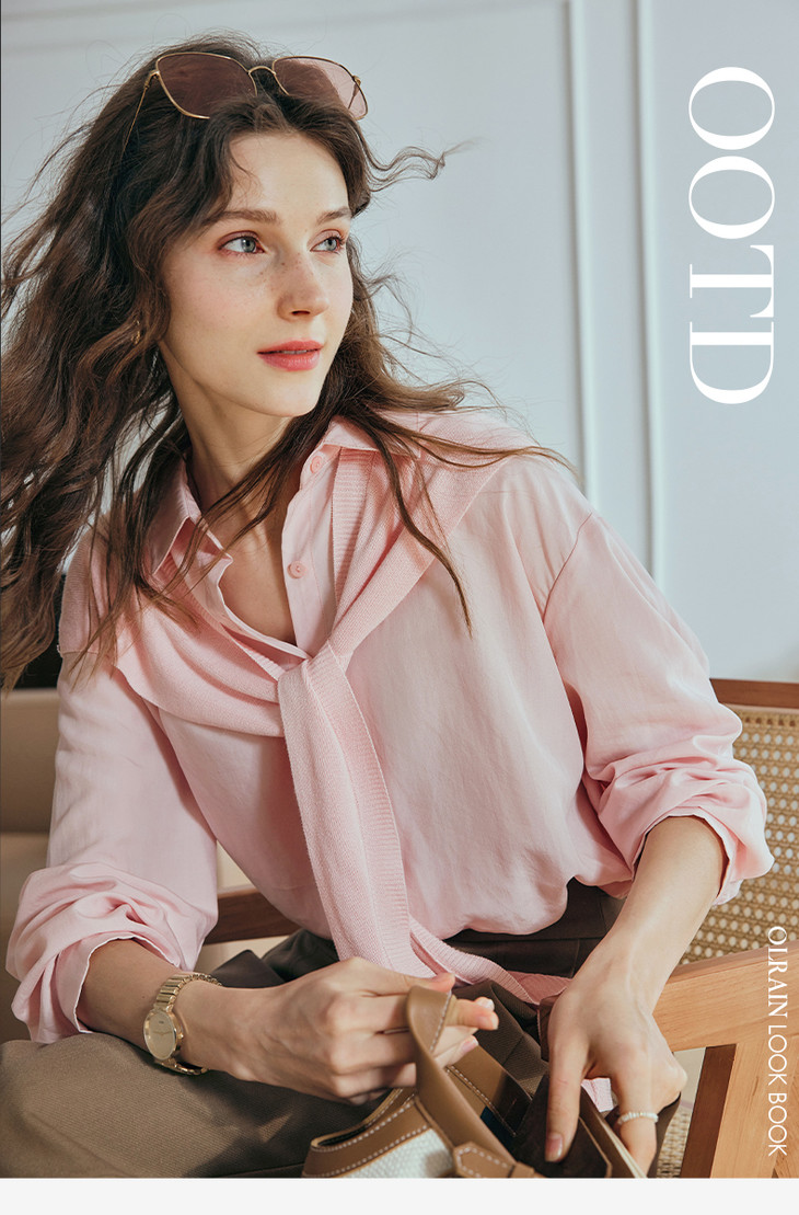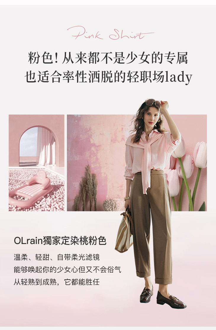 OLrain欧芮儿法式粉色衬衫女夏季2023新款宽松衬衣